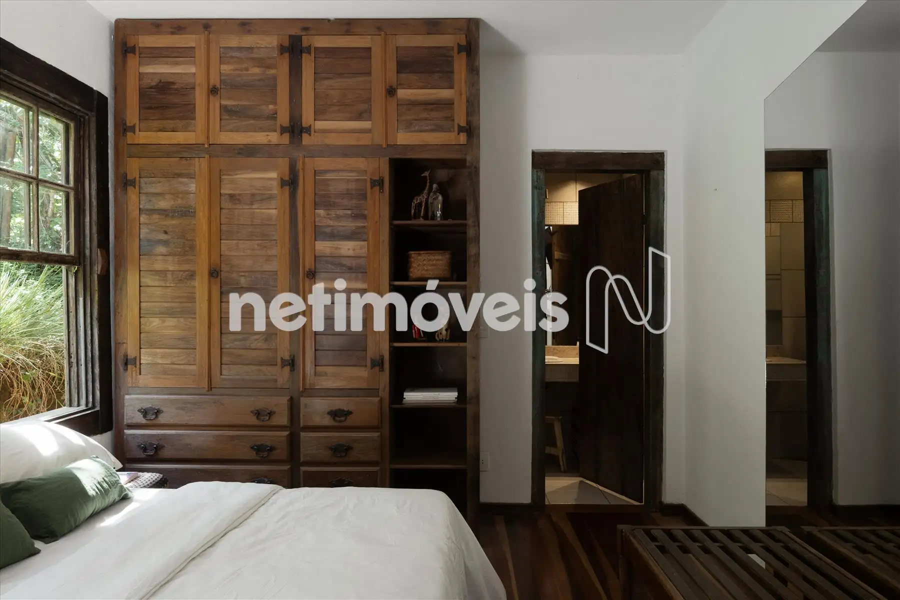 A experiência de bem-estar começa pela suíte master, um espaço único que impressiona: amplo closet, banheira de hidromassagem e uma varanda com vista definitiva, garantindo privacidade e momentos de contemplação inesquecíveis.