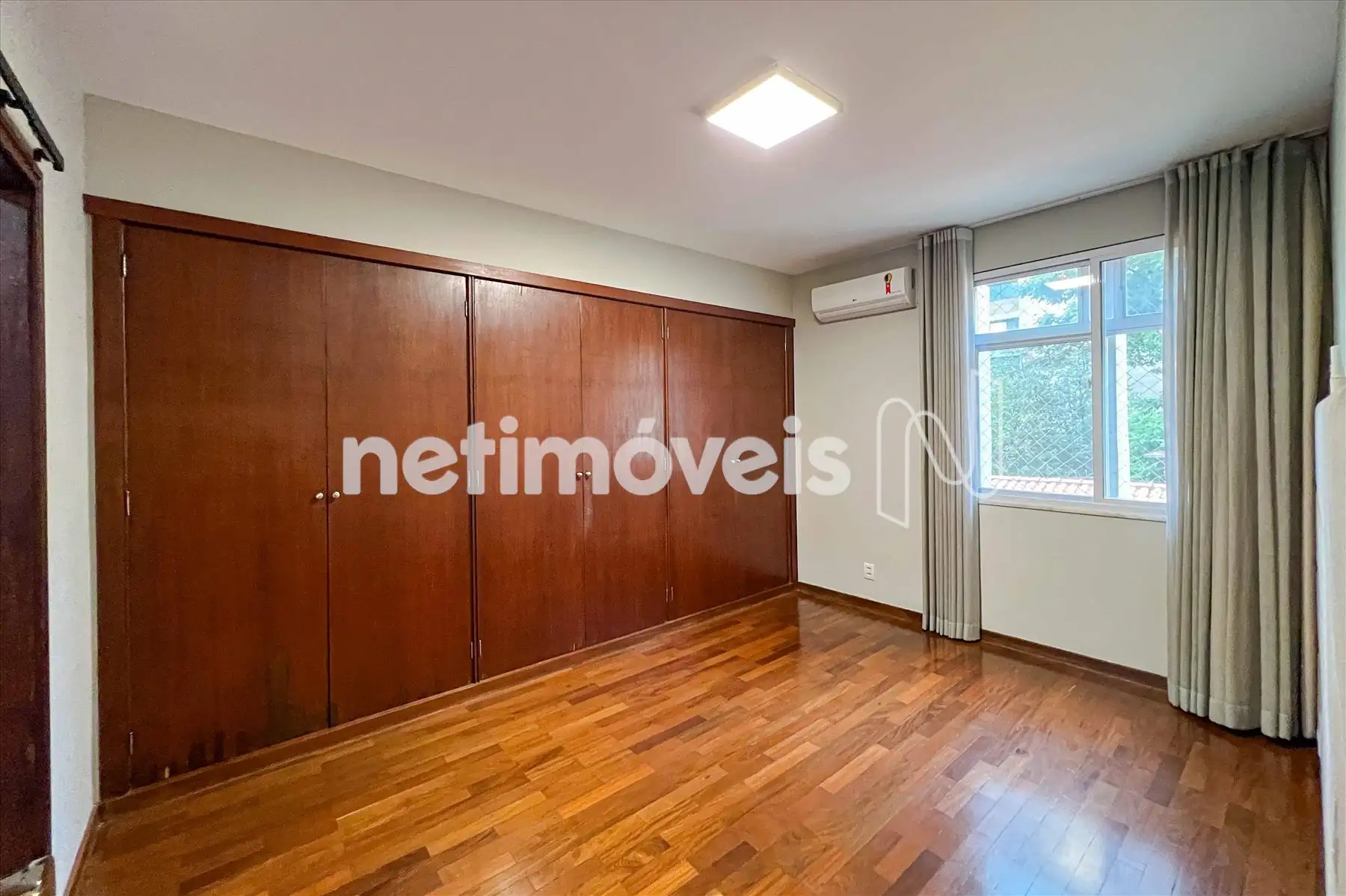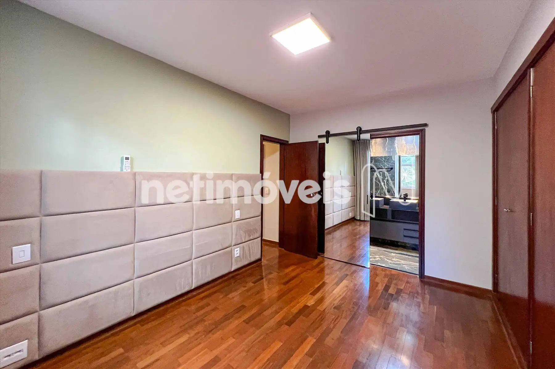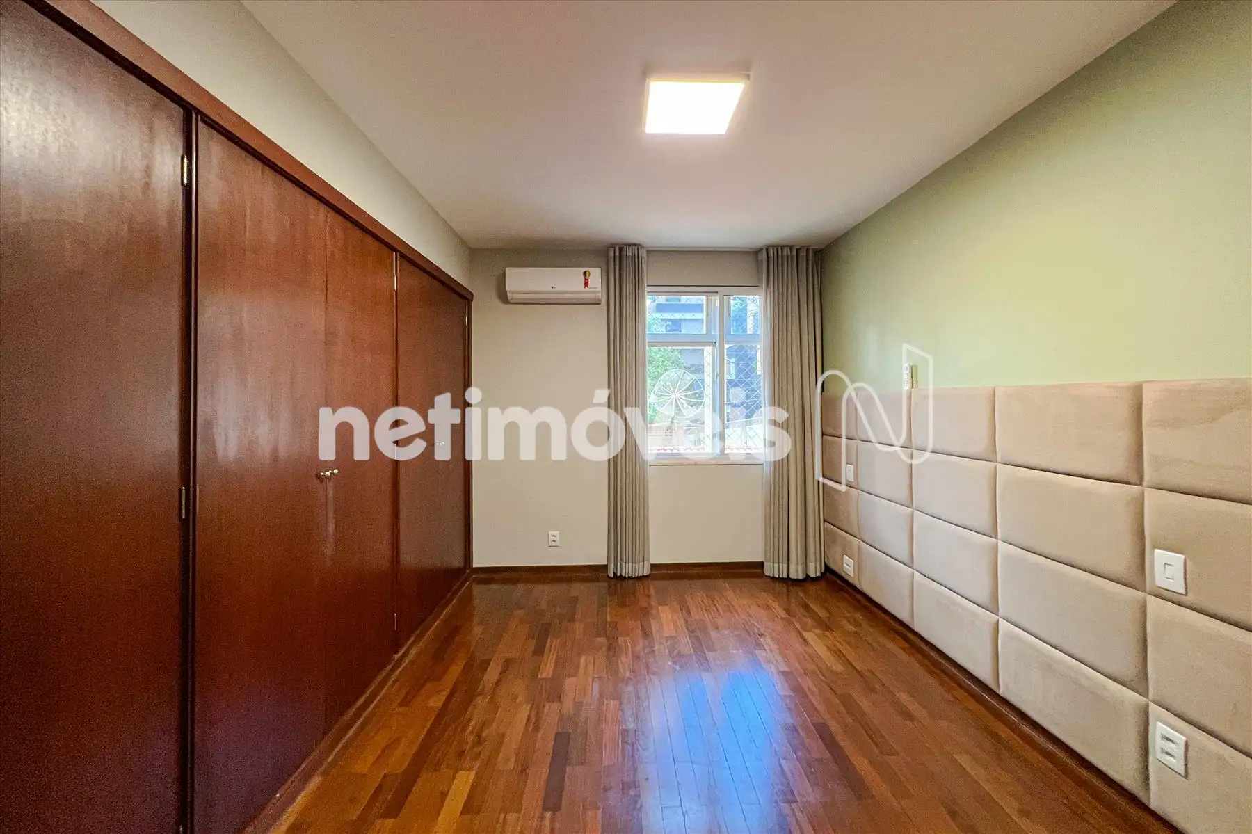 3 Quartos amplos, sendo 1 suíte, com piso em madeira tacão, armários embutidos, janelas acústicas e ar condicionado;