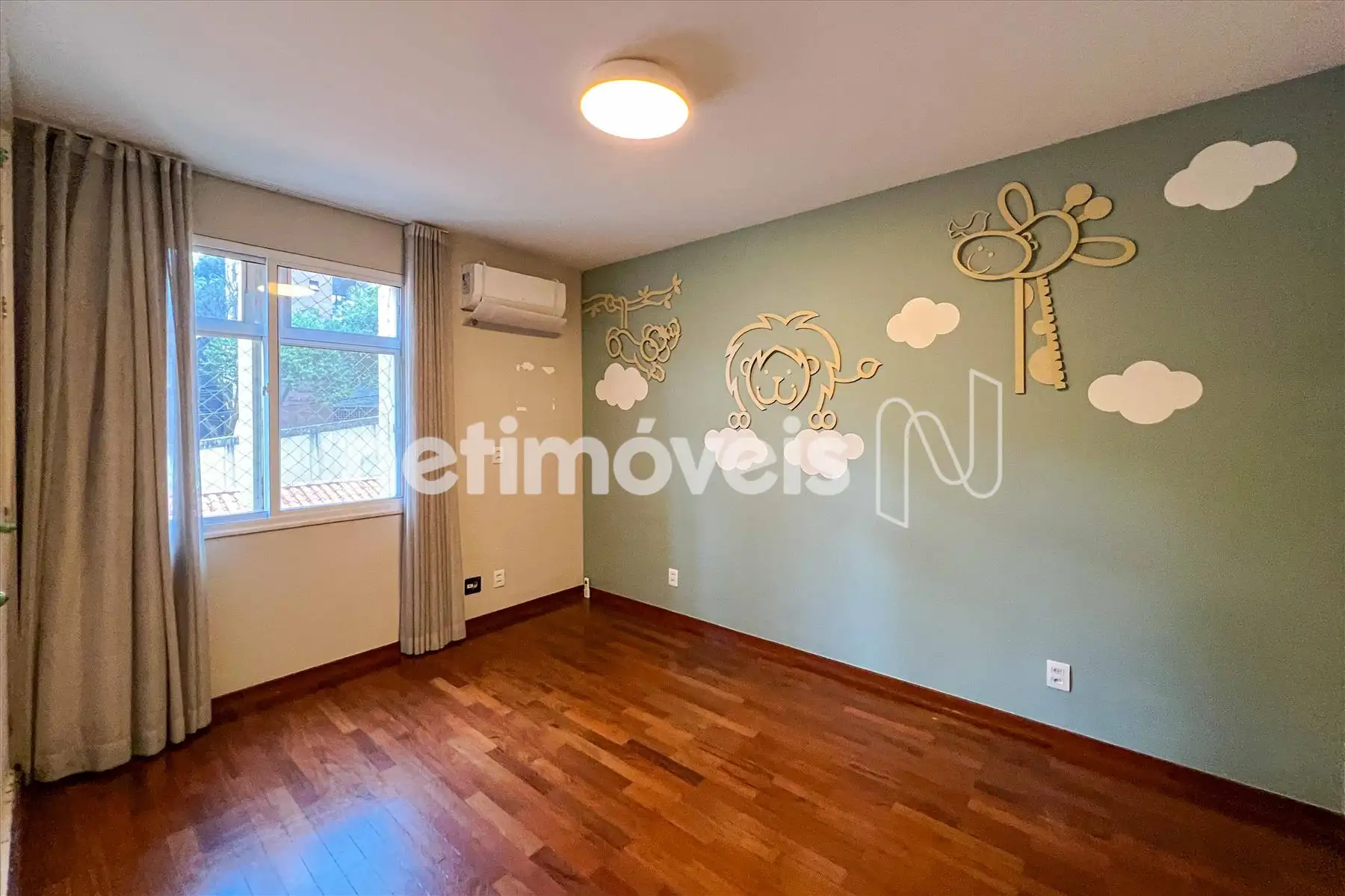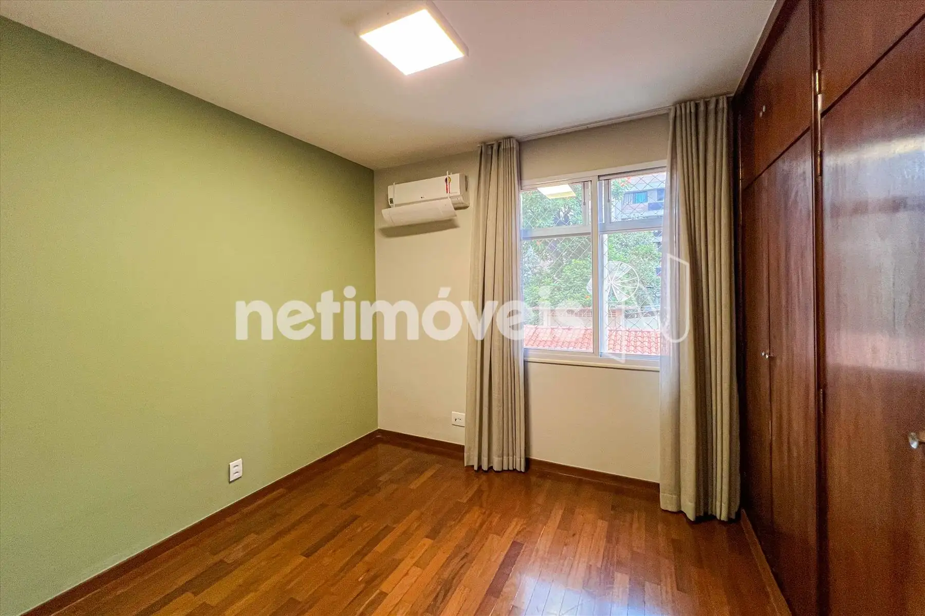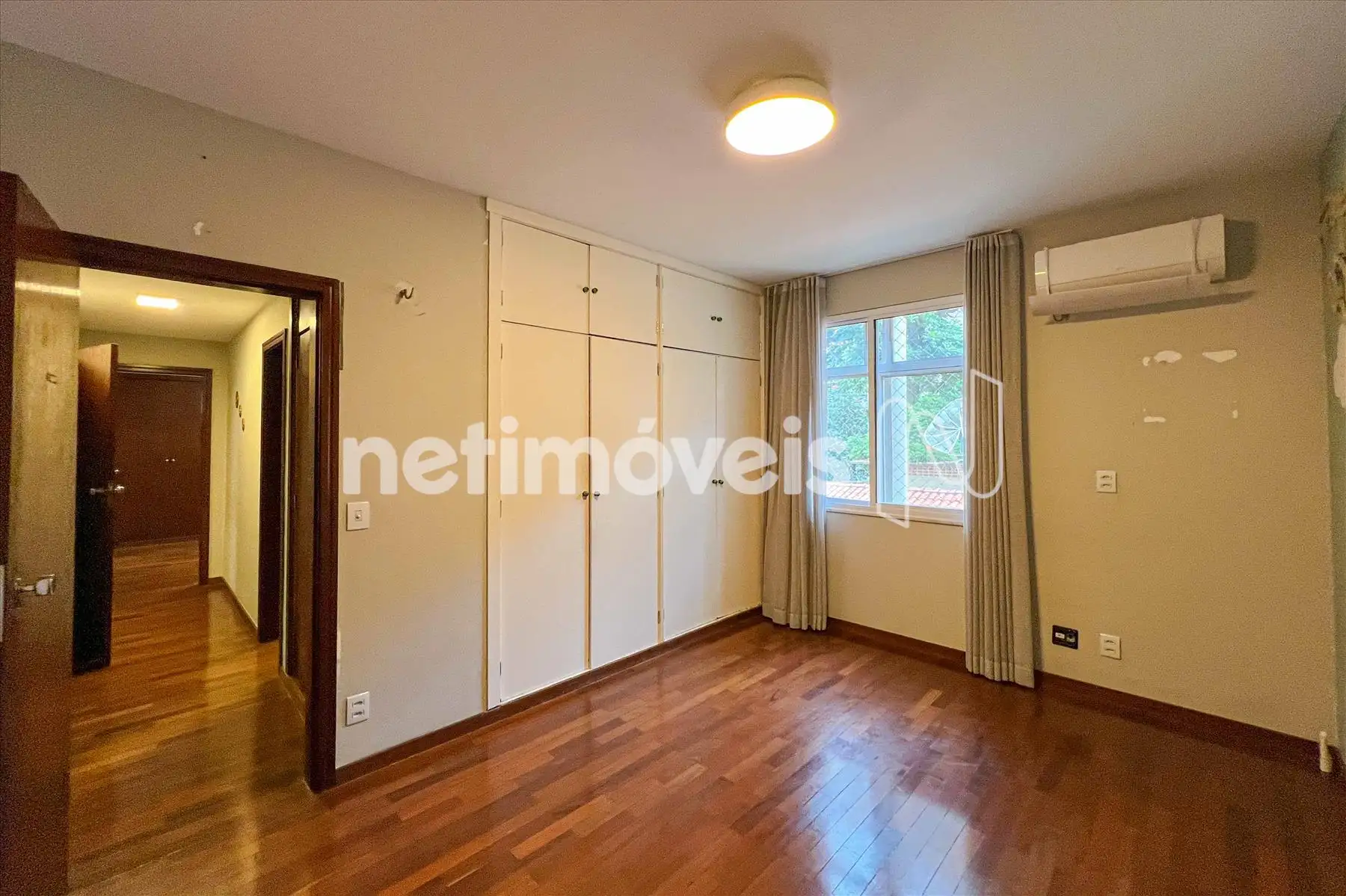 3 Quartos amplos, sendo 1 suíte, com piso em madeira tacão, armários embutidos, janelas acústicas e ar condicionado;