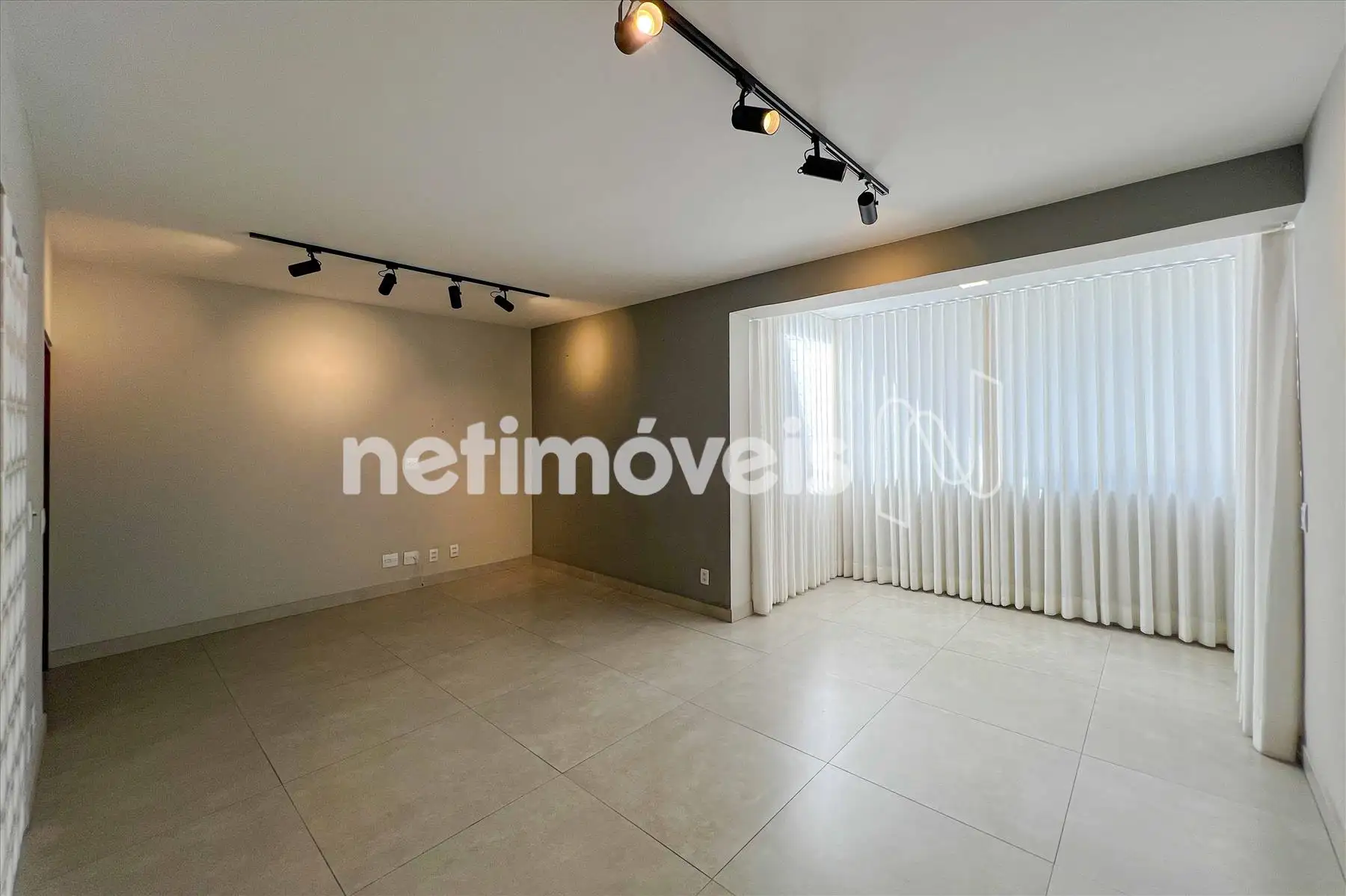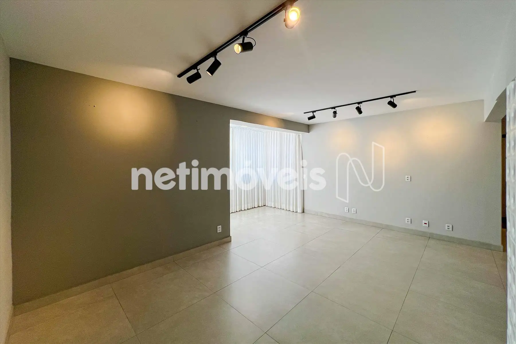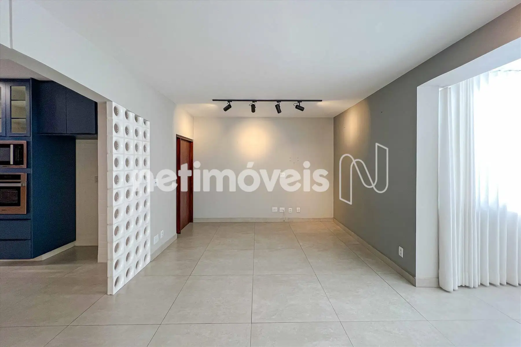 Sala ampla para 3 ambientes, com piso em porcelanato, projeto luminotécnico e varanda integrada com fechamento em vidro;