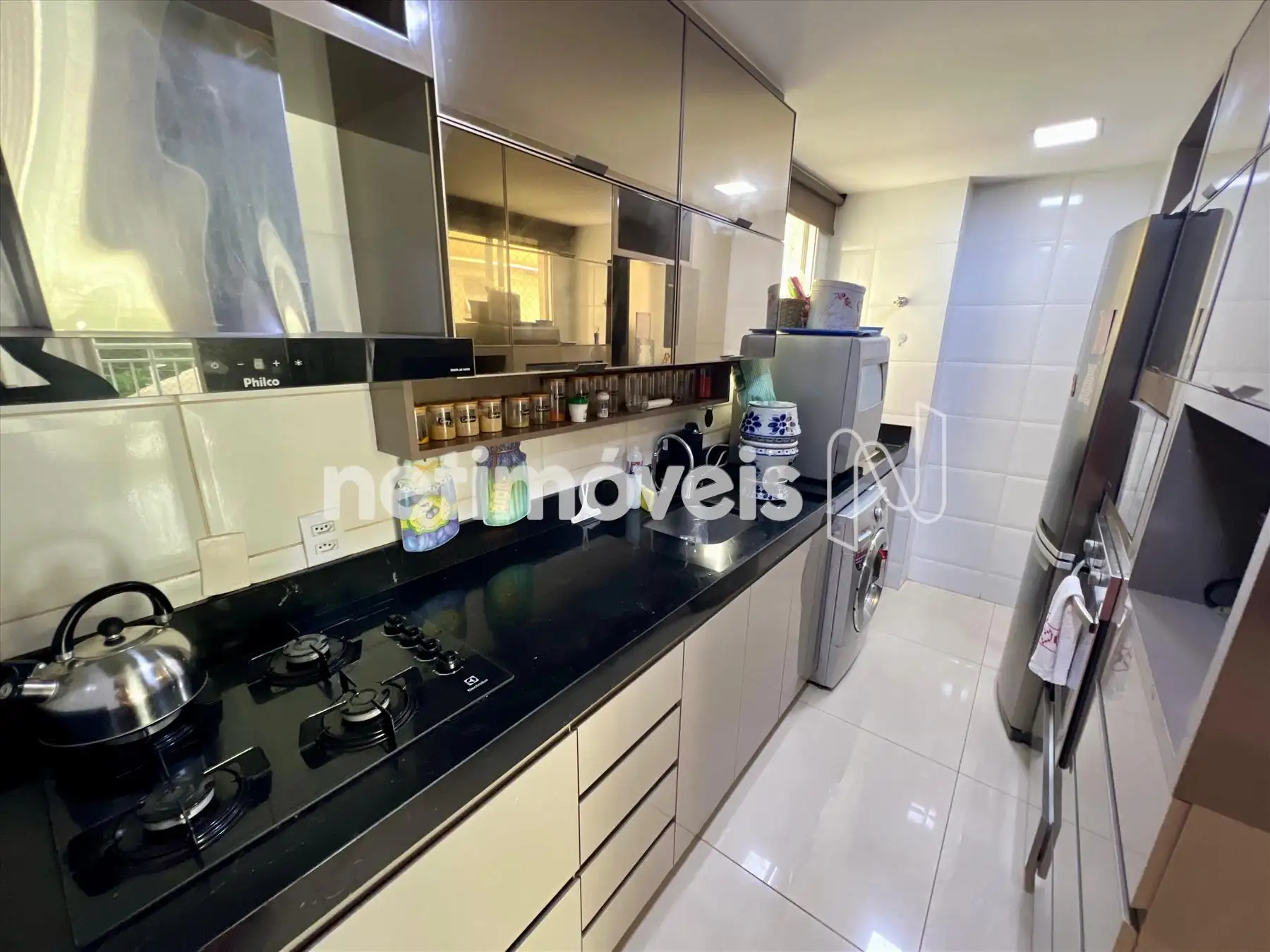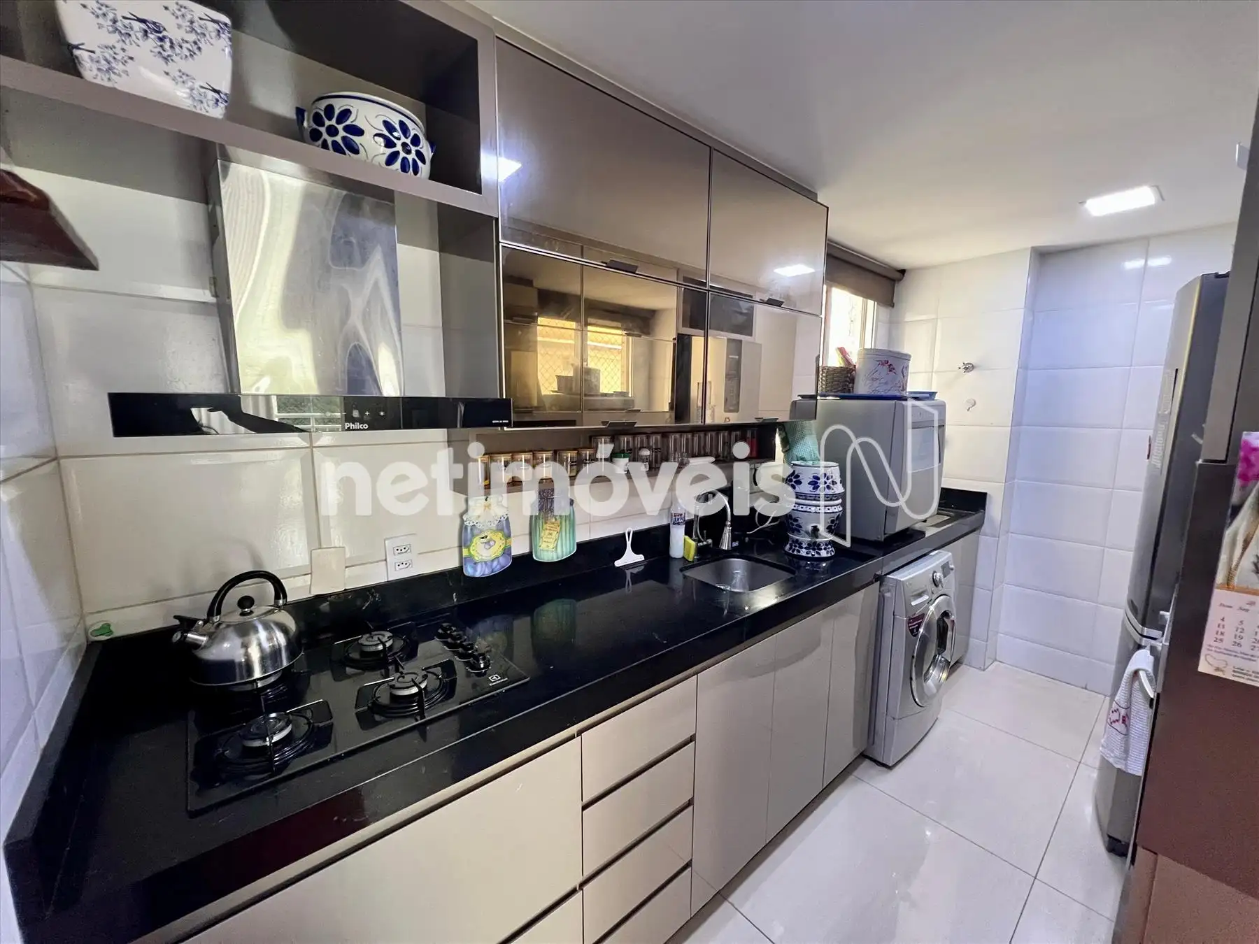 - Cozinha com bancadas em granito e toda planejada com armários; Área de serviço anexa.