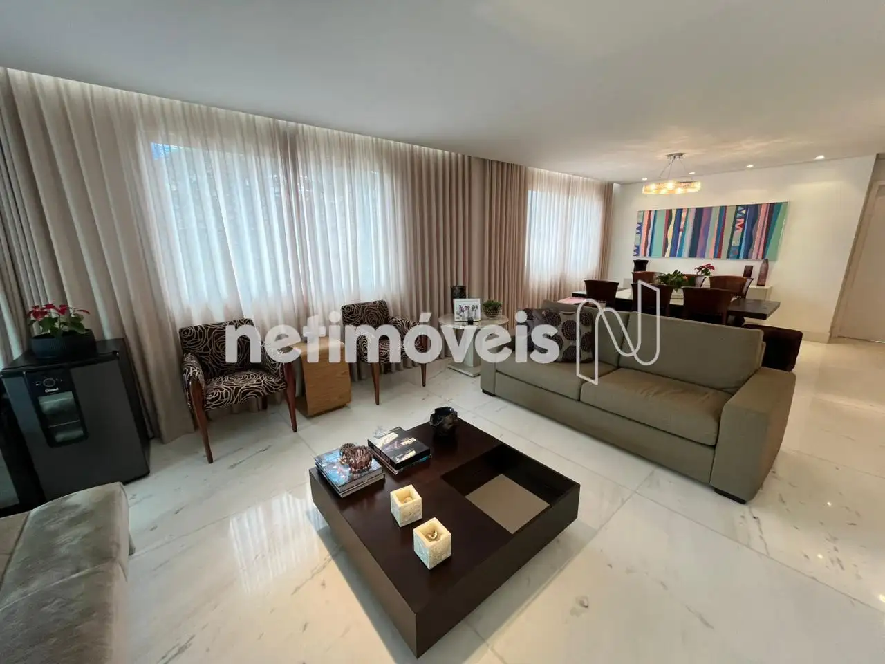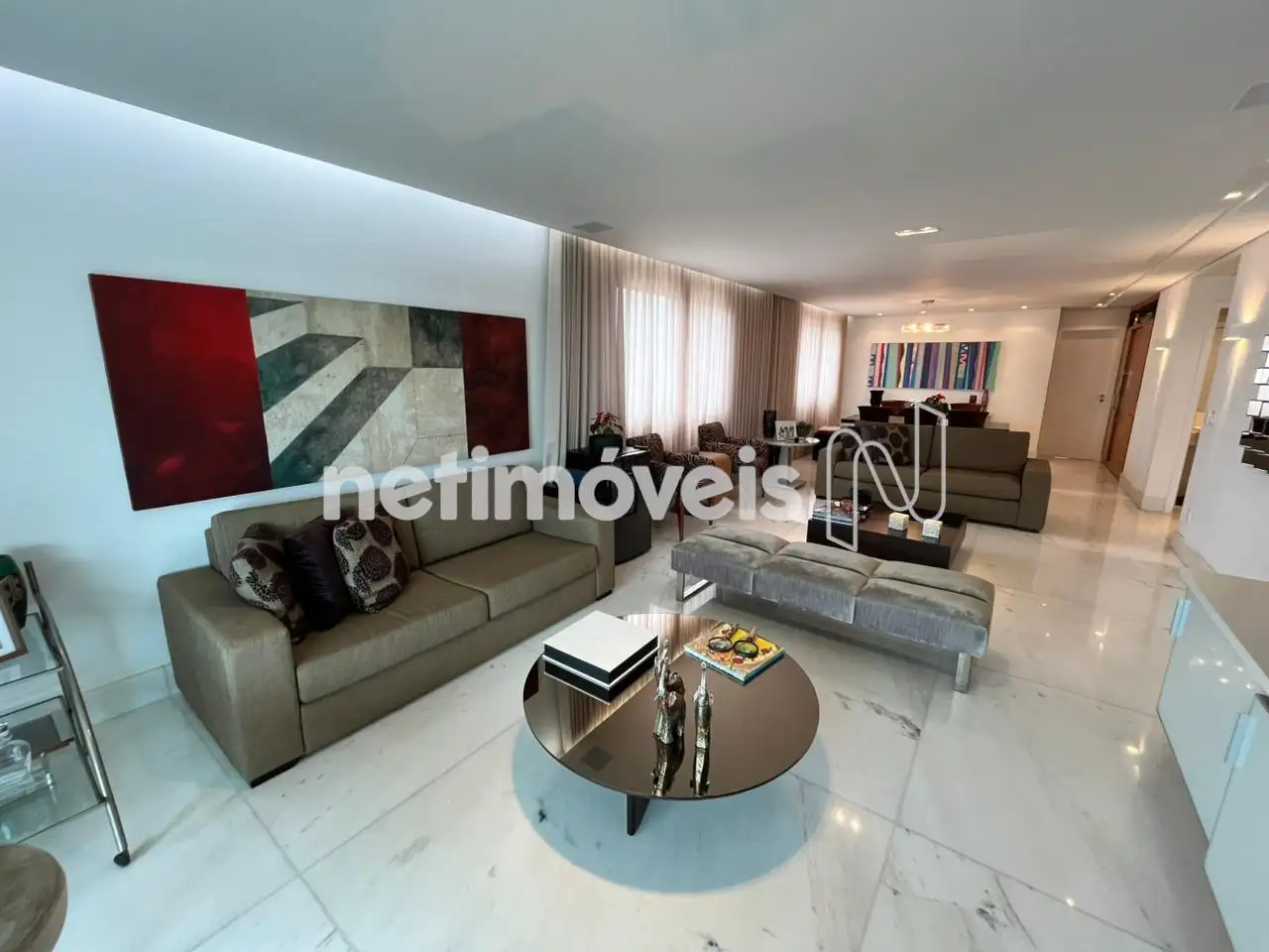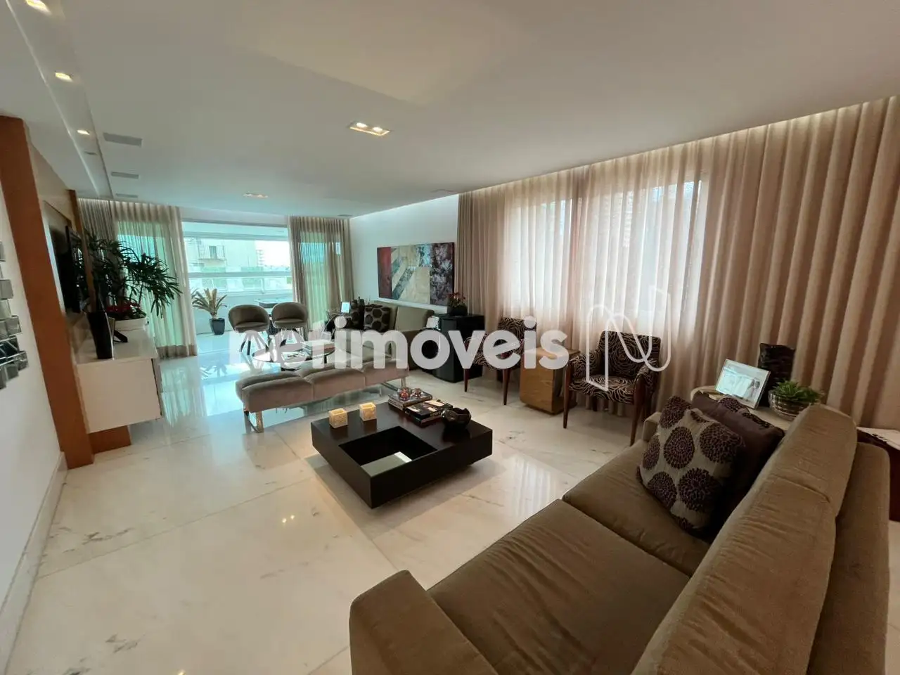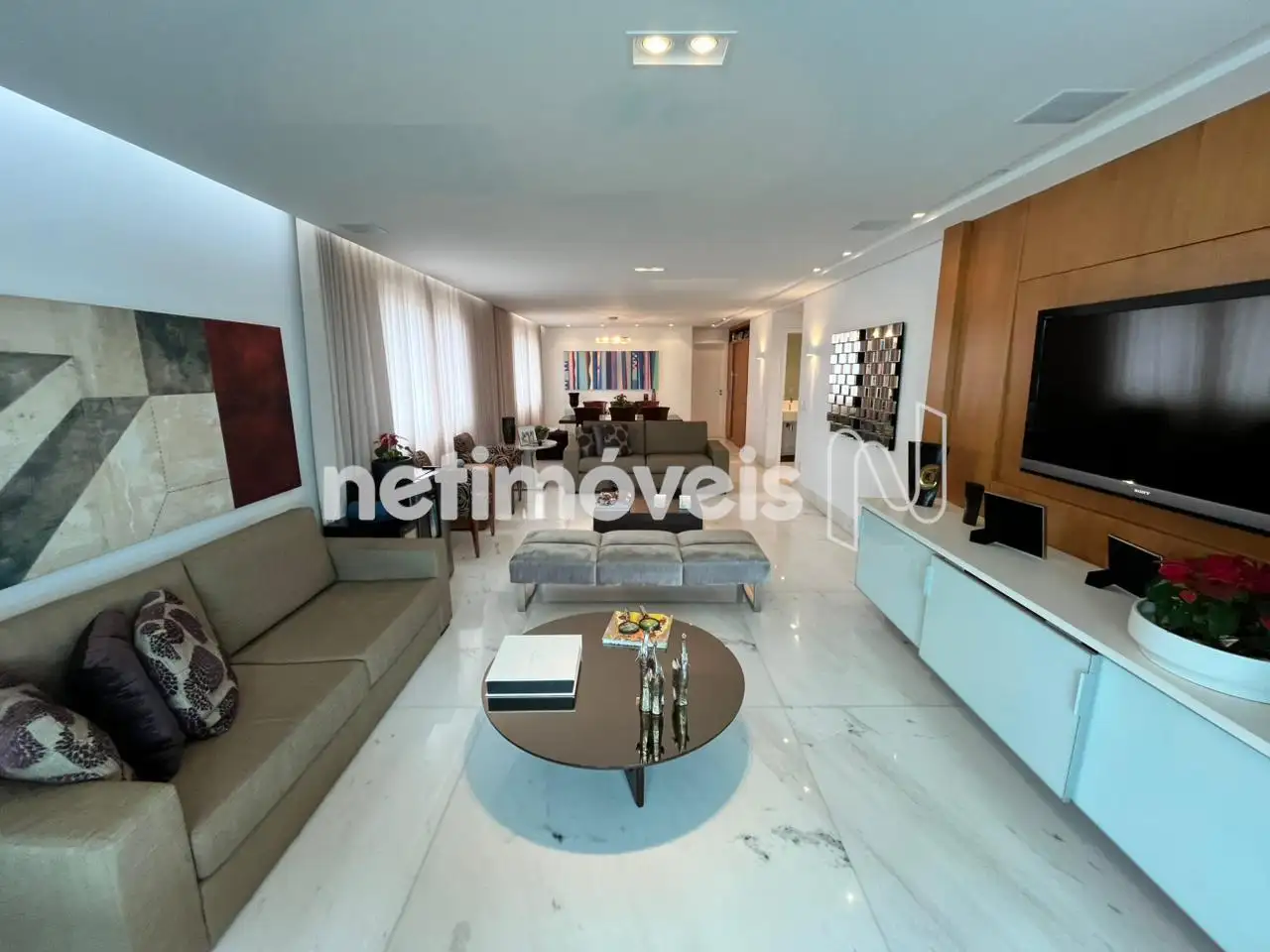 - Apartamento com um salão para 3 ambientes distintos com painel em madeira ,piso em mármore branco