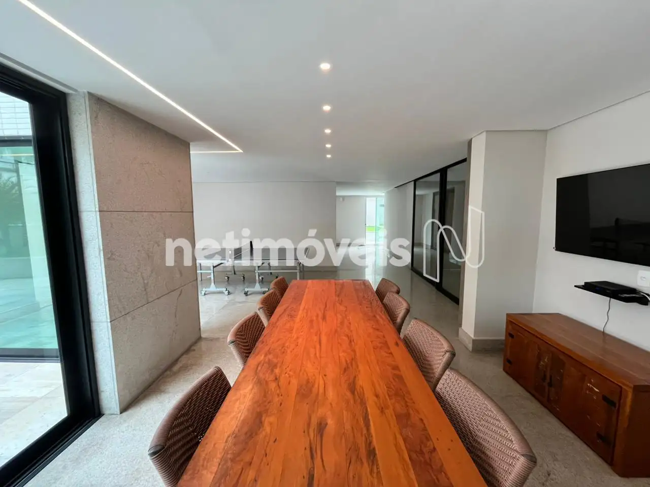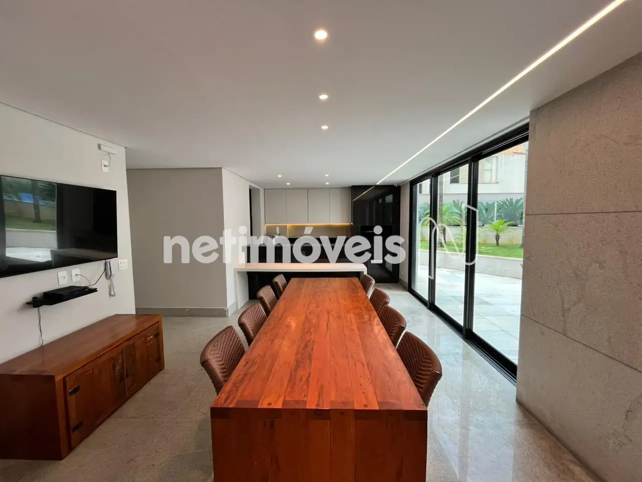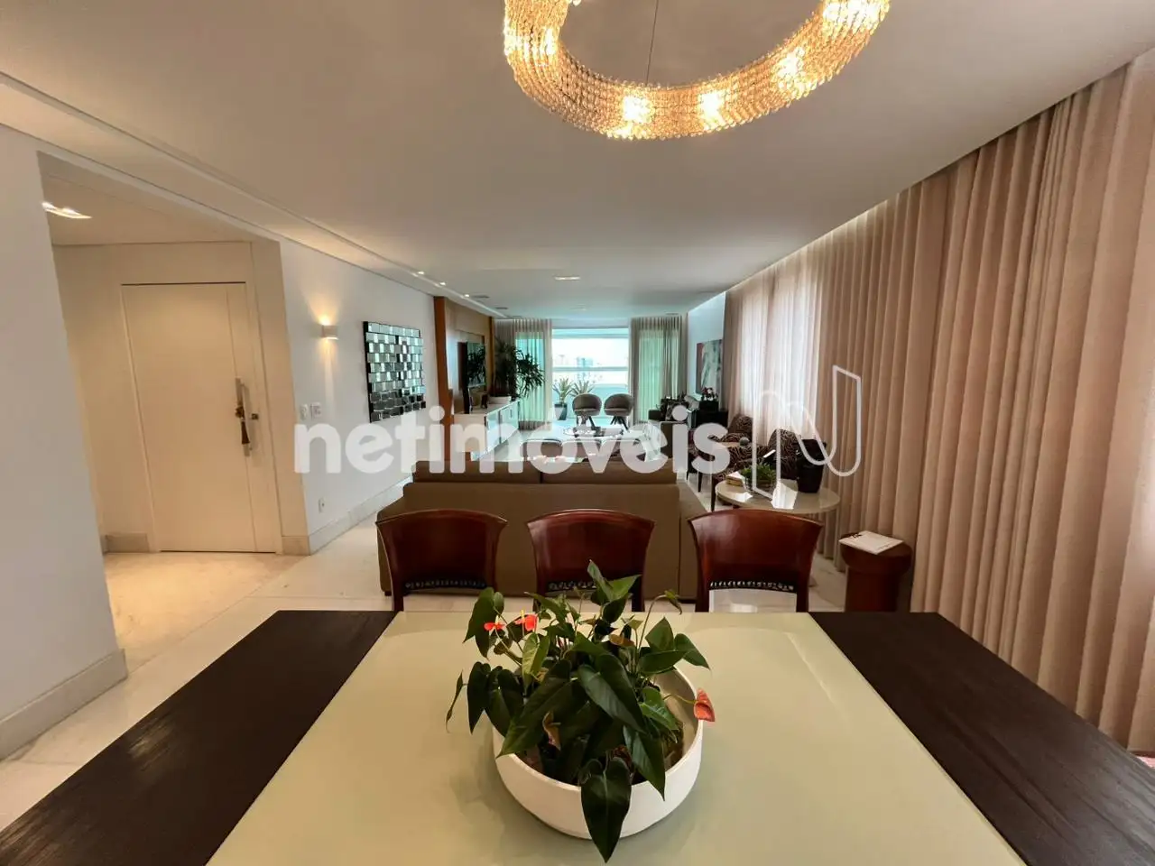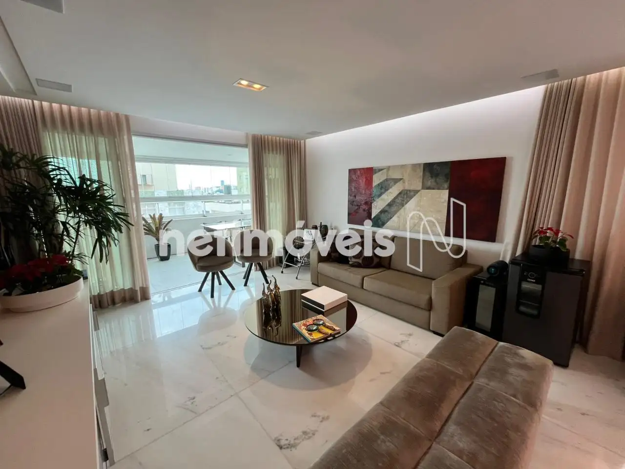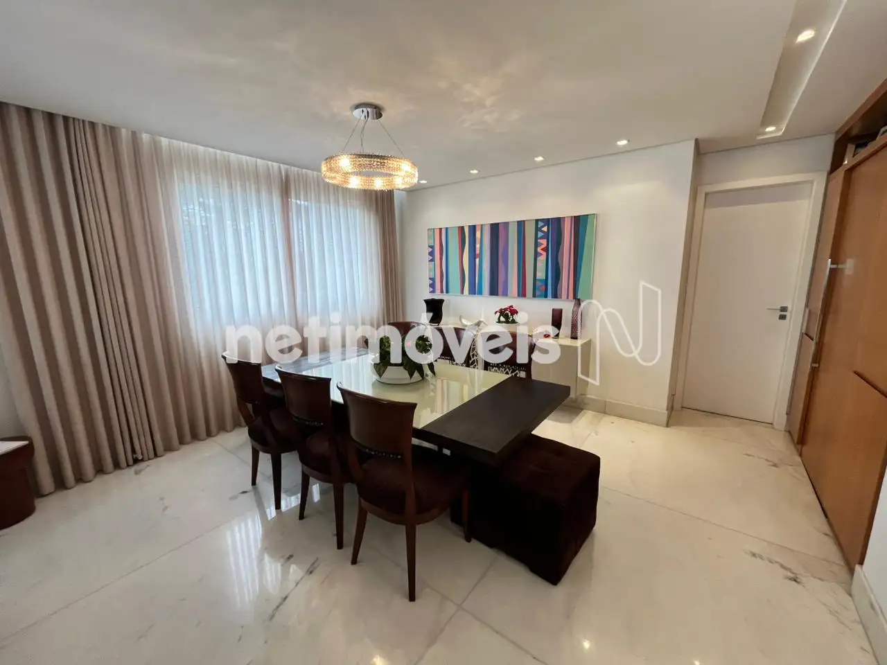 - Apartamento com um salão para 3 ambientes distintos com painel em madeira ,piso em mármore branco