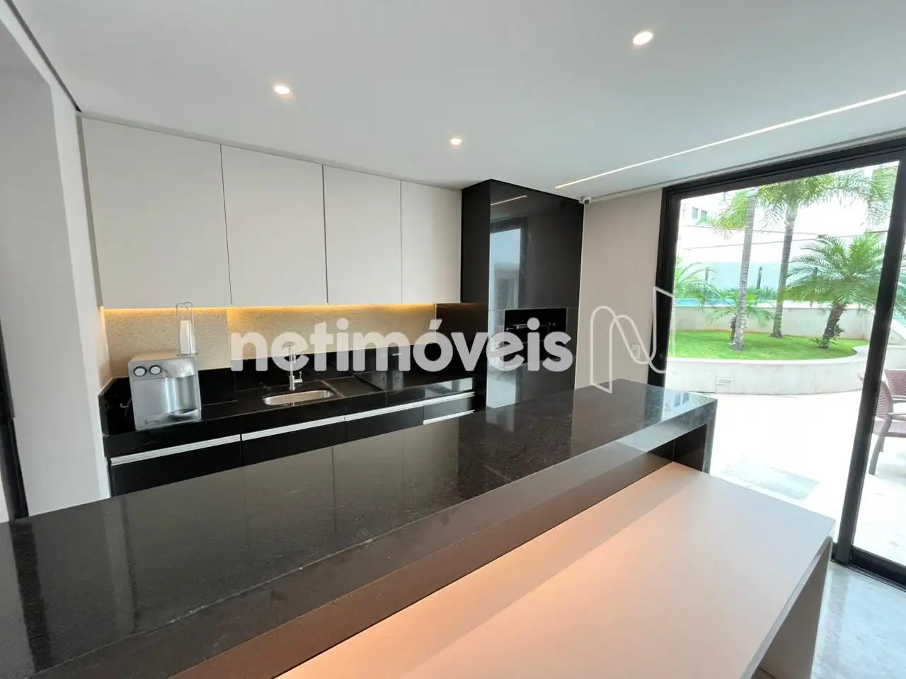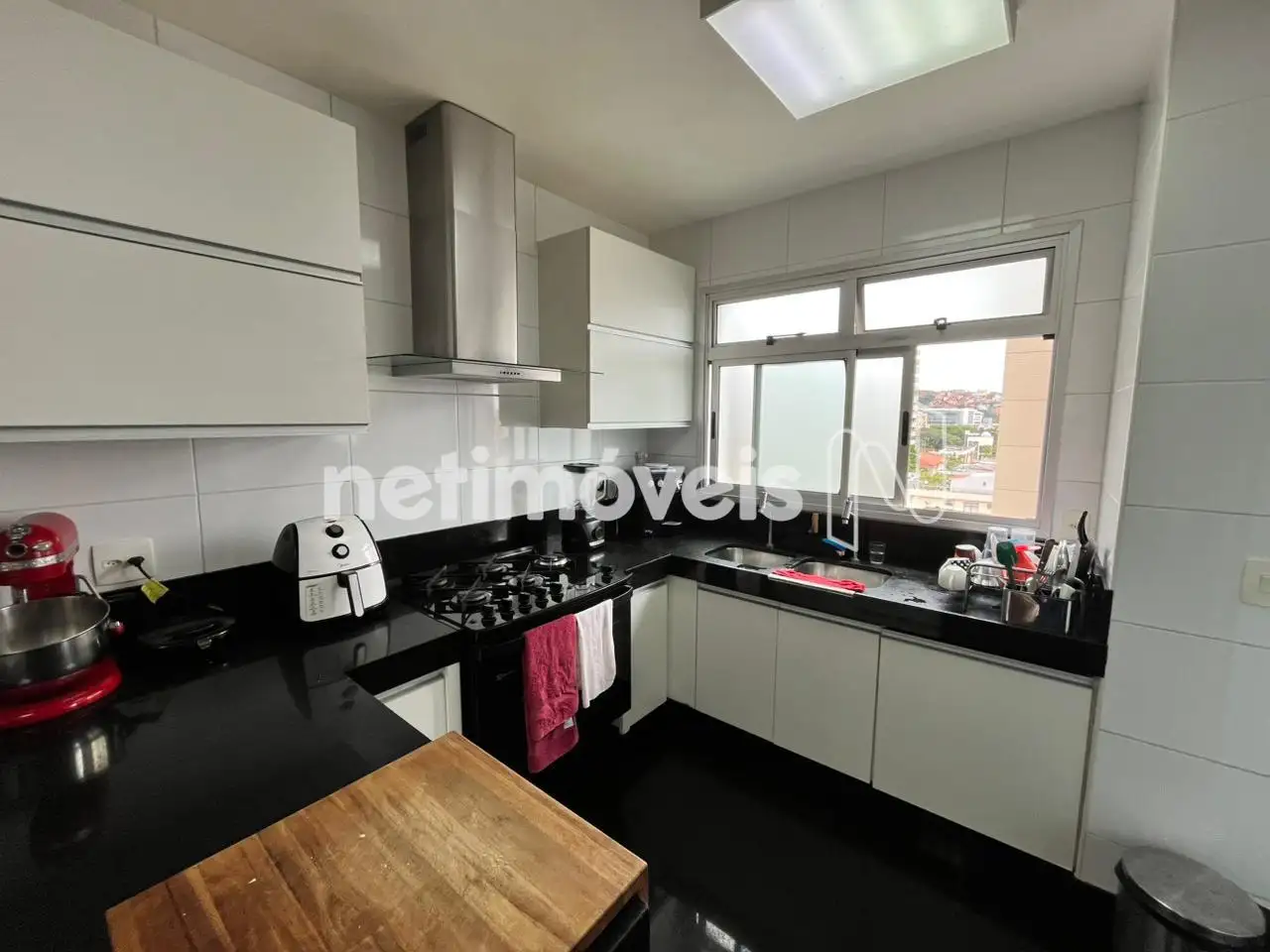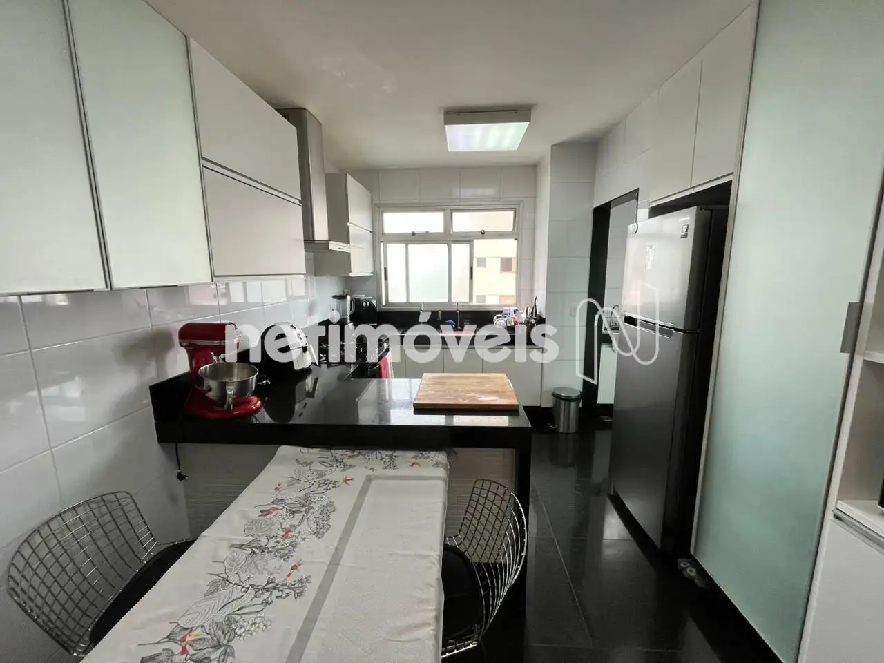 - Copa-cozinha com coifa com piso em granito preto