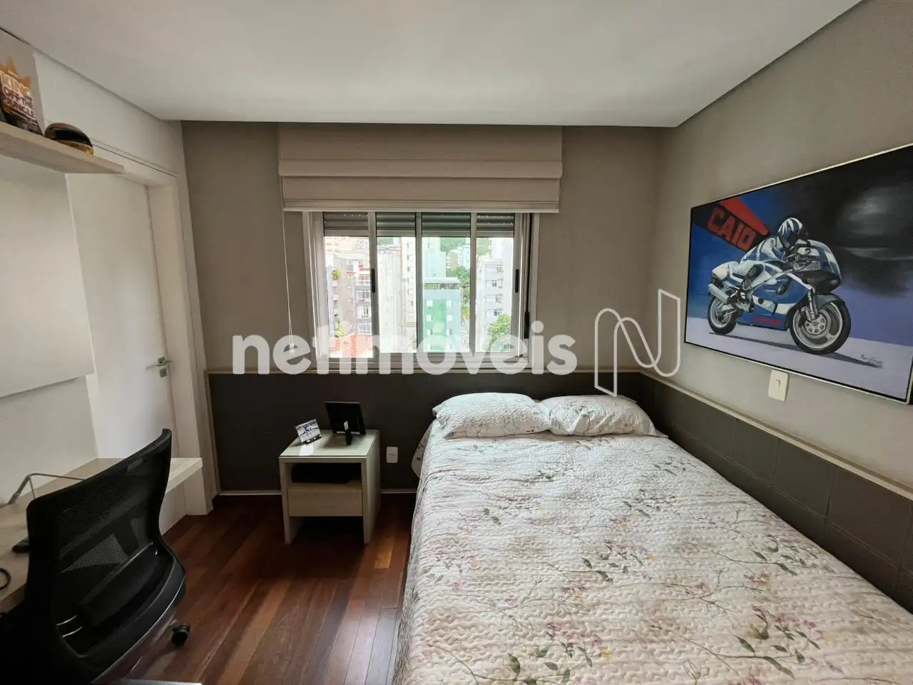 - 4 quartos com piso em tábua corrida, sendo duas suítes e duas sem-suítes todos com armários planejados,