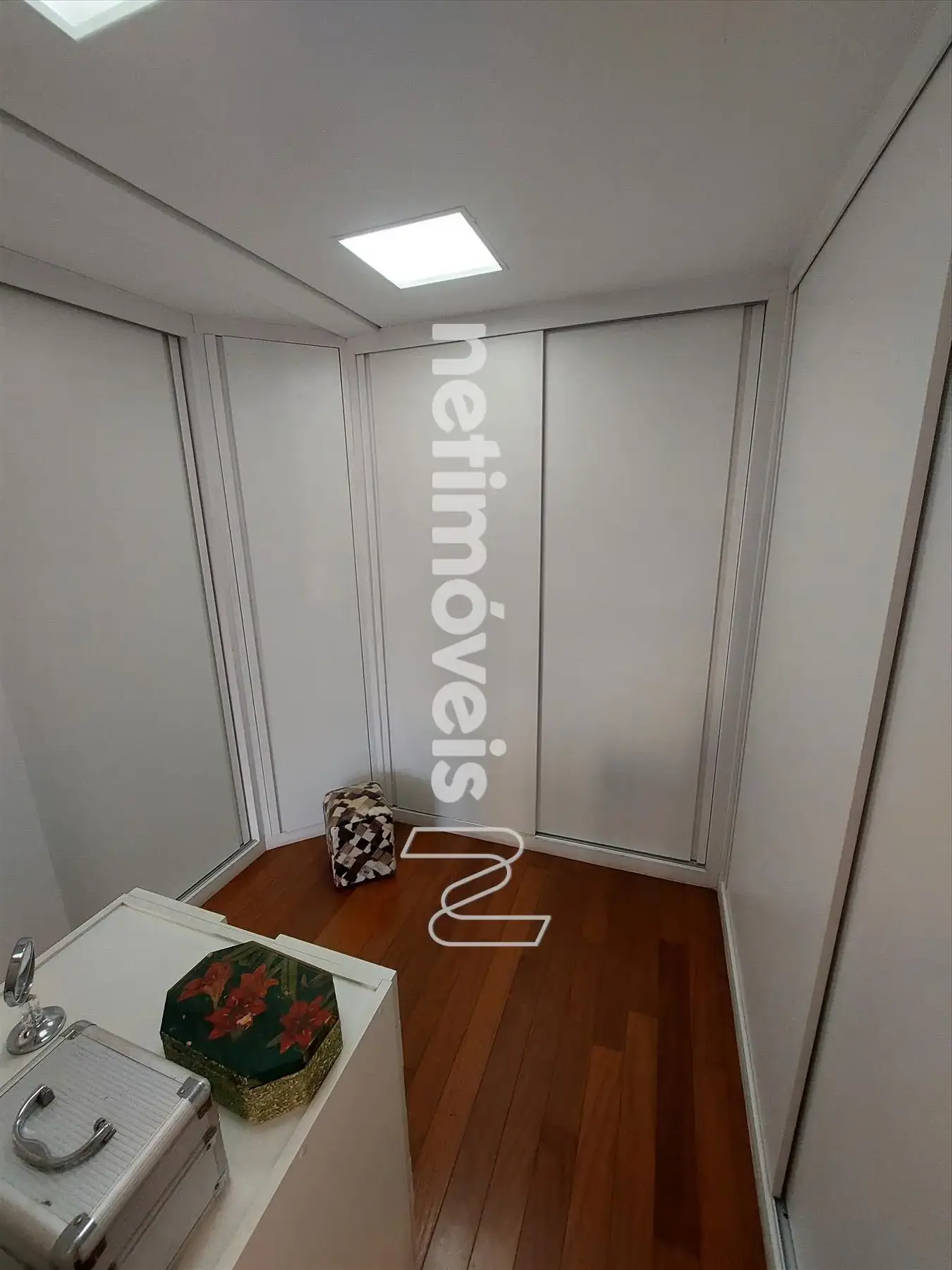 Piso: Quartos em tábua corrida, sala cozinha e banhos em porcelanato, banheiro da suite em marmore.