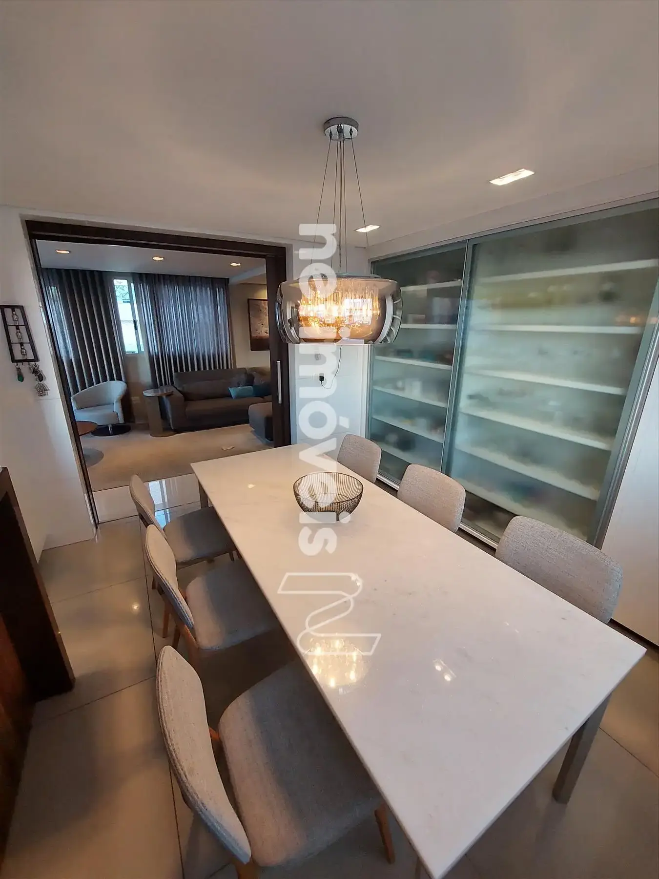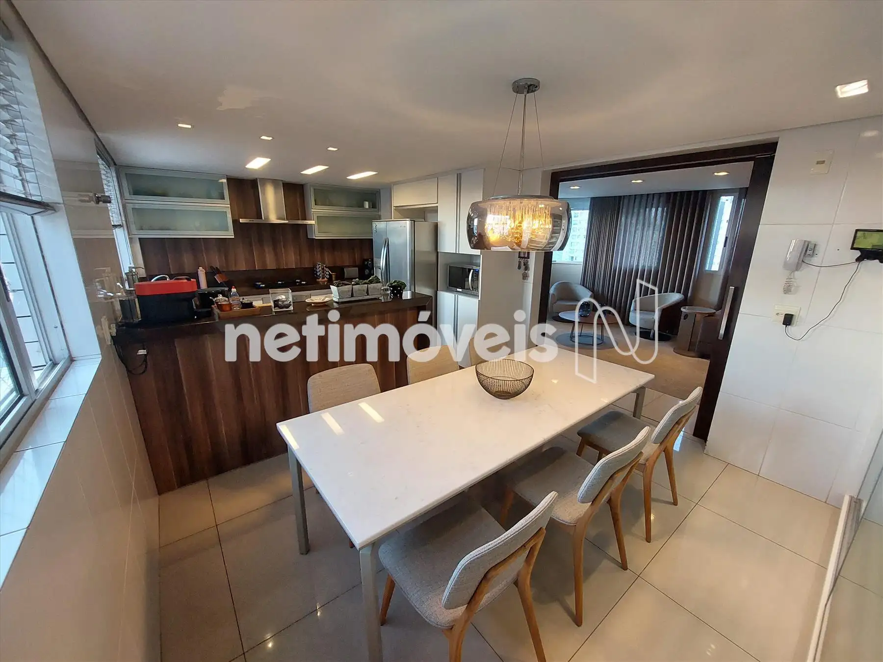 Apartamento 1º nível: 4 quartos sendo que 2 quartos foram unificados porem é facilmente reversivel, sala para 02 ambientes, 04 banhos sendo 02 suítes, 01 social e 01 lavabo, cozinha com armario de dispensa.
