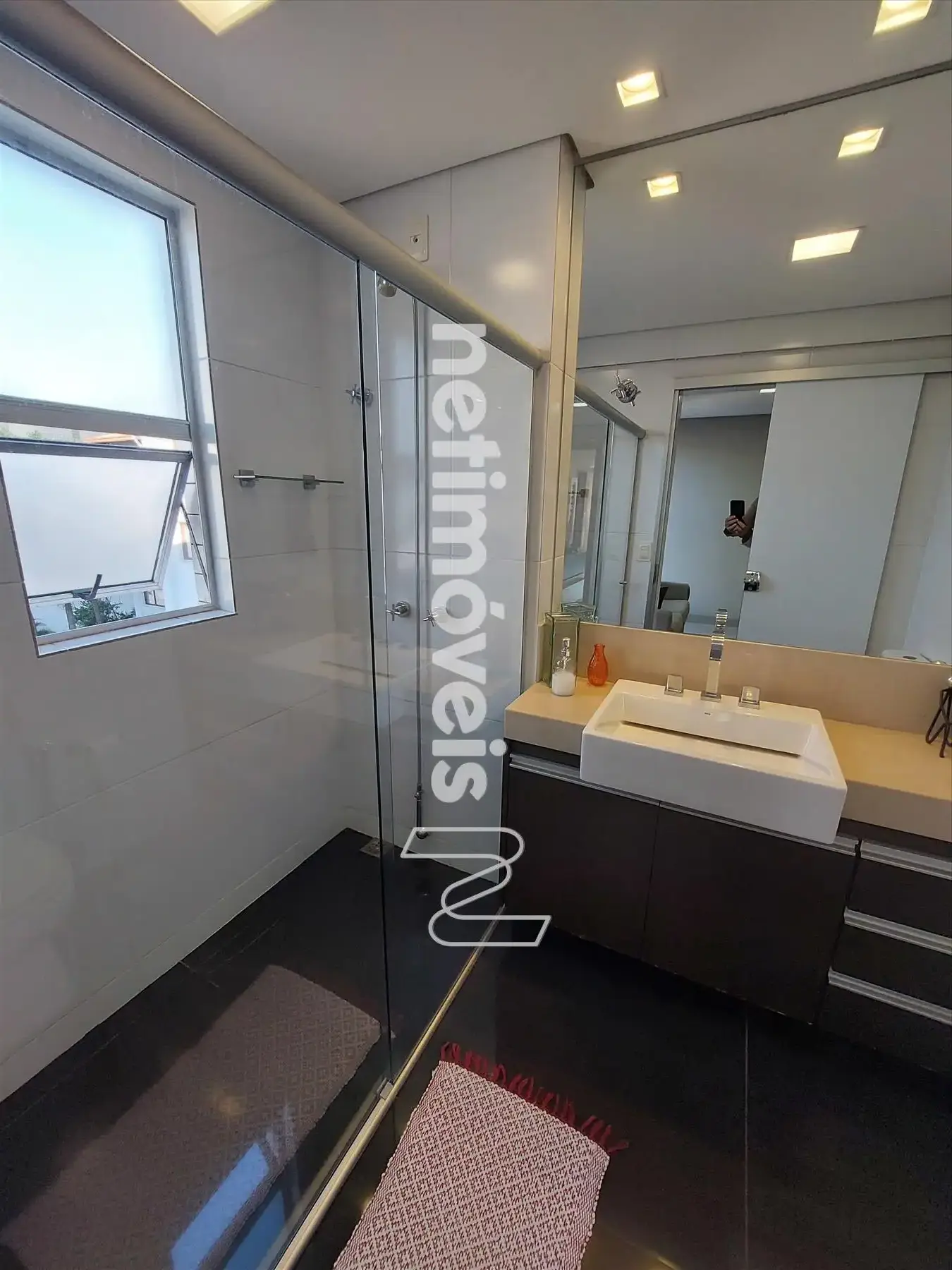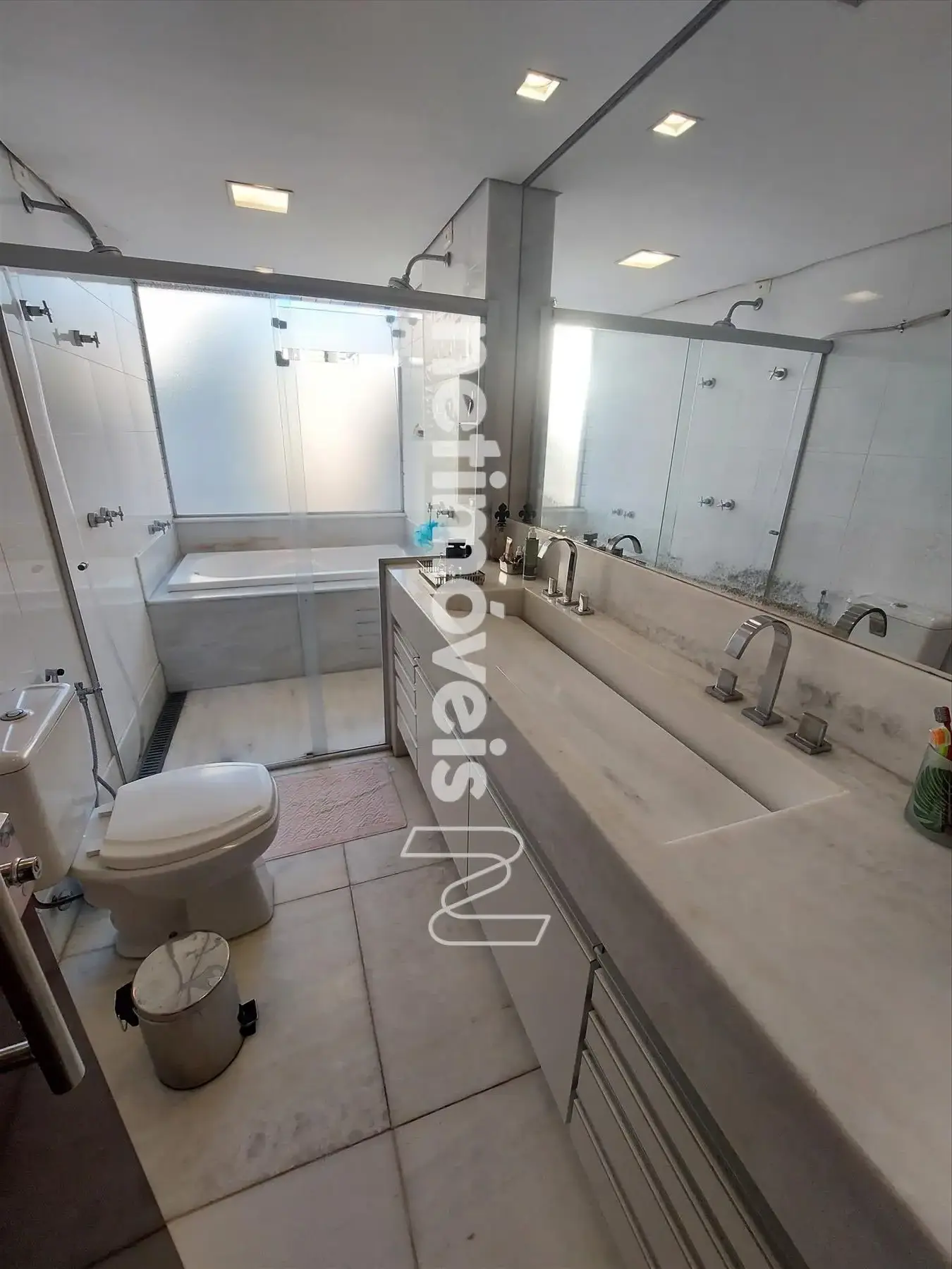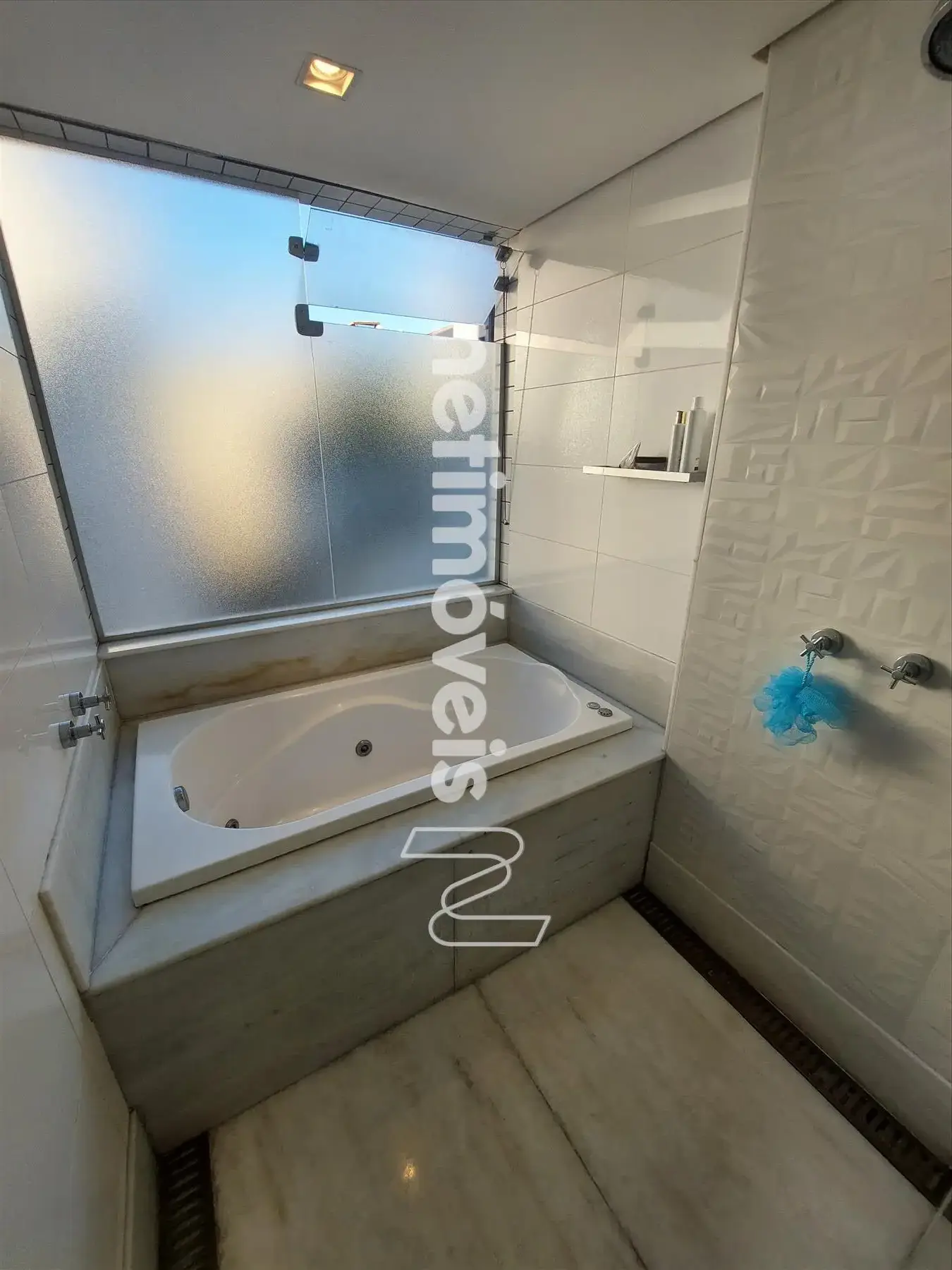 Bancada: Banho da suite em marmore branco, banhos e cozinha em granito.