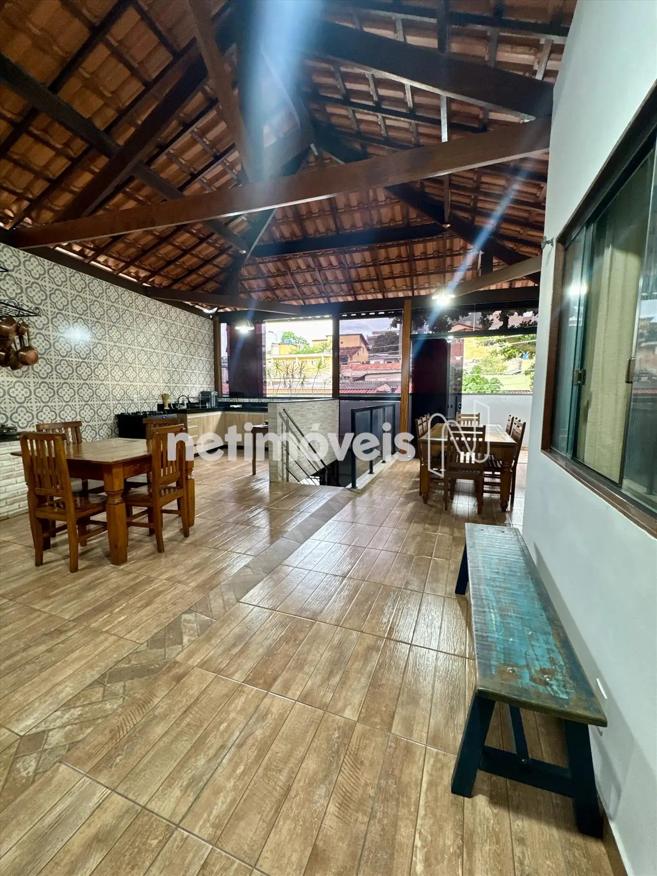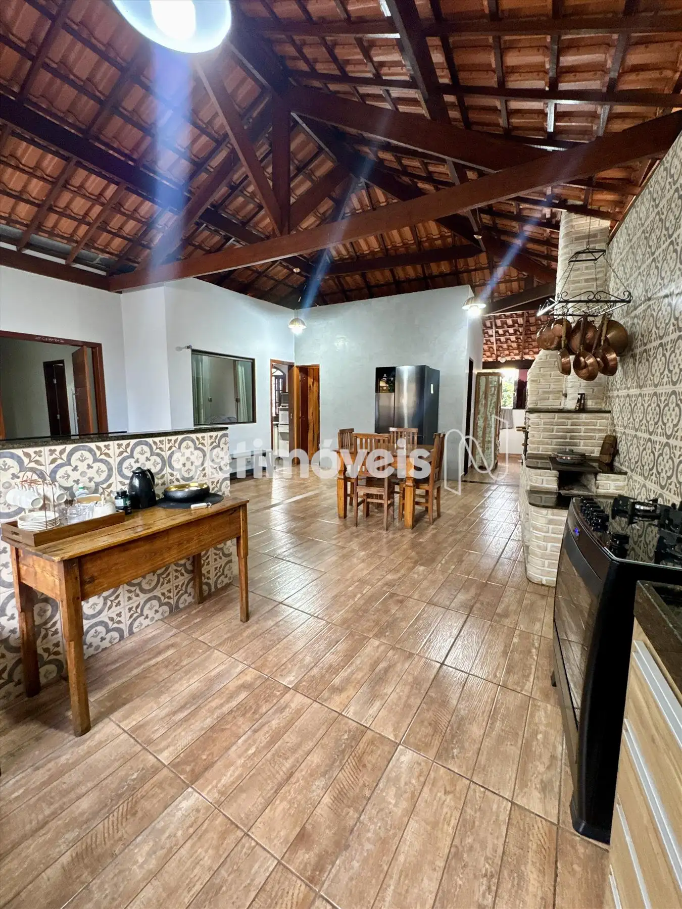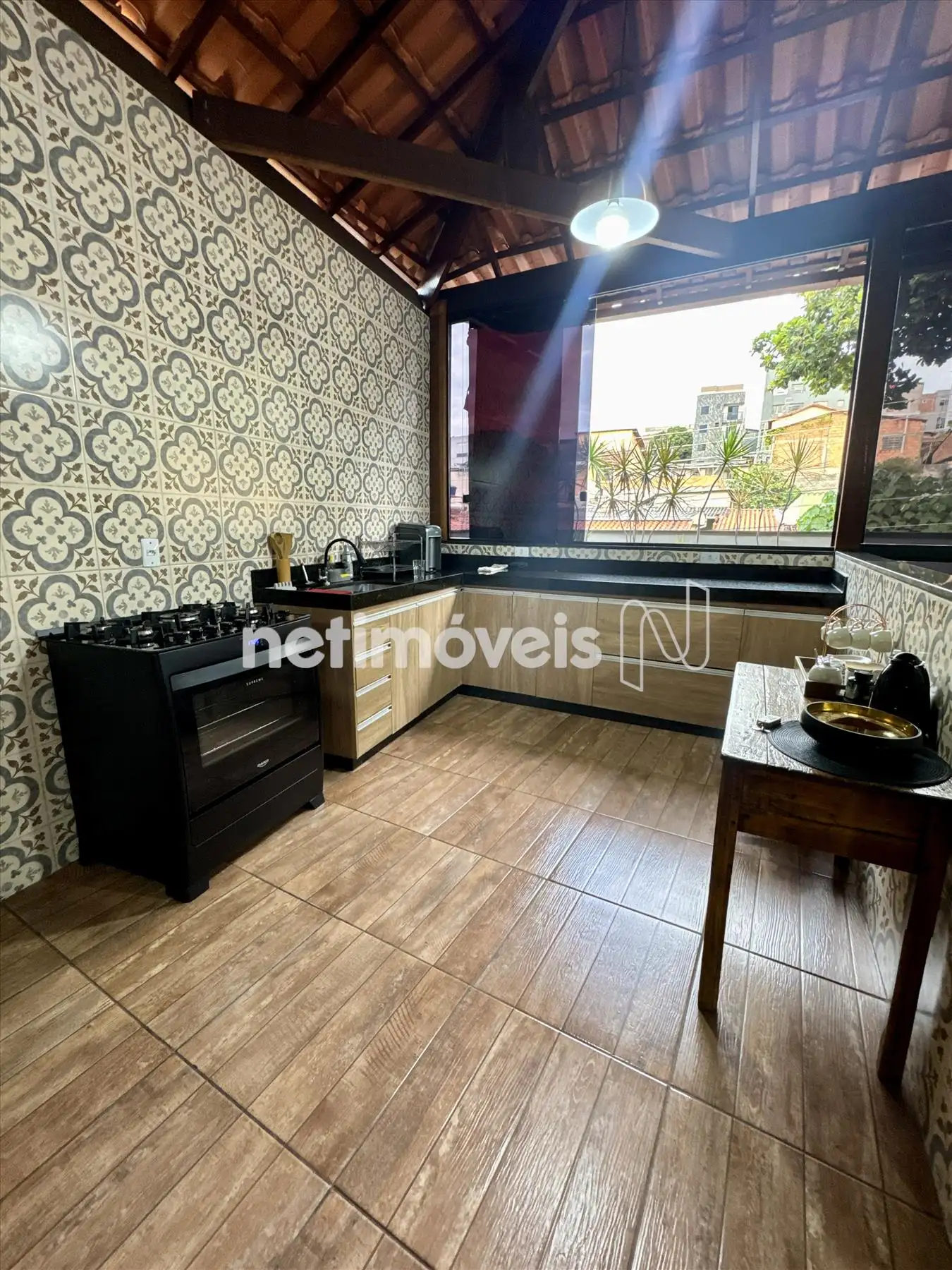 A cozinha gourmet é um dos destaques do imóvel, pensada para quem valoriza momentos de convivência. Integrada à área com churrasqueira, cria o cenário perfeito para reunir família e amigos.