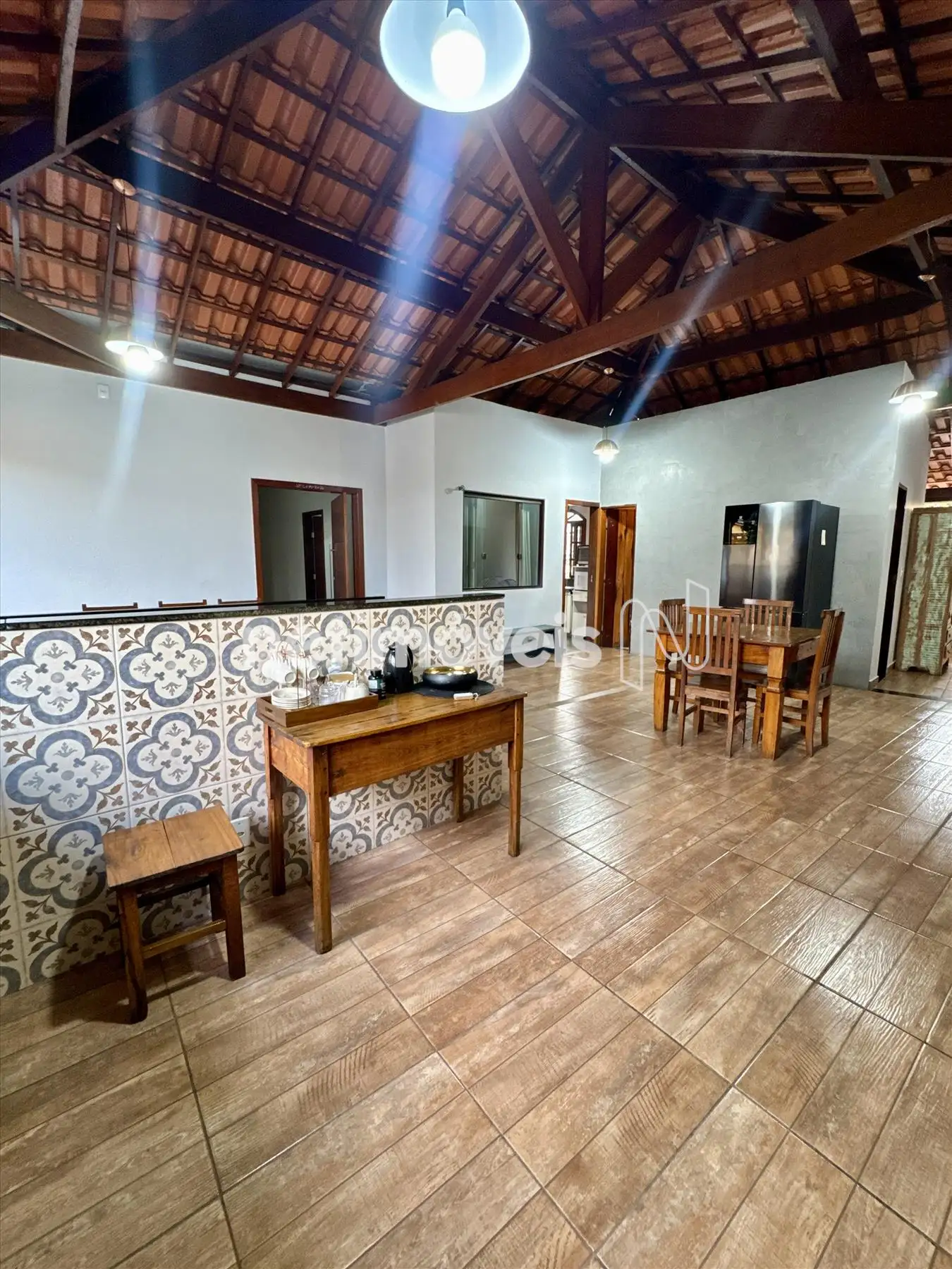 A casa dispõe também de varanda agradável, trazendo mais ventilação e luminosidade natural aos ambientes.