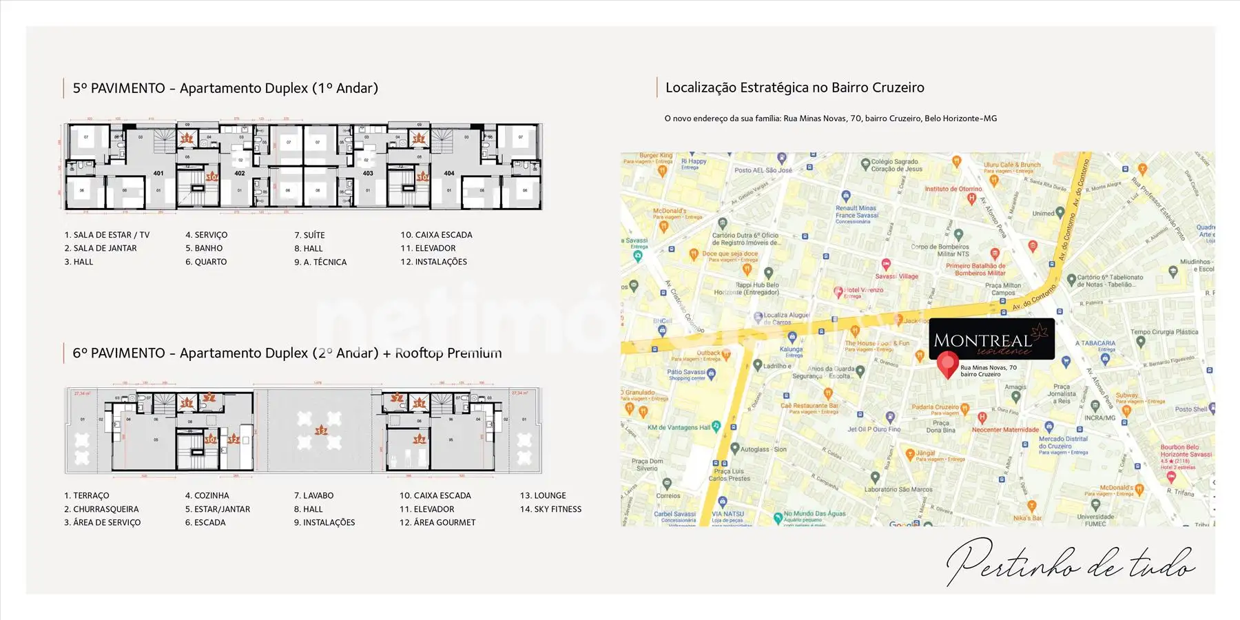- Este encantador apartamento com área privativa no Montreal Residence, localizado no Bairro Cruzeiro, em Belo Horizonte. Com uma área de 54,90m² construídos e 38,42 m² de área externa, o imóvel possui 2 dormitórios, sendo 1 suíte e 1 banheiro social. Ideal para quem busca conforto, o apartamento conta com cozinha americana e área de serviço. Os moradores desfrutam de infraestrutura completa no Rooftop com espaço gourmet, elevadores, gás central e portão eletrônico.