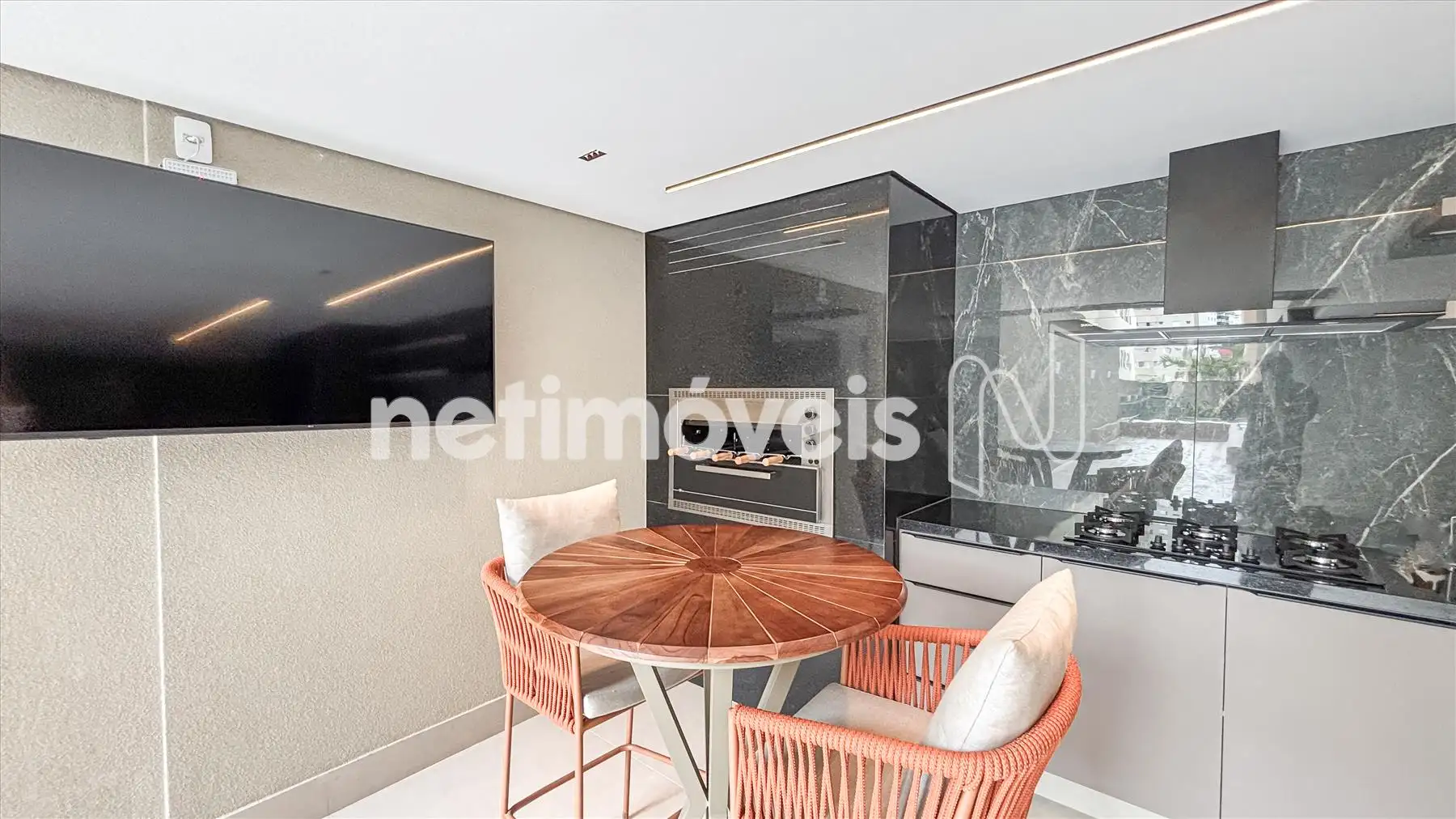 Este apto vai ser entregue com marcenaria, forno e ar condicionado em todos os ambientes.