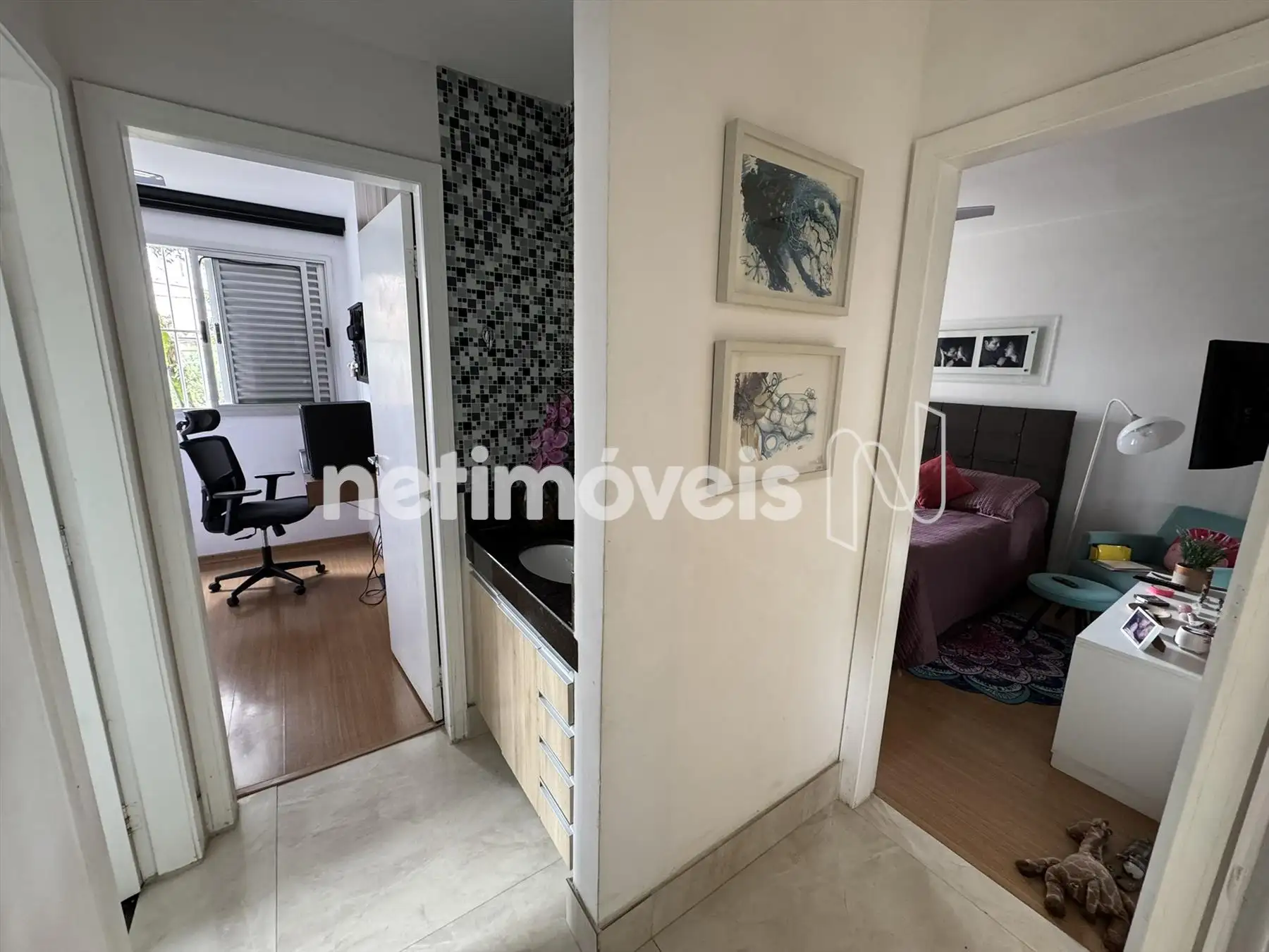 03 quartos com armários, piso em laminado, sendo 01 suíte.