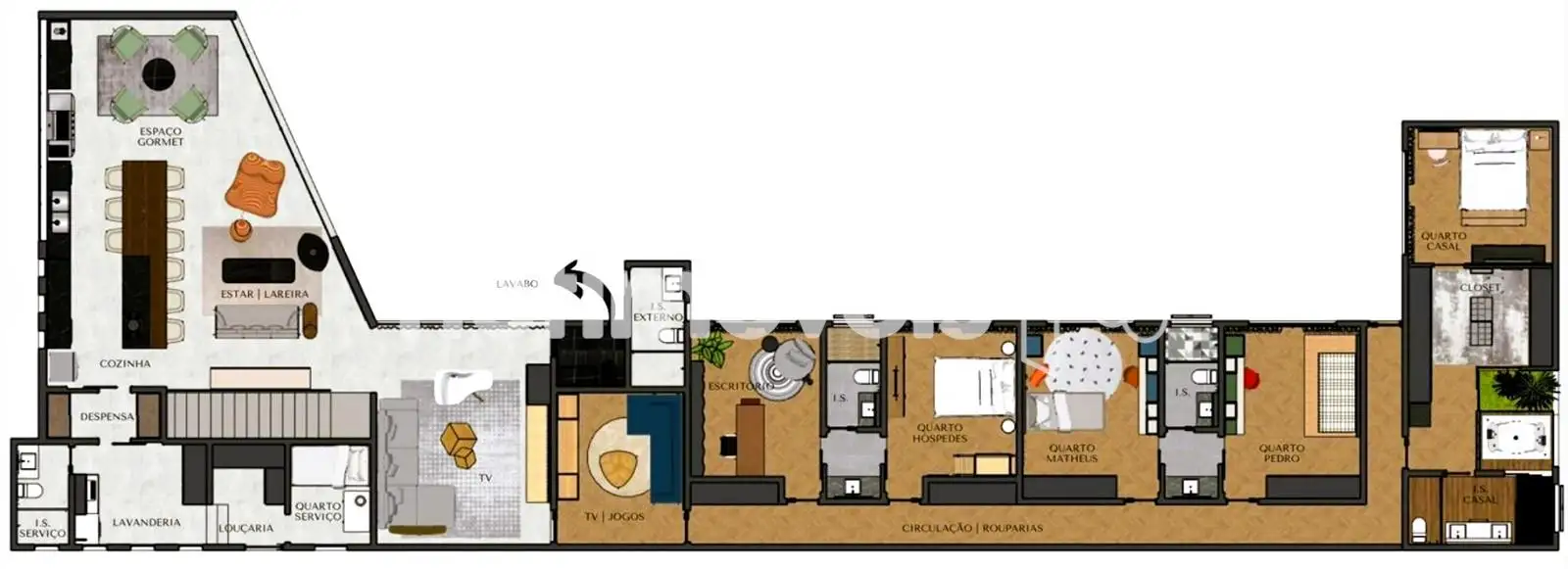 Casa de alto padrão com projeto moderno e funcional no Residencial Costa Laguna, em Alphaville Lagoa dos Ingleses, ideal para famílias que buscam conforto e qualidade de vida em um dos endereços mais desejados de Nova Lima. São 5 quartos (1 suíte máster e 4 semissuítes, além de 1 quarto reversível), sala ampla integrada a sala de TV, 5 banheiros, 1 lavabo e 3 vagas cobertas (6 vagas no total), em uma casa de 427 m² de área construída em lote de 797 m².