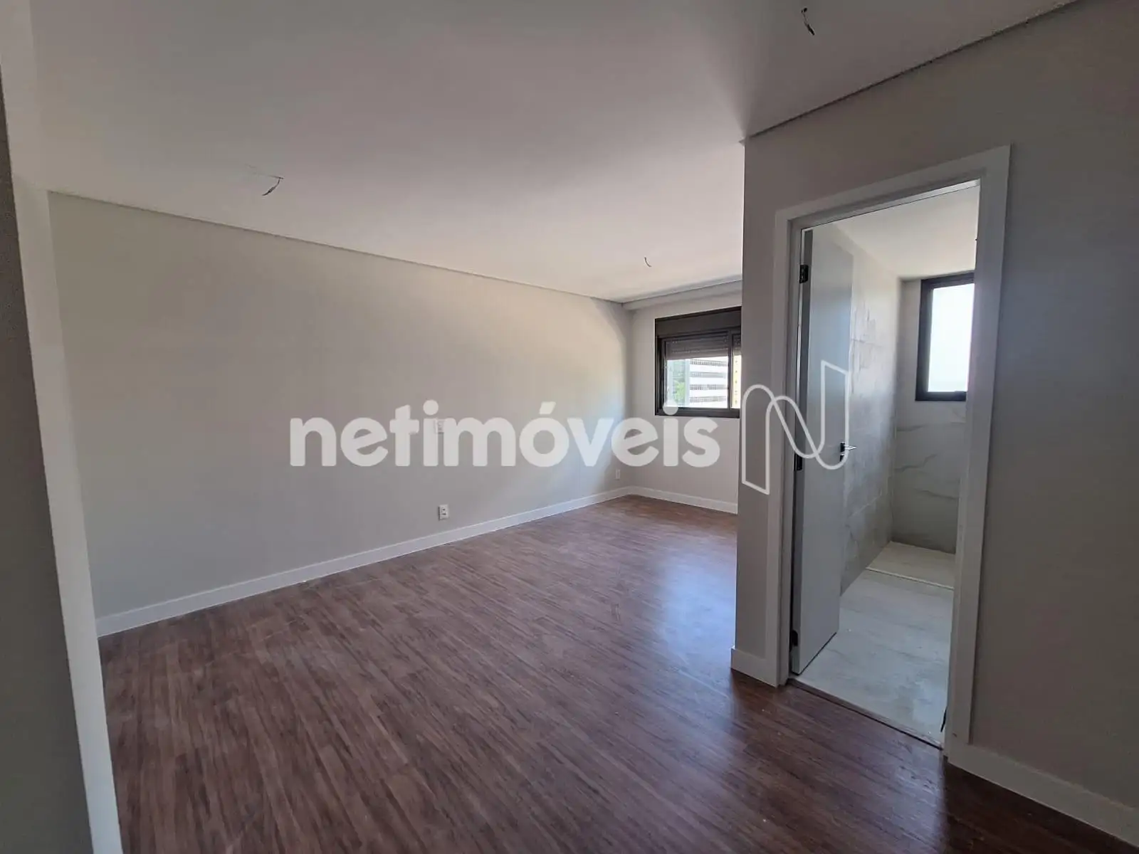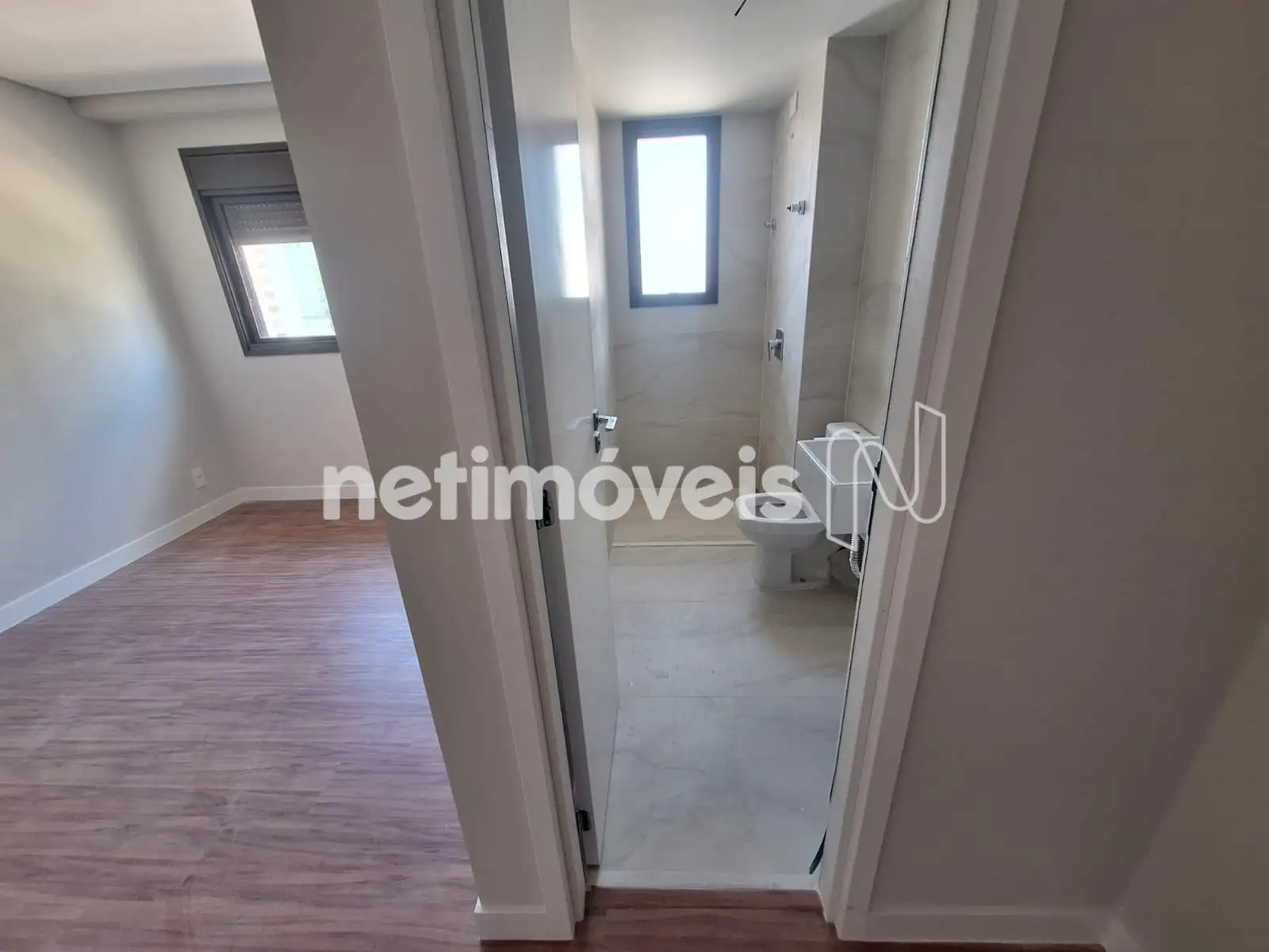 São dois quartos, uma suíte, todos com piso vinílico e janelas com venezianas. Banheiros com acabamento em porcelanato e bancadas em granito.