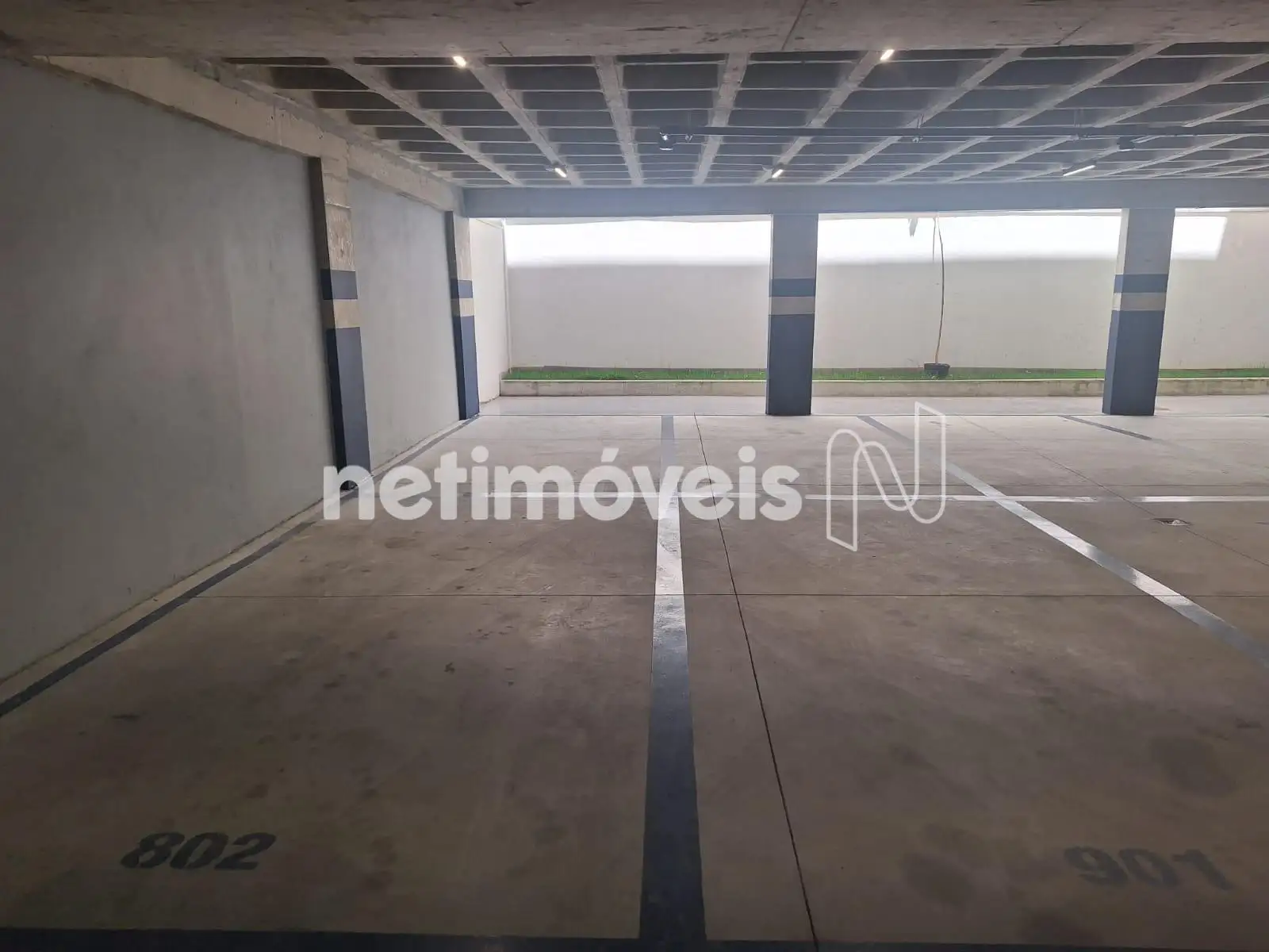 Dispõe de duas vagas de garagem em linha, cobertas e demarcadas.