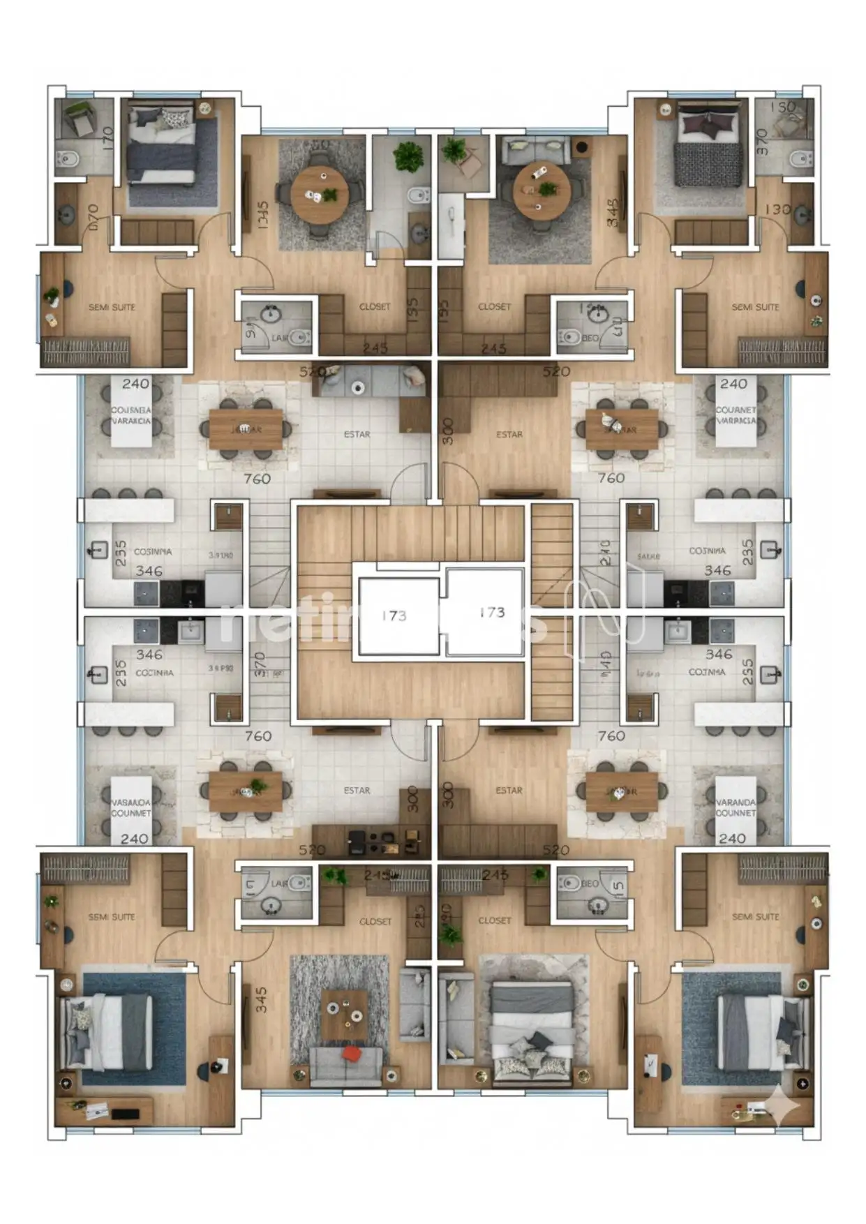 - 3 quartos com piso em vinílico, sendo 1 suíte com closet e 2 semi suítes