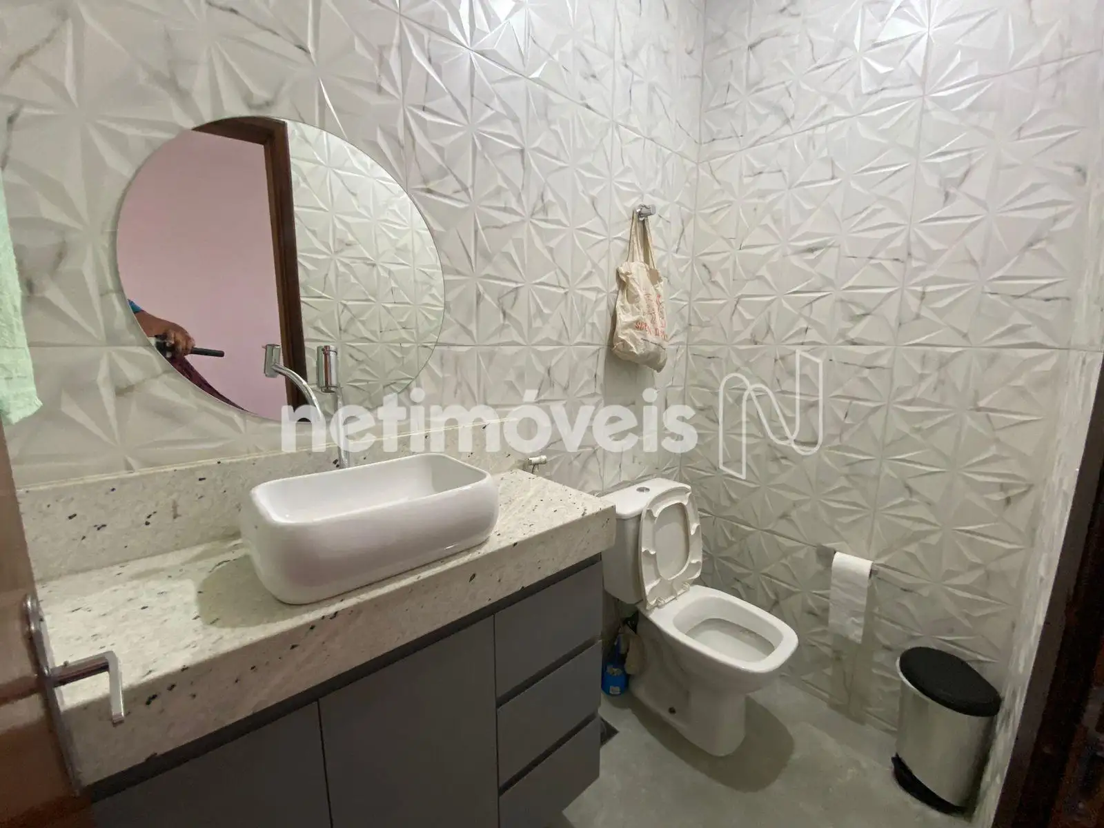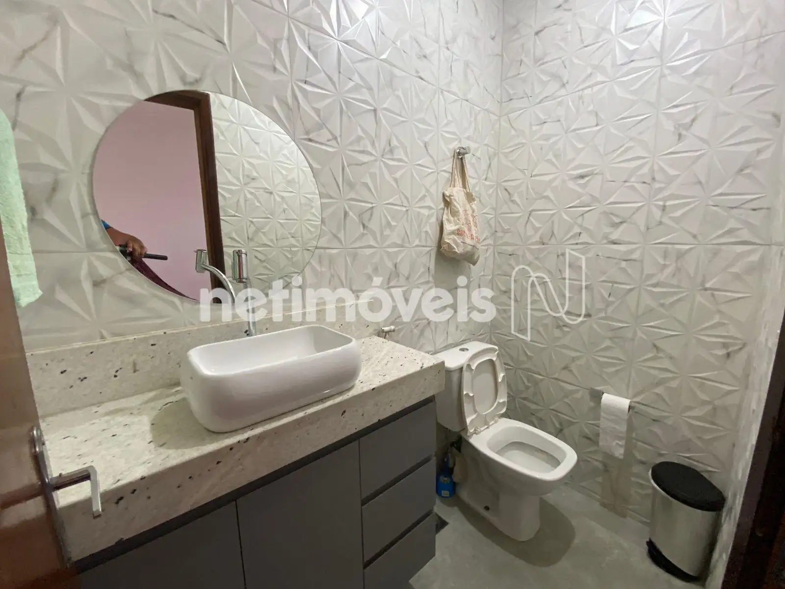 Ainda neste pavimento, o imóvel dispõe de lavabo moderno, com bancada e cuba suspensa, além de área de serviço coberta, trazendo mais praticidade.