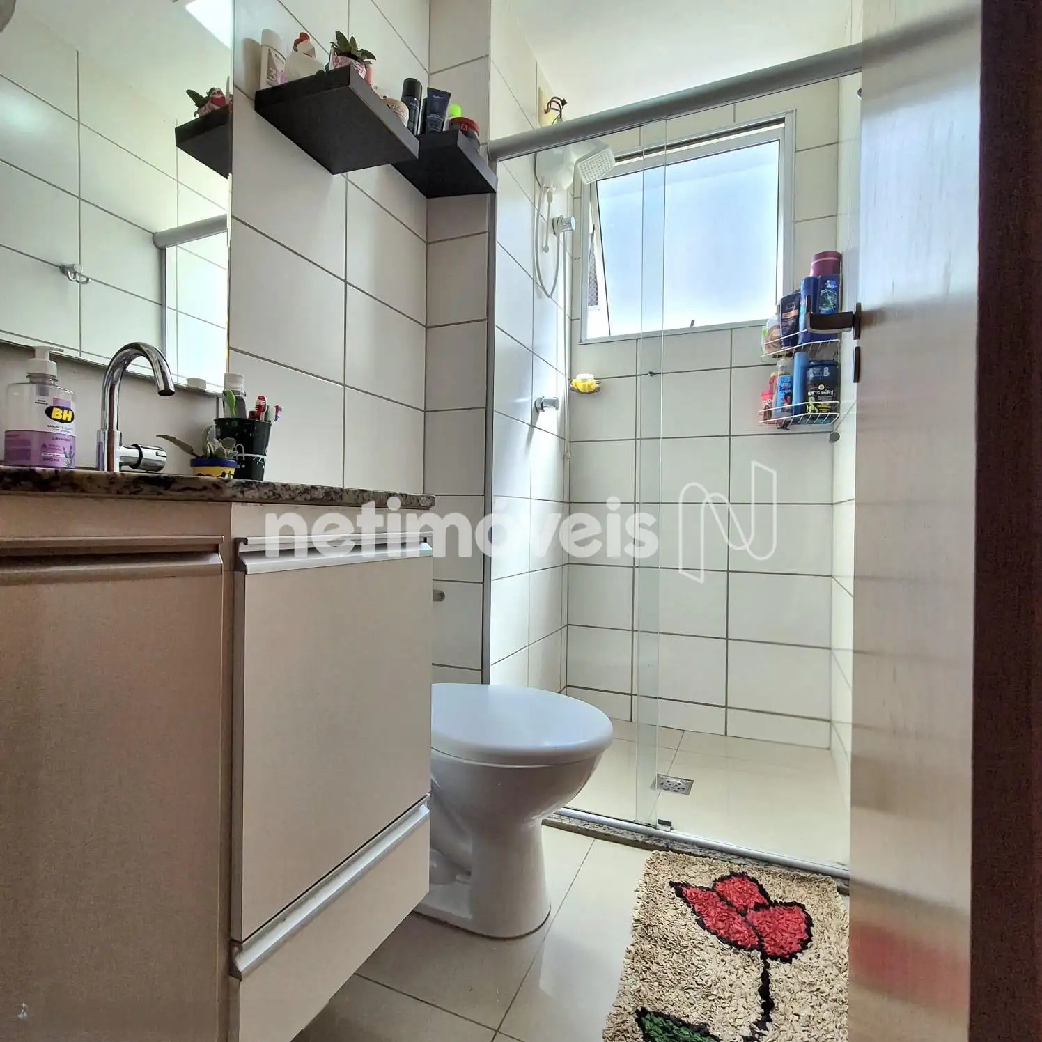 - Banheiro com armários e box em vidro temperado