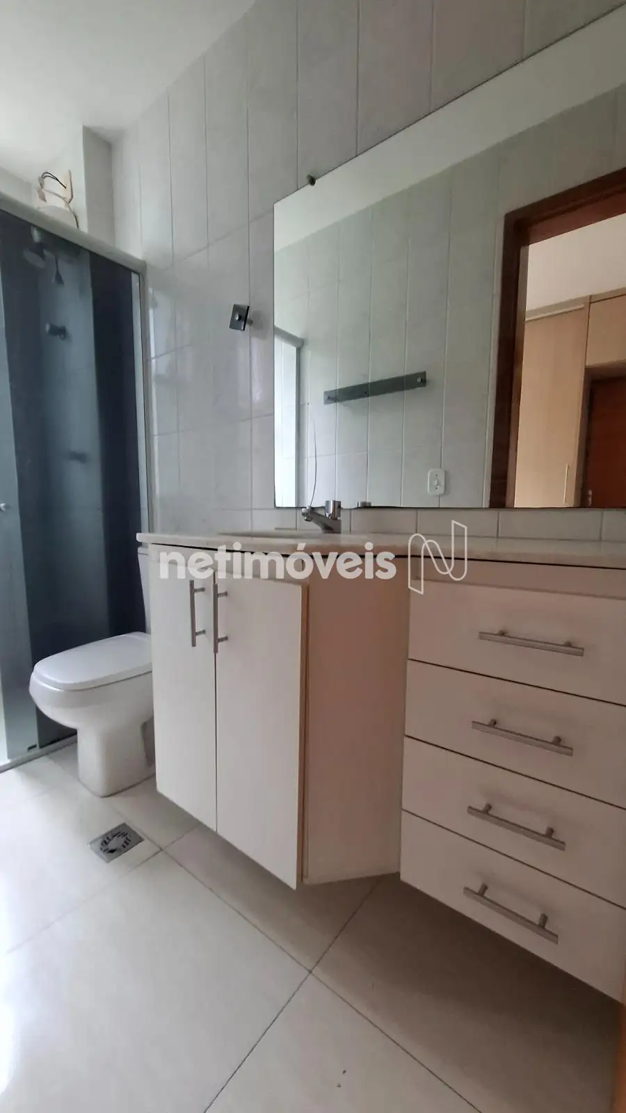 - Banheiro social completo com armário planejado, espelho e box de vidro