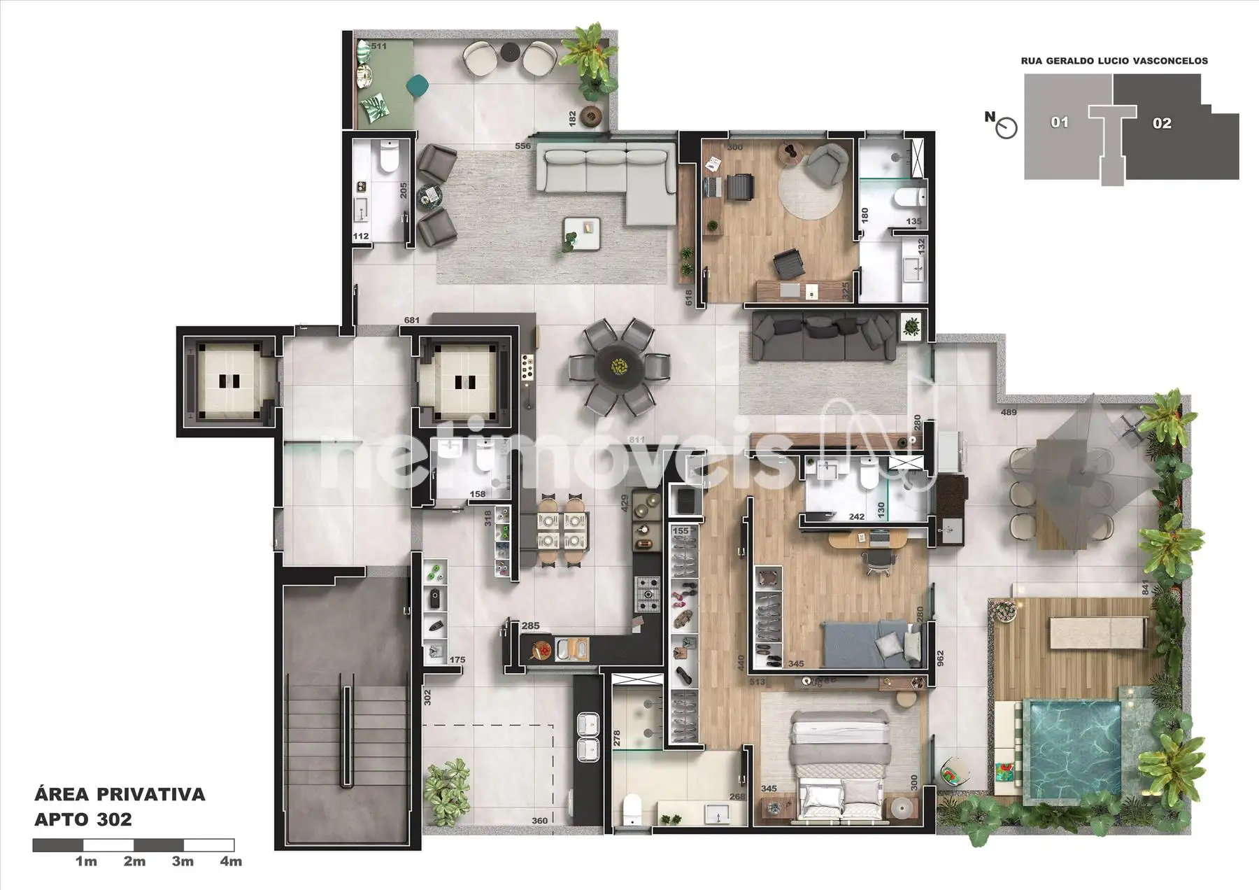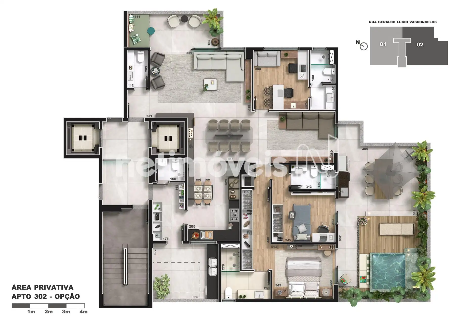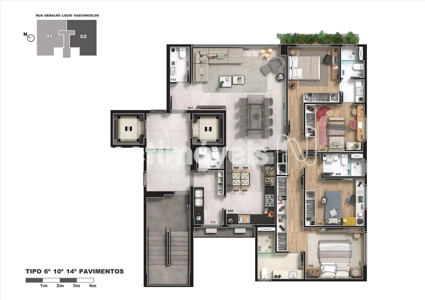 • Apartamentos Área Privativa com 158m² a 203m²