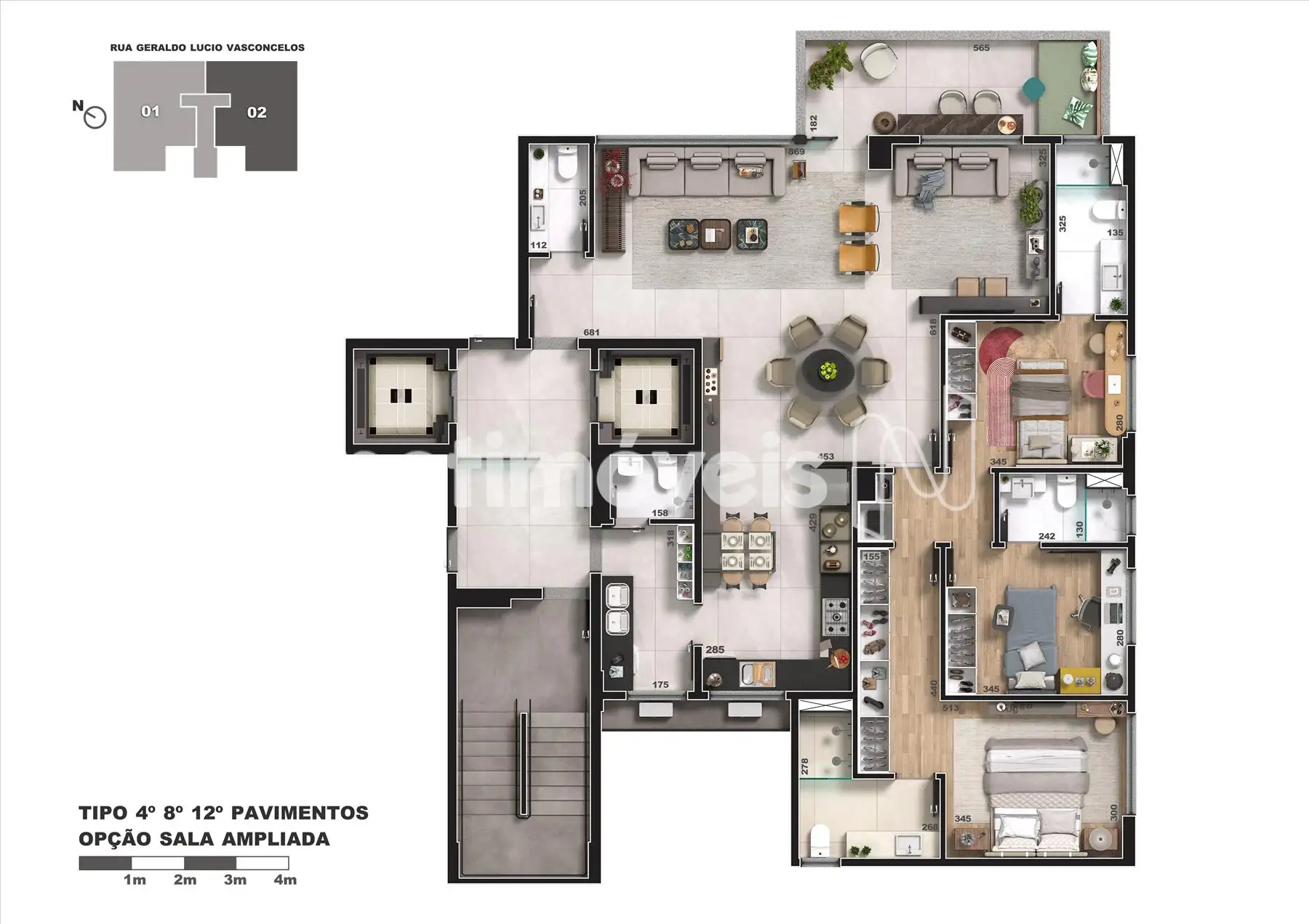 • Apartamentos 4 quartos sendo 2 suítes e 2 semi-suítes