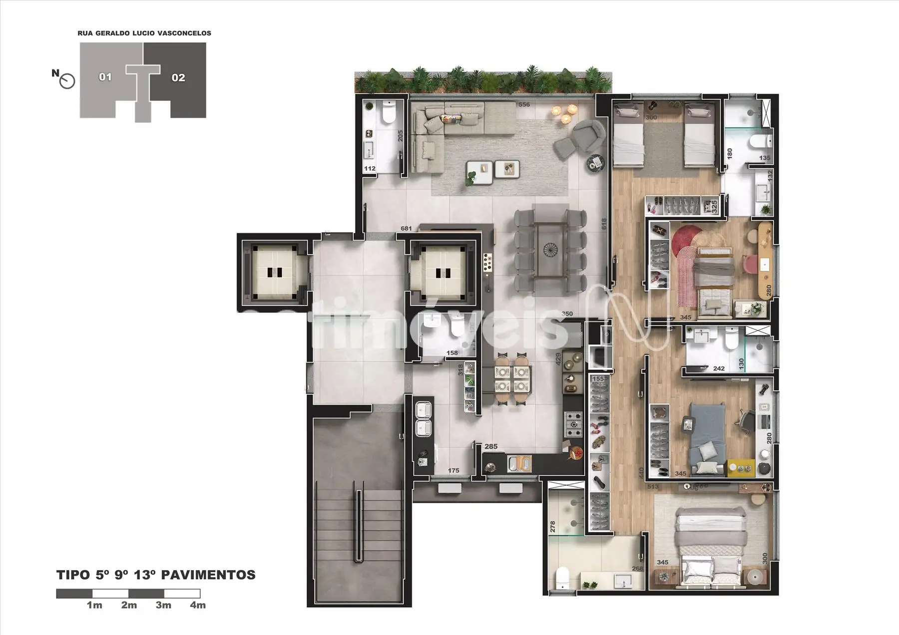 • Apartamentos Tipo amplos com 140m² a 150m²