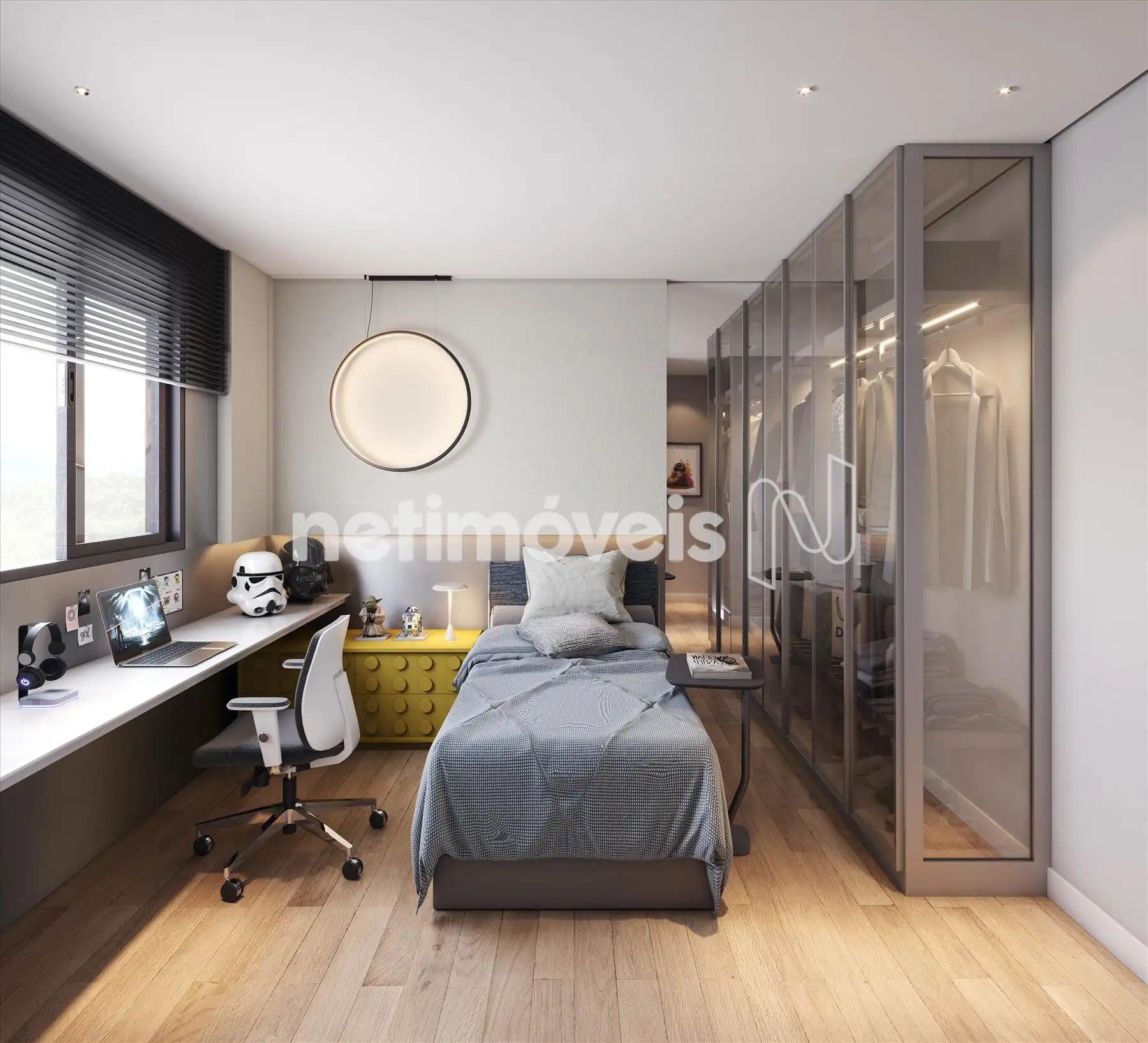 • Janela com veneziana integrada com ponto elétrico para automatização (apenas tubulação)