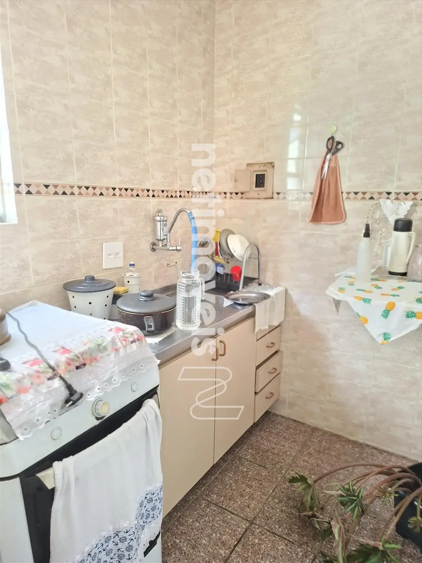- Cozinha conjugada com área de serviço, piso e parede em cerâmica, pia com bancada em granito;