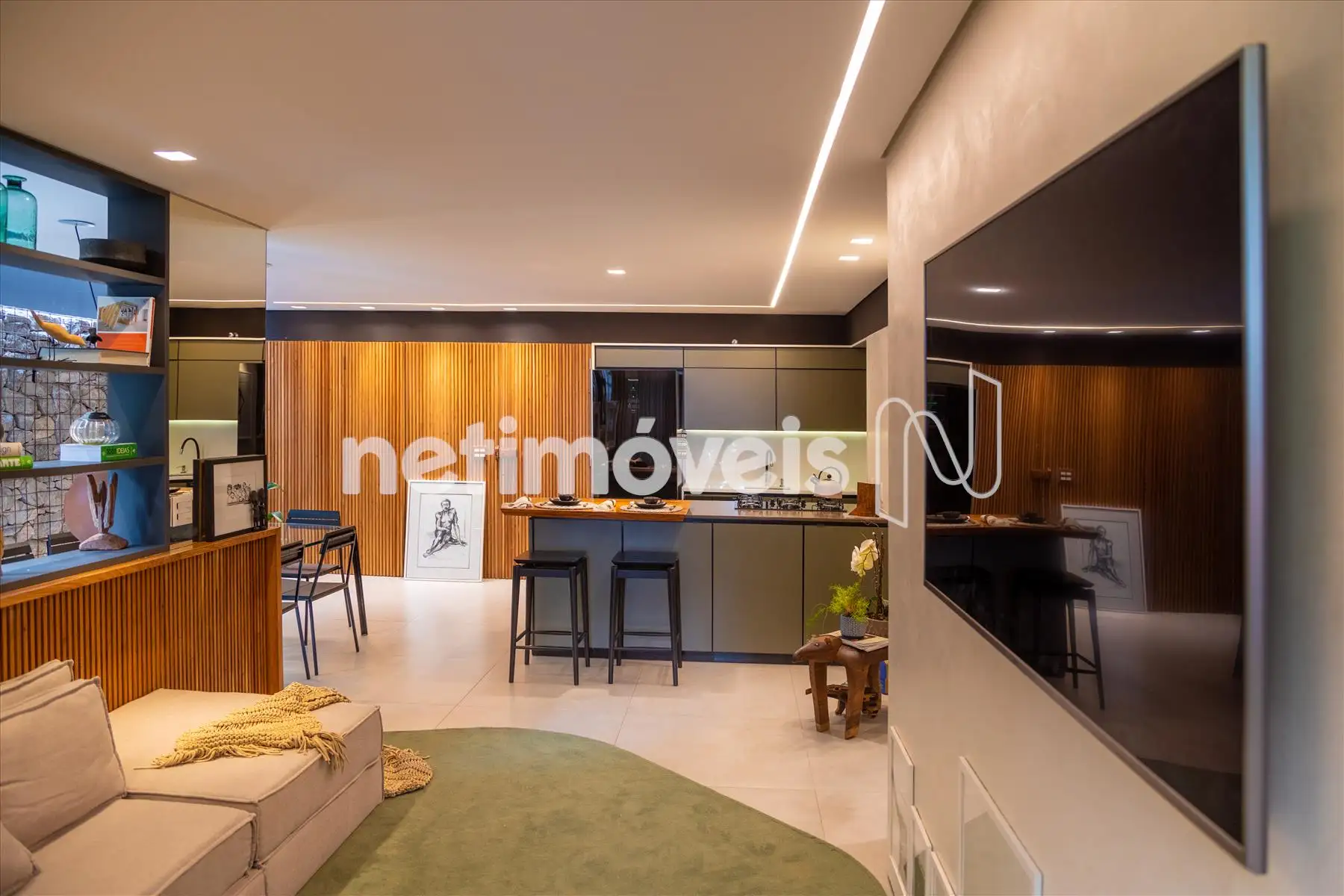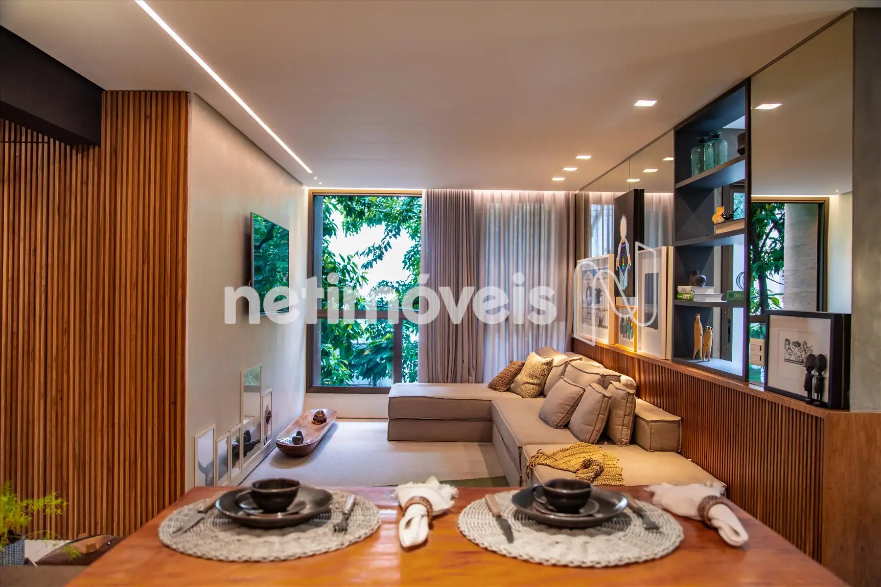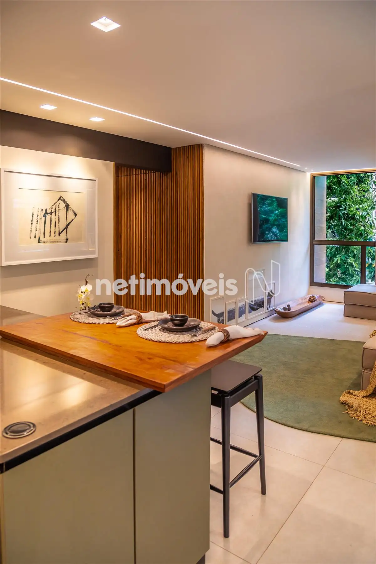 - Os ambientes são climatizados, com ar-condicionado instalado na sala e em uma das suítes. O projeto de interiores valoriza a estética e o aconchego, com painéis ripados em madeira natural e marcenaria planejada de excelente qualidade, proporcionando organização e aproveitamento inteligente dos espaços.