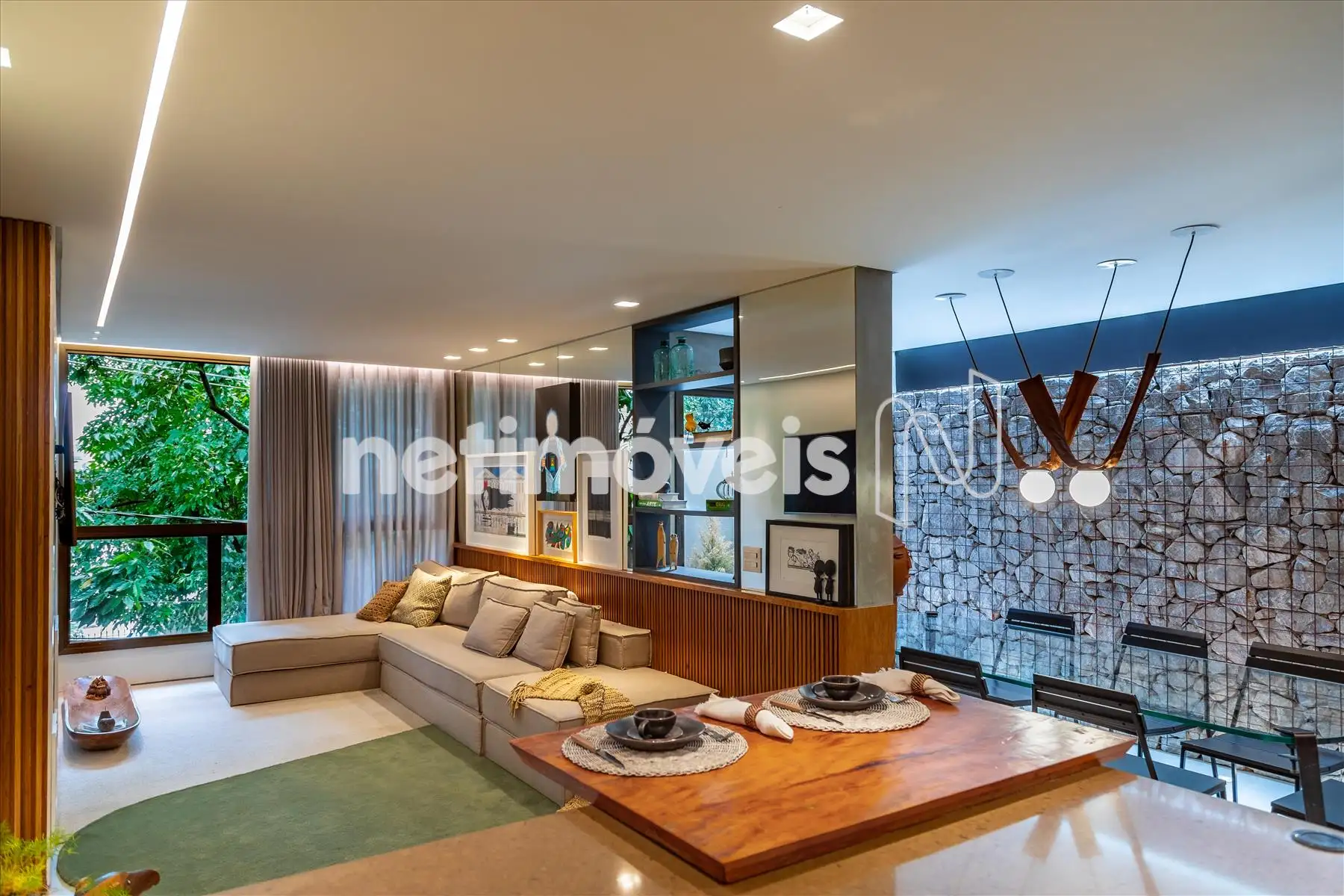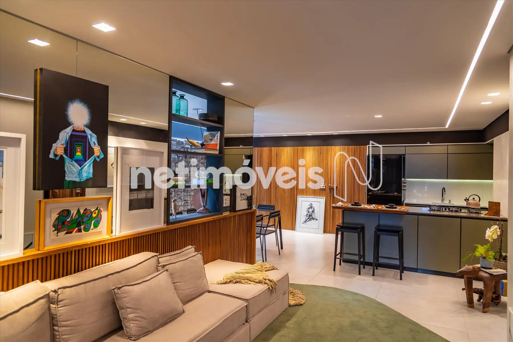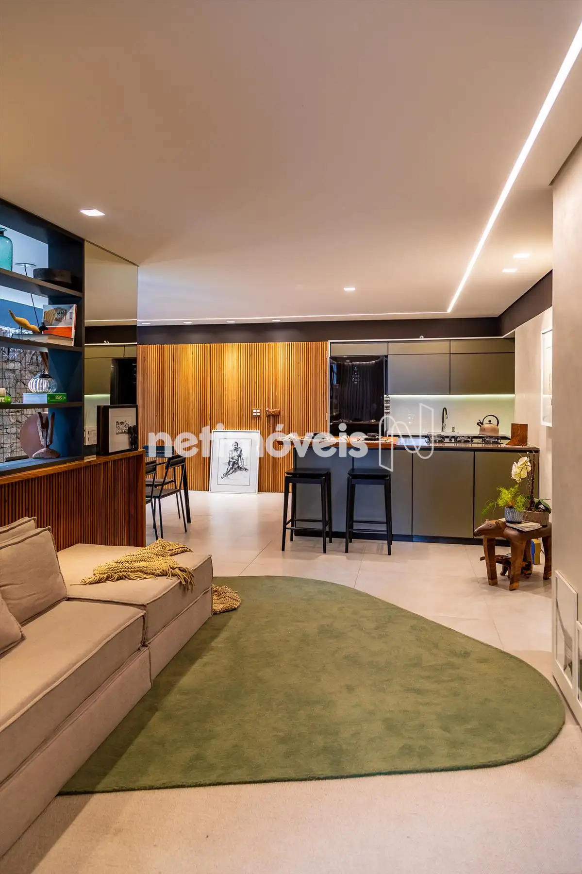 - Os ambientes são climatizados, com ar-condicionado instalado na sala e em uma das suítes. O projeto de interiores valoriza a estética e o aconchego, com painéis ripados em madeira natural e marcenaria planejada de excelente qualidade, proporcionando organização e aproveitamento inteligente dos espaços.