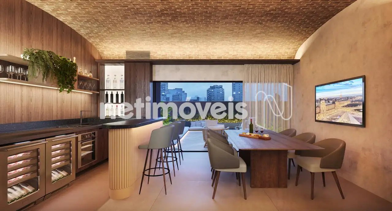 Sala, com 1 lavabo, integrada a varanda e ao terraço com espaço gourmet e piscina.