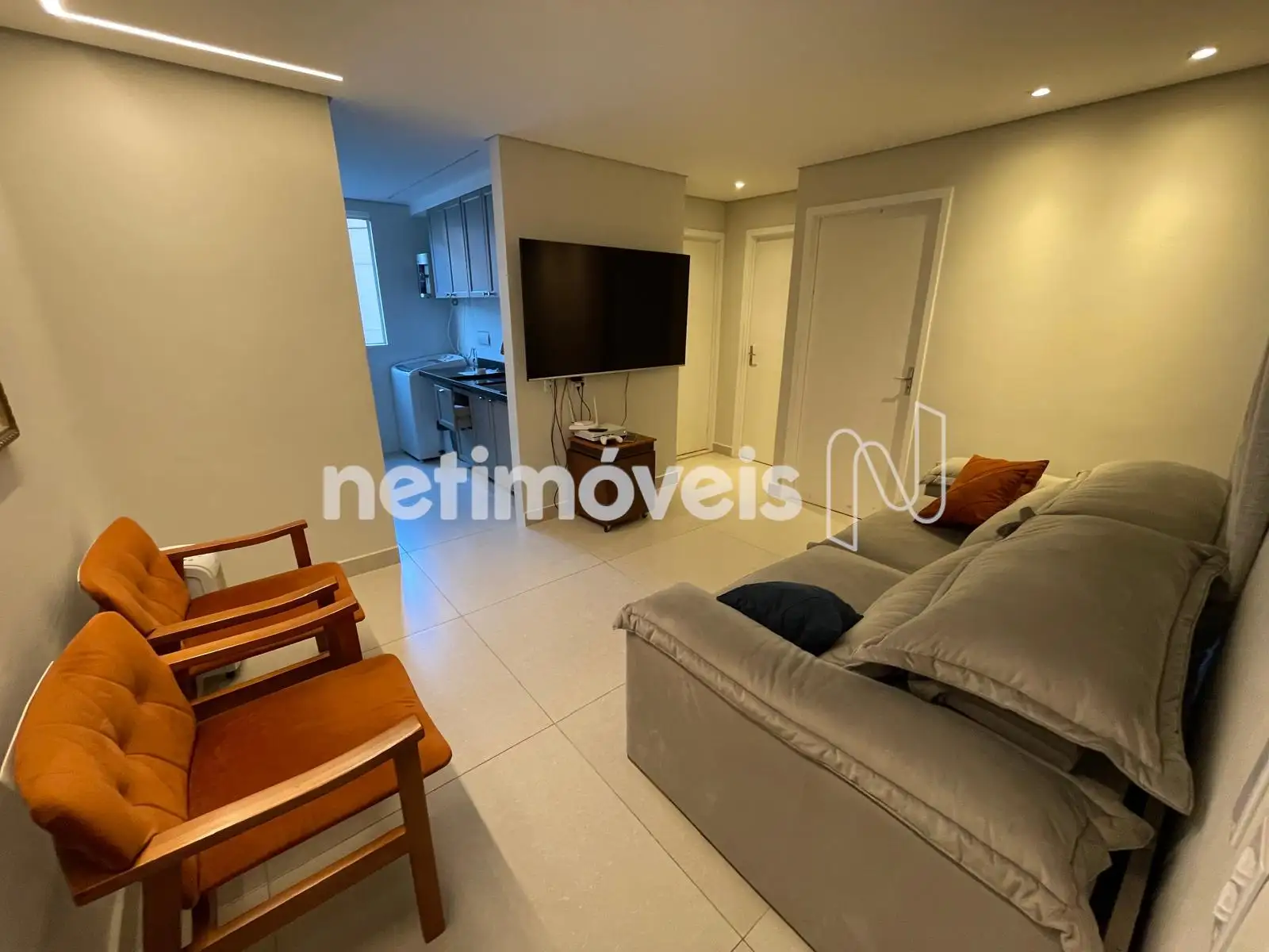 Sala com porcelanato, teto rebaixado;