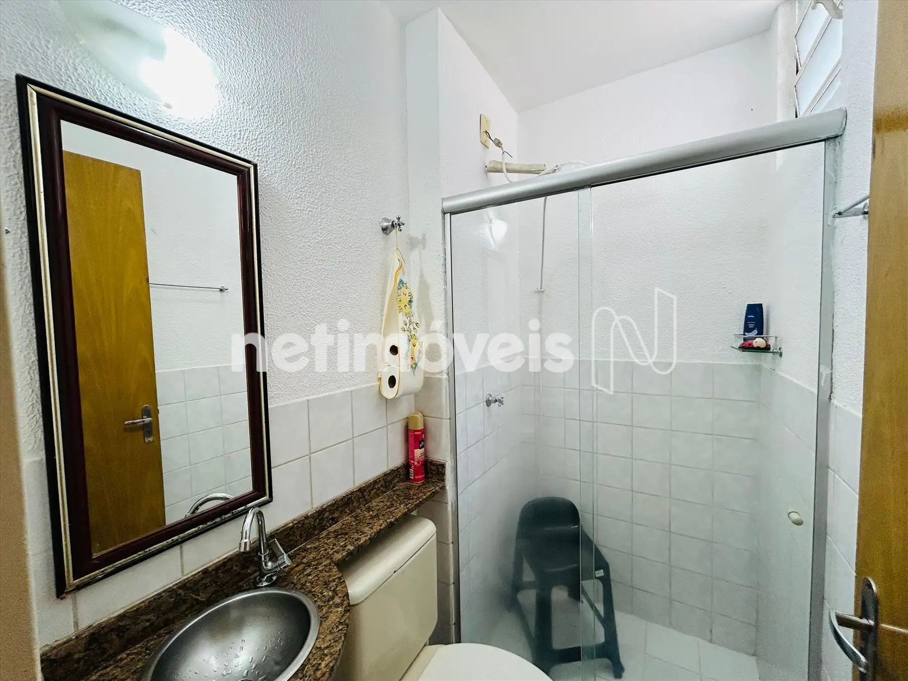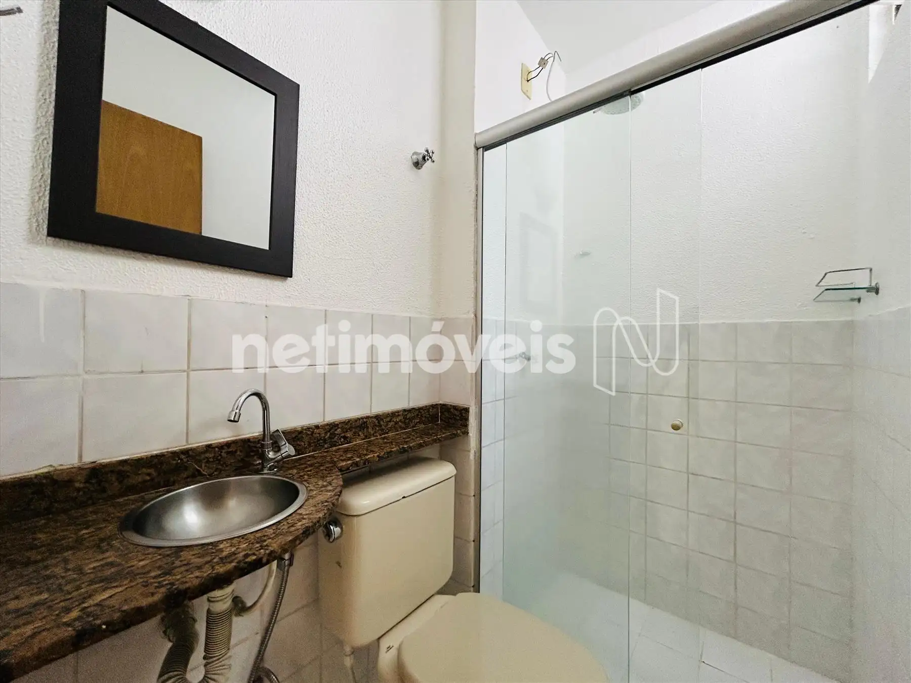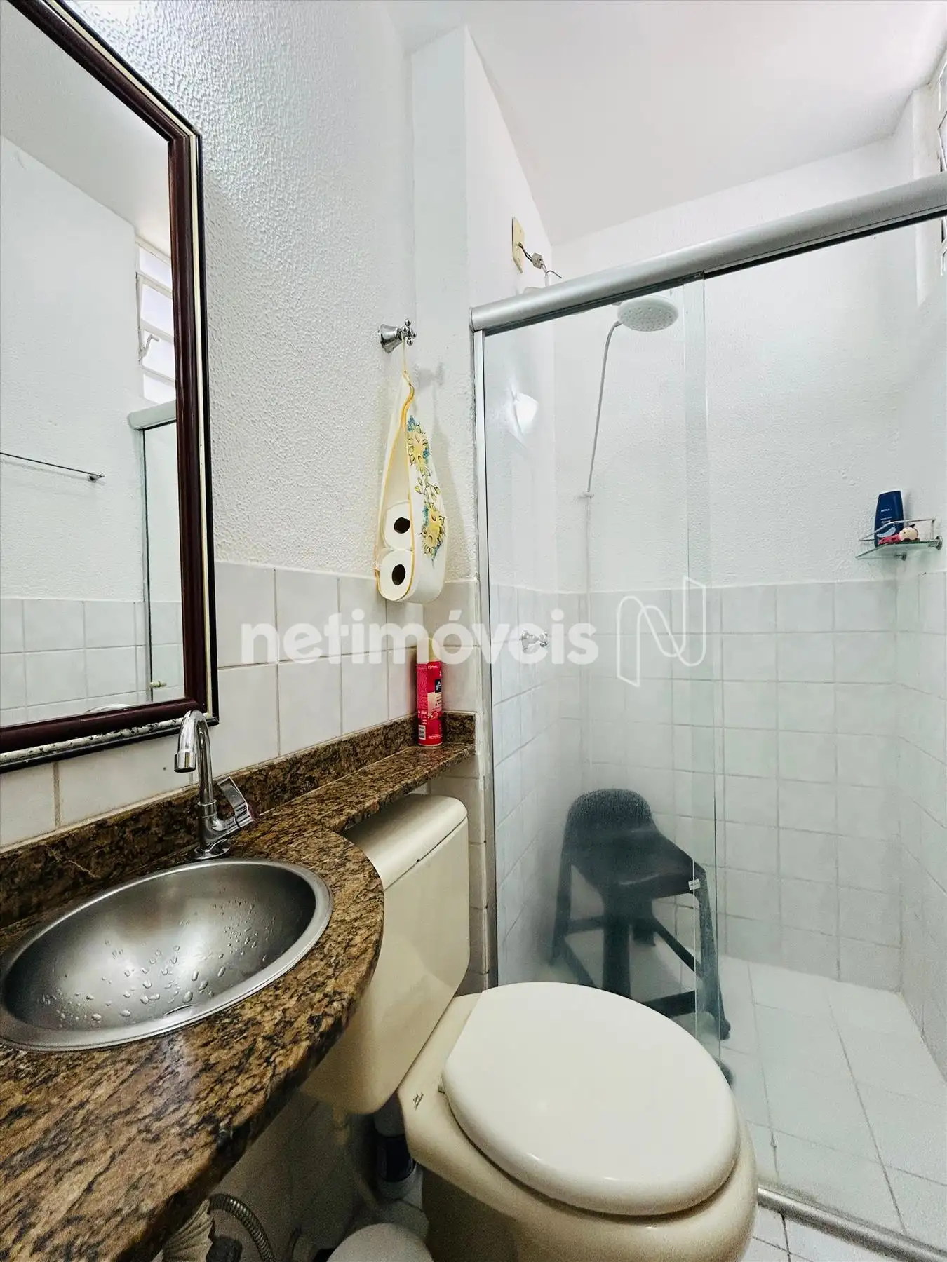 Banho com box blindex, bancada em granito.