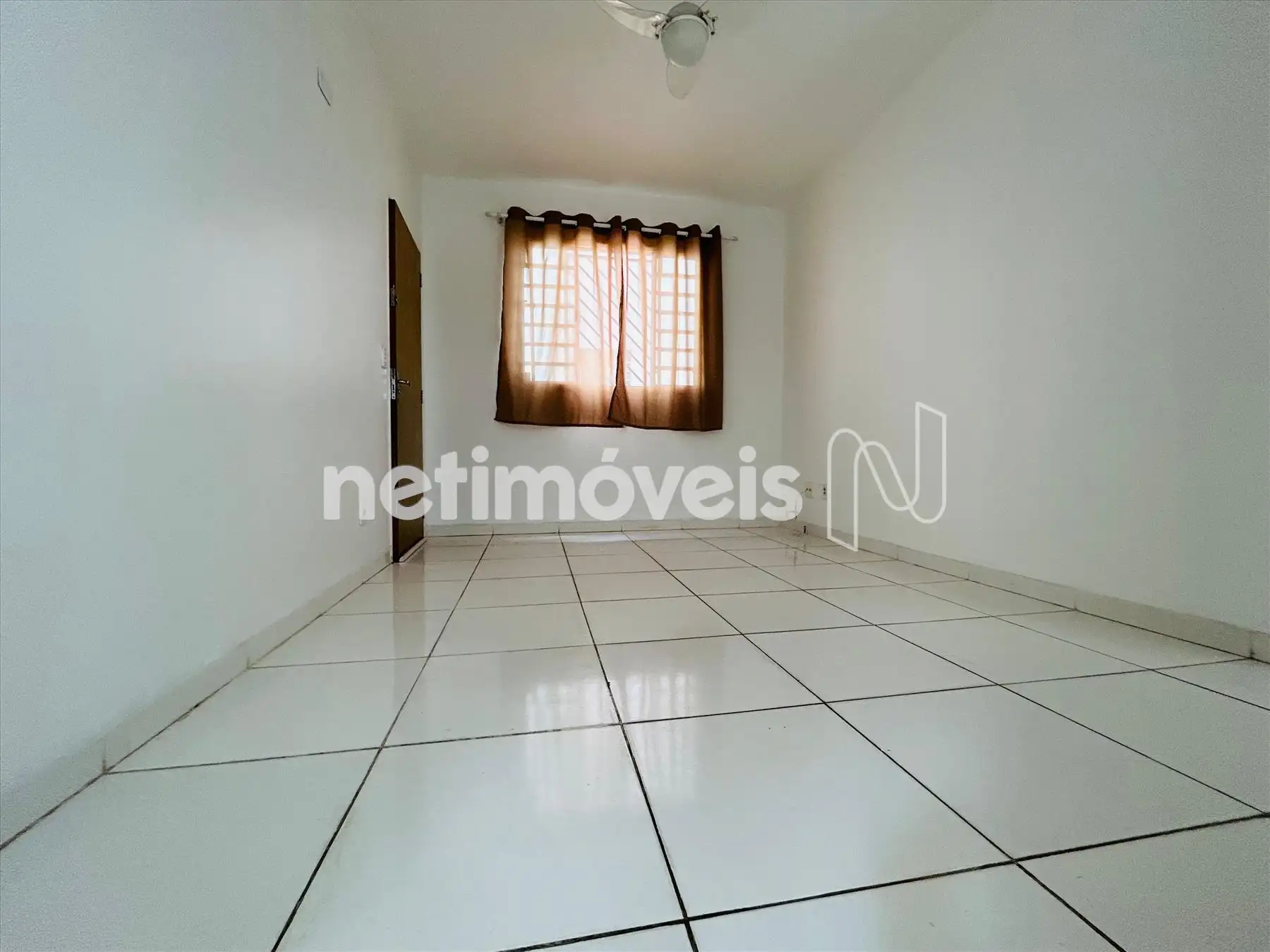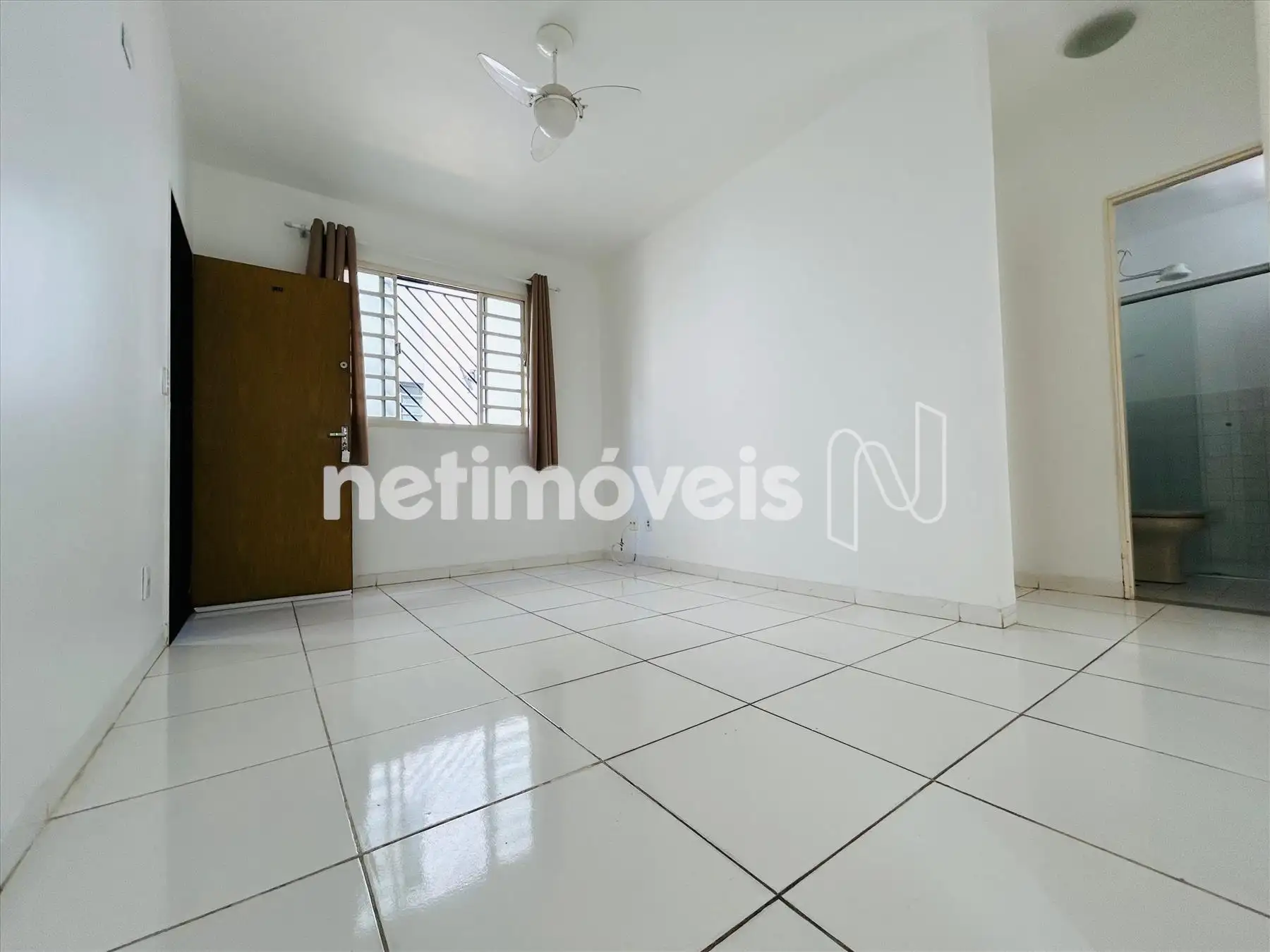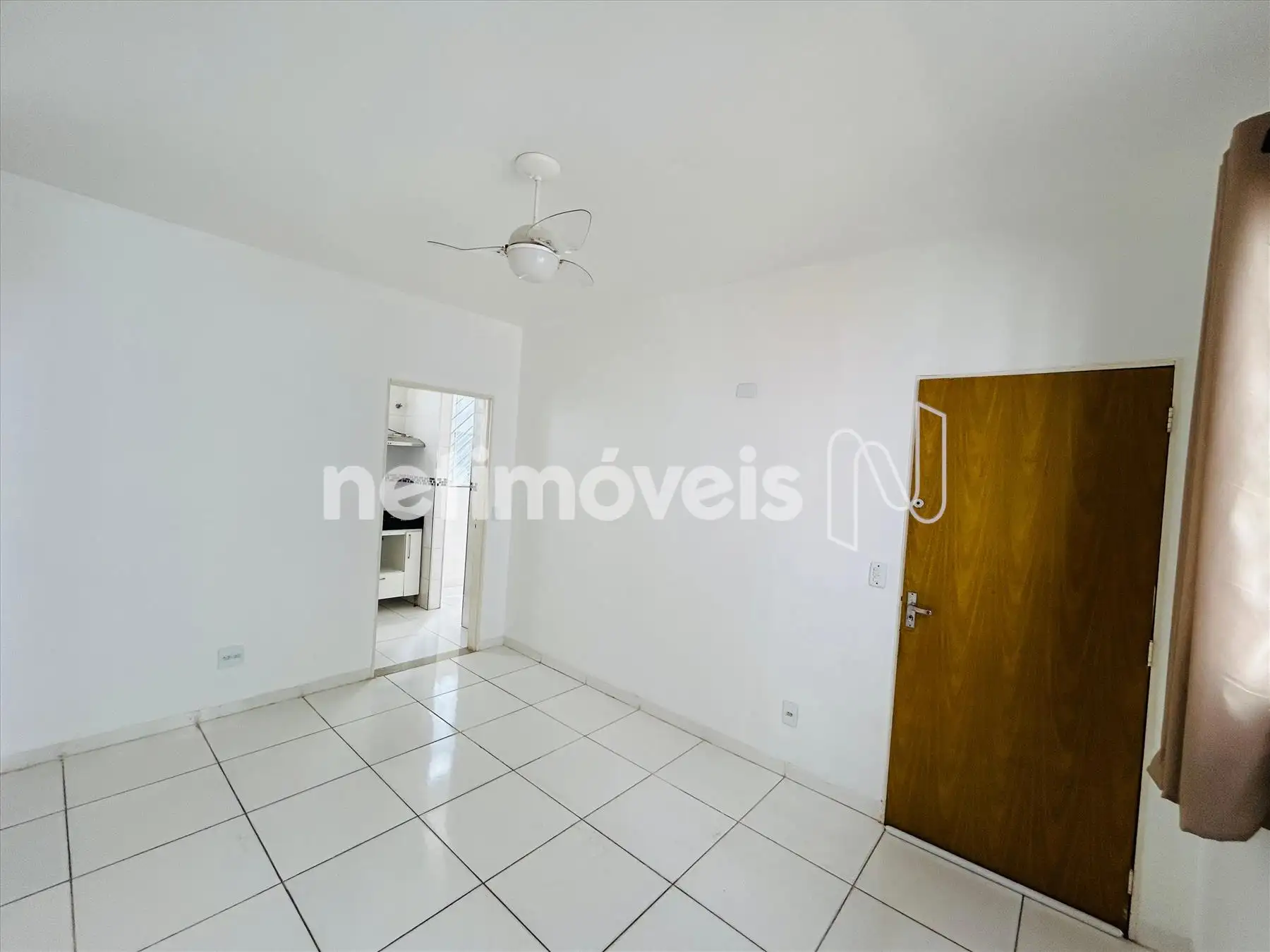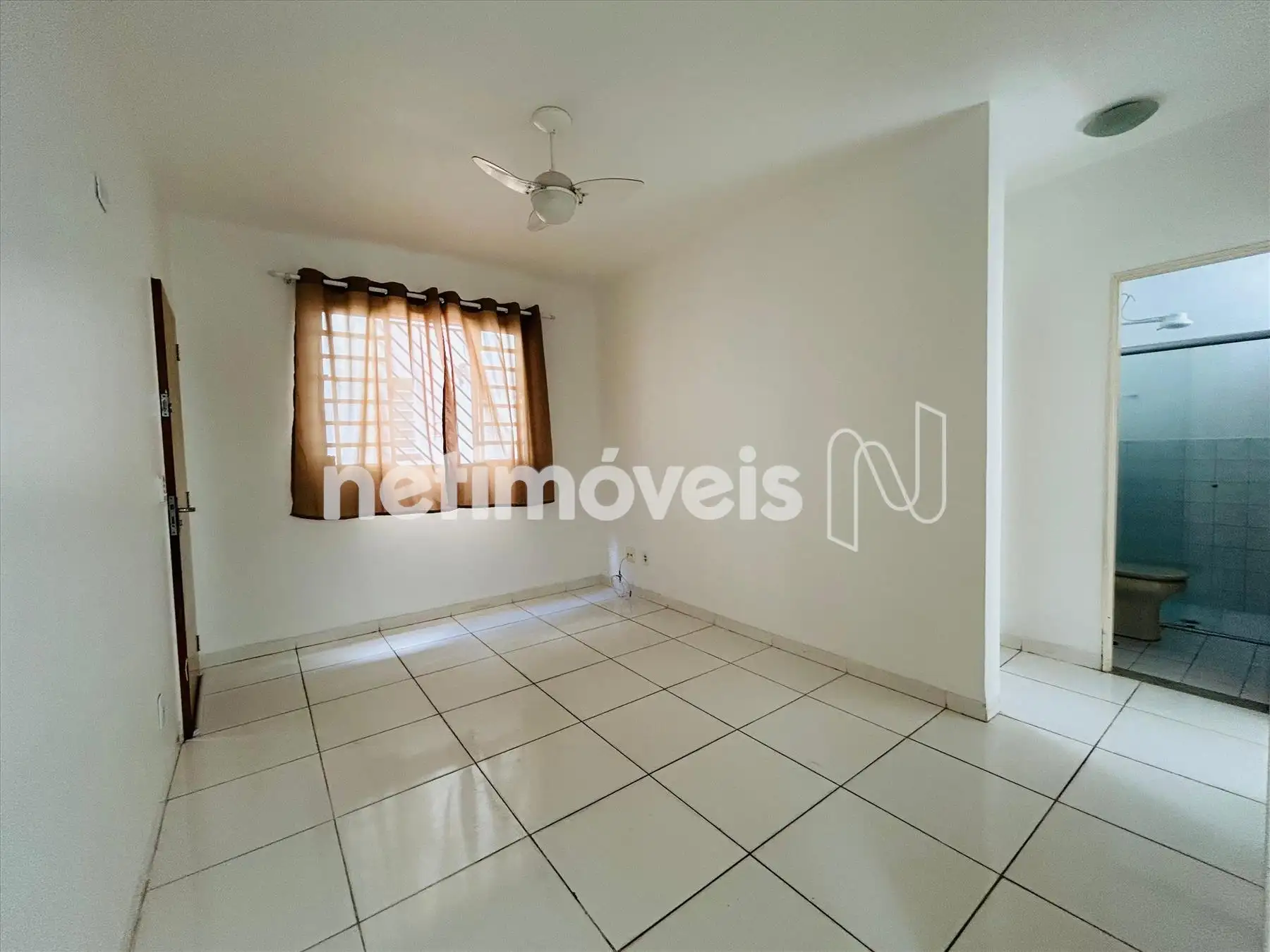 Sala ampla com piso em cerâmica com ventilador de teto