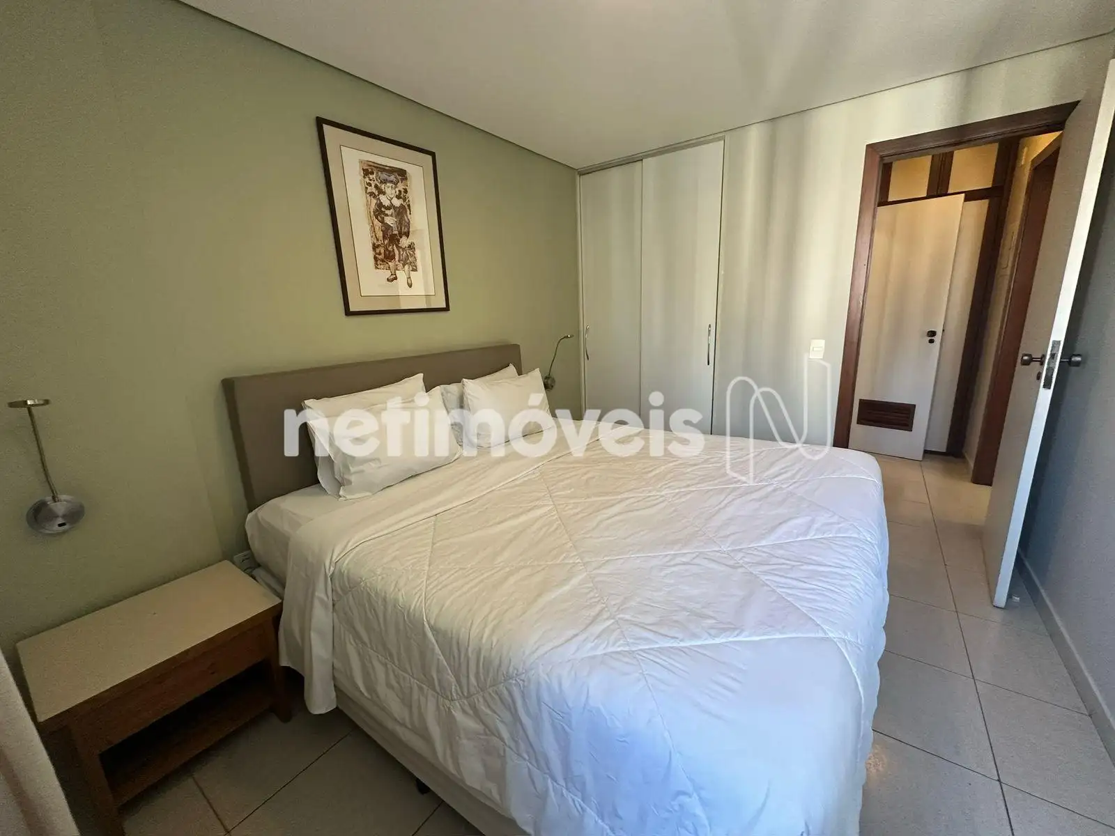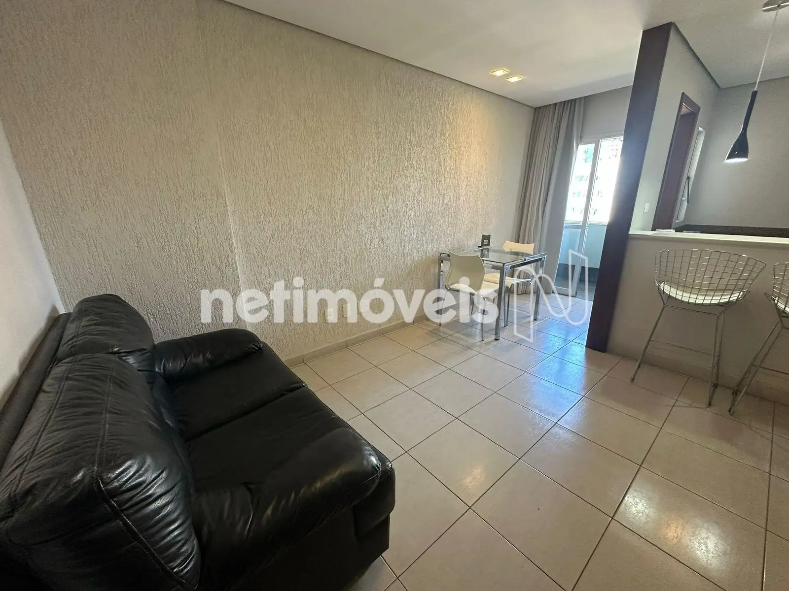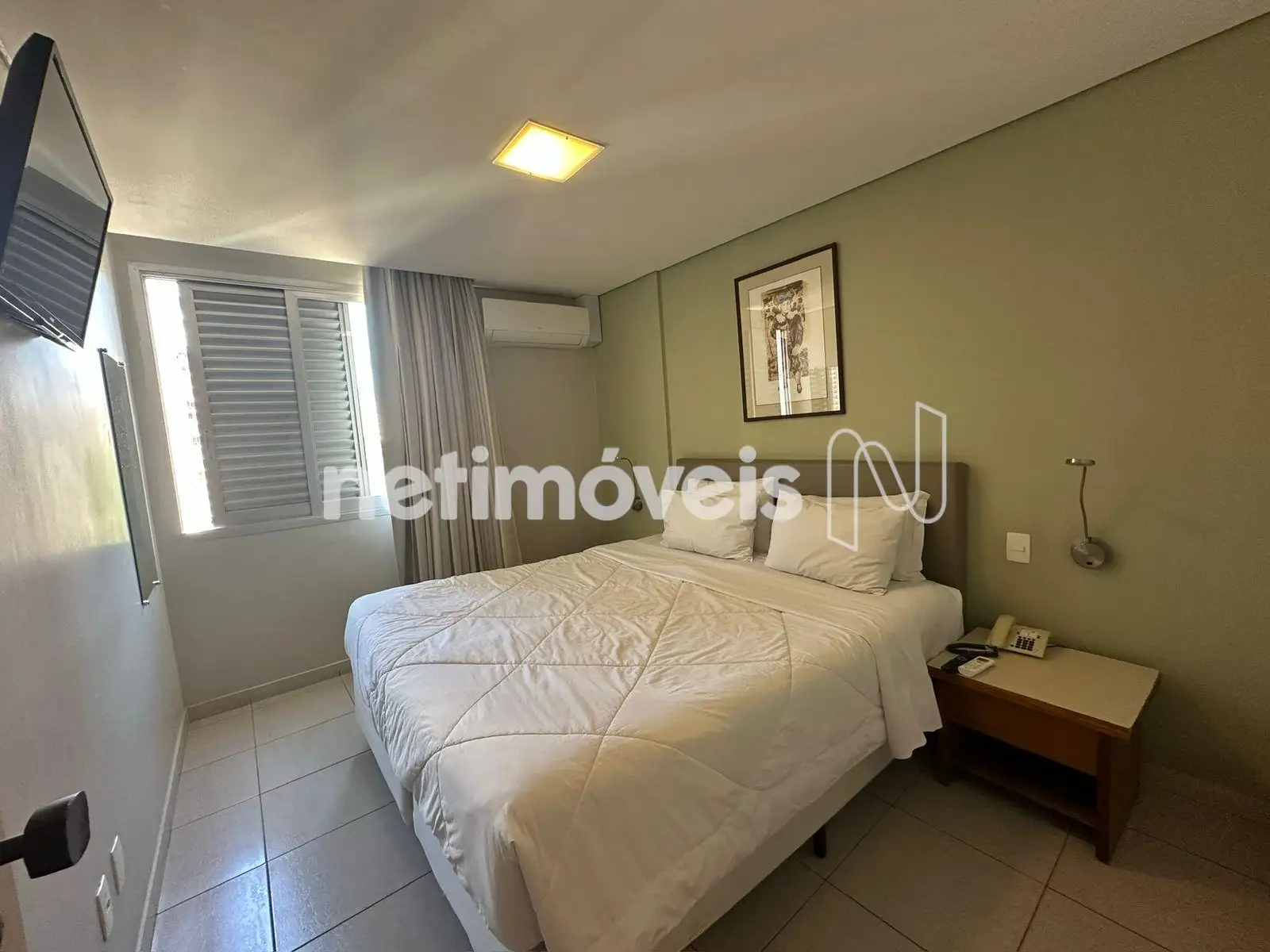 O apartamento tem aproximadamente 35m², boa circulação de ar e luz natural. O imóvel está mobiliado, ar condicionado, eletrodomésticos do dia a dia, cama, sofá, cadeiras, aparelho de TV e frigobar. Armarios no quarto, banheiro e cozinha