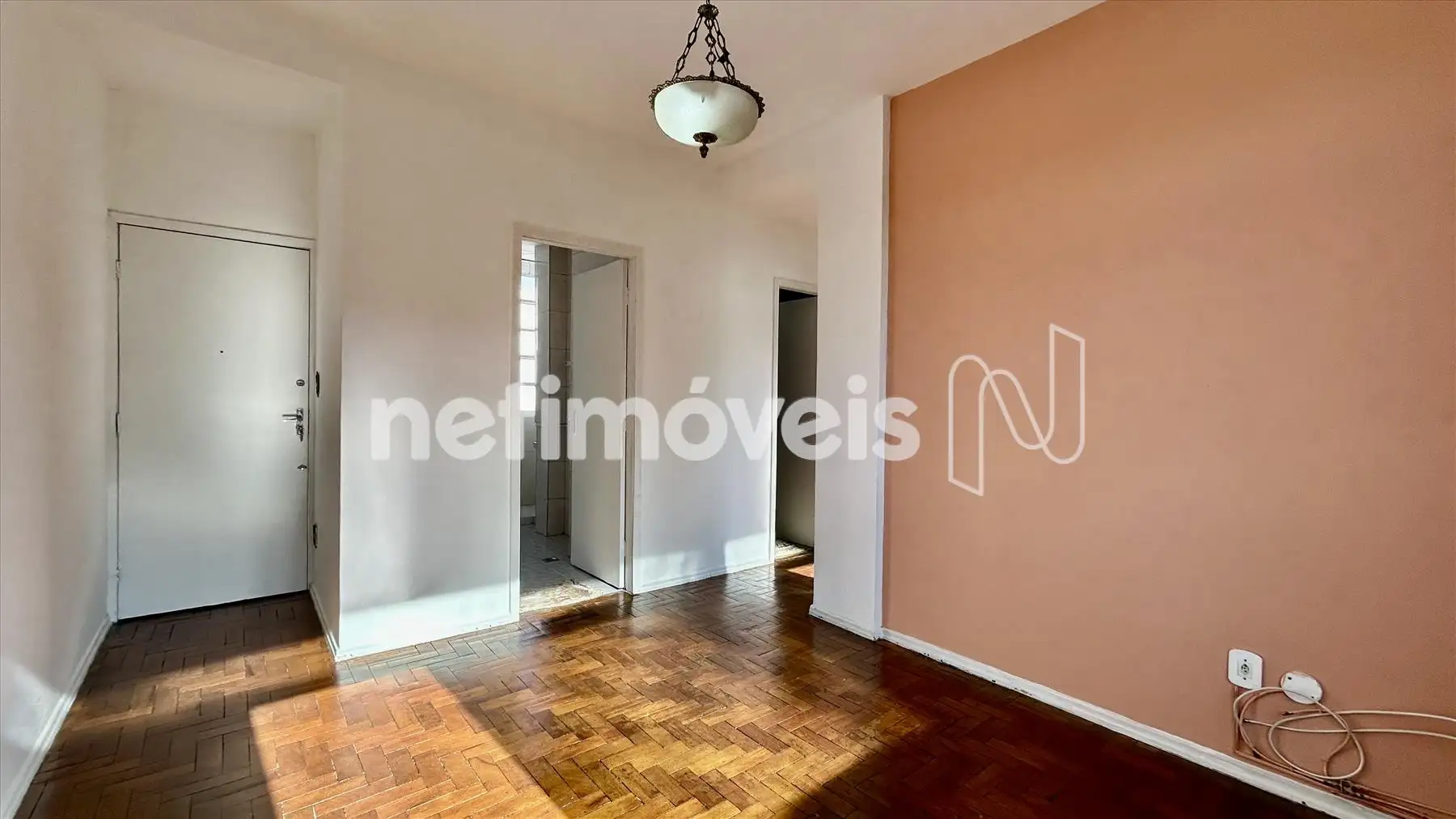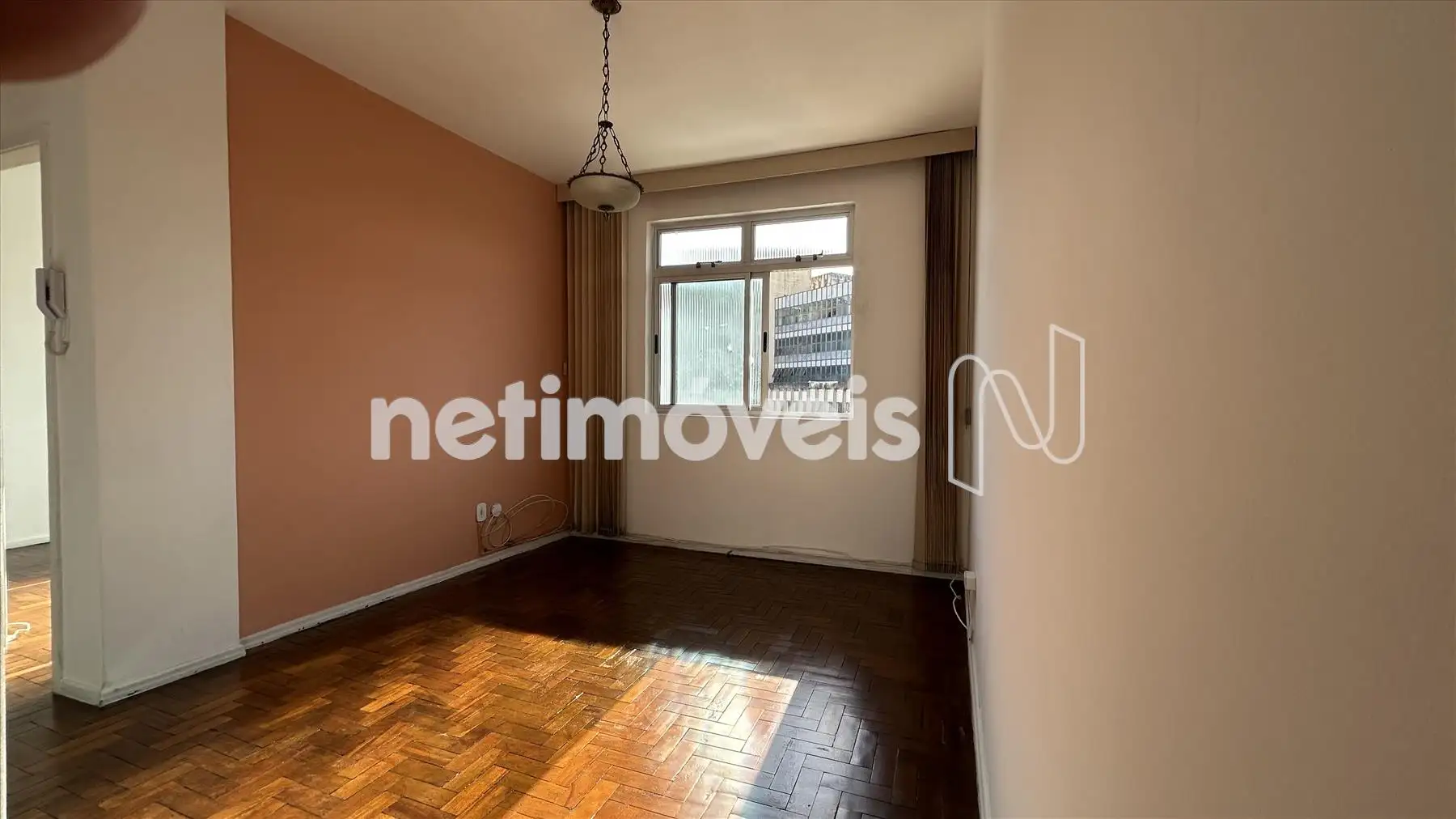 Sala 2 ambientes com piso em taco sintecado novo;