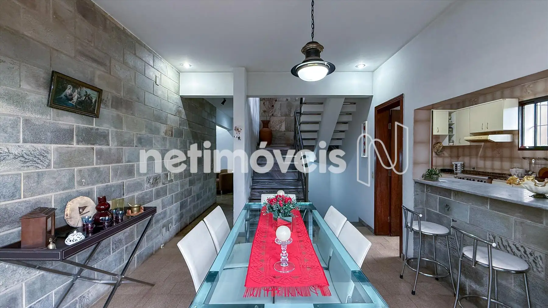 - sala de jantar conjugada com uma cozinha imensa,