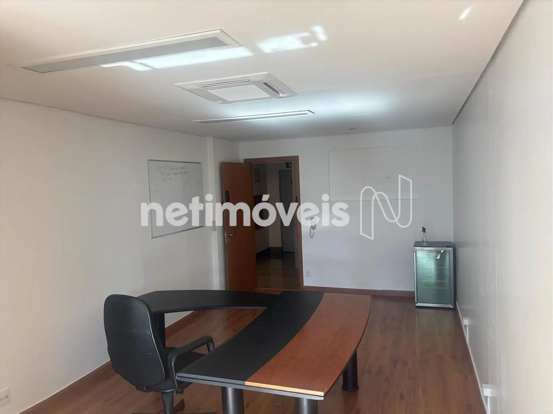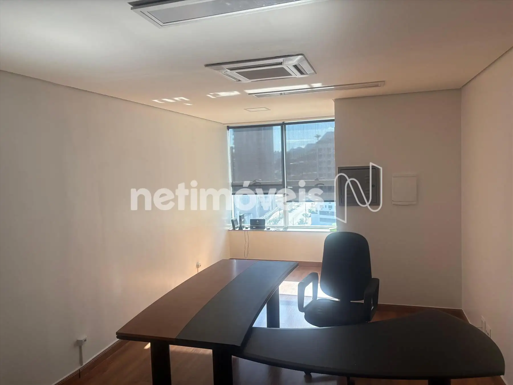 Sala 907 com 25,25m², piso laminado, teto gesso com iluminação, banho decorado piso e bancada em granito com armários. CHAVES É Senha.