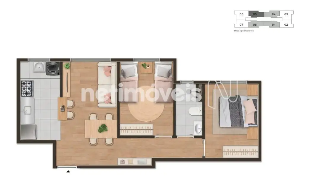 02 quartos;