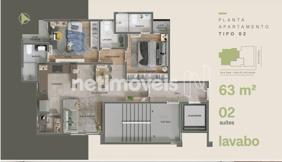 Excelente apartamento com 62 m², ideal para quem busca conforto, praticidade e um projeto moderno em uma das regiões mais valorizadas.