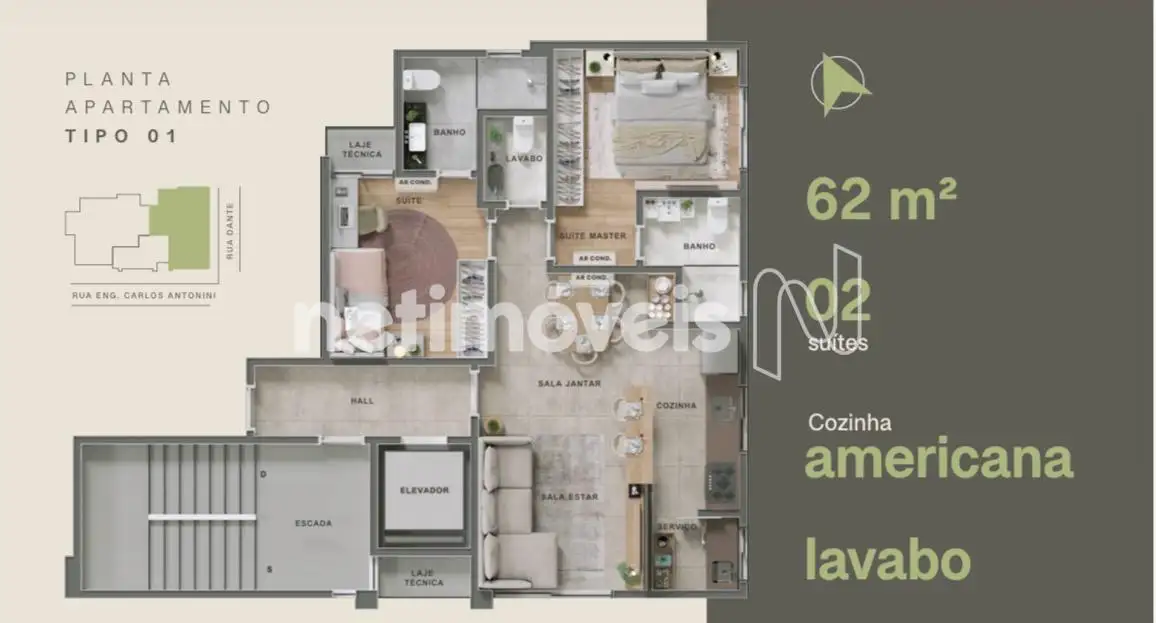 Excelente apartamento com 62 m², ideal para quem busca conforto, praticidade e um projeto moderno em uma das regiões mais valorizadas.
