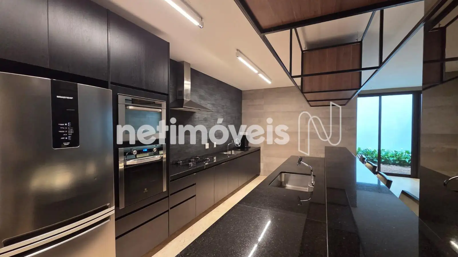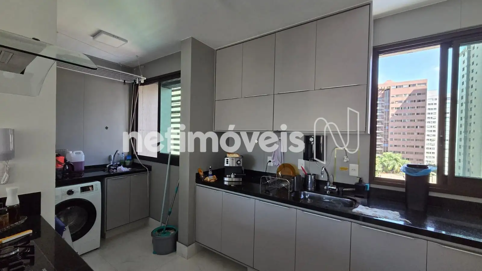 Cozinha americada com bancada de granito, armários planejados, fogão e coifa embutida, torre quente, lavanderia.