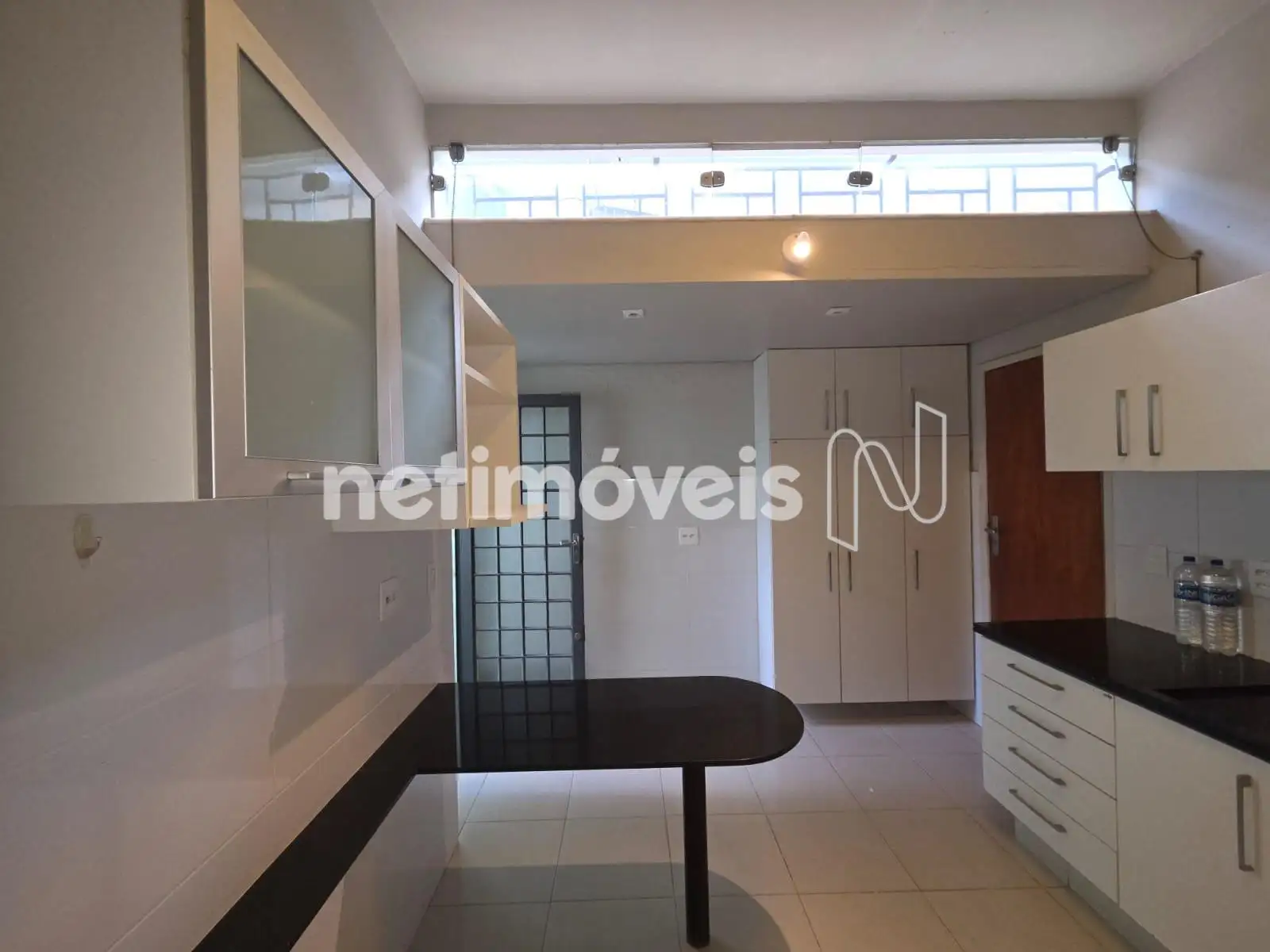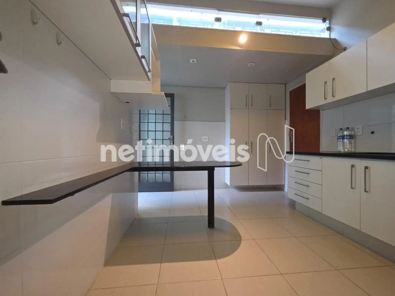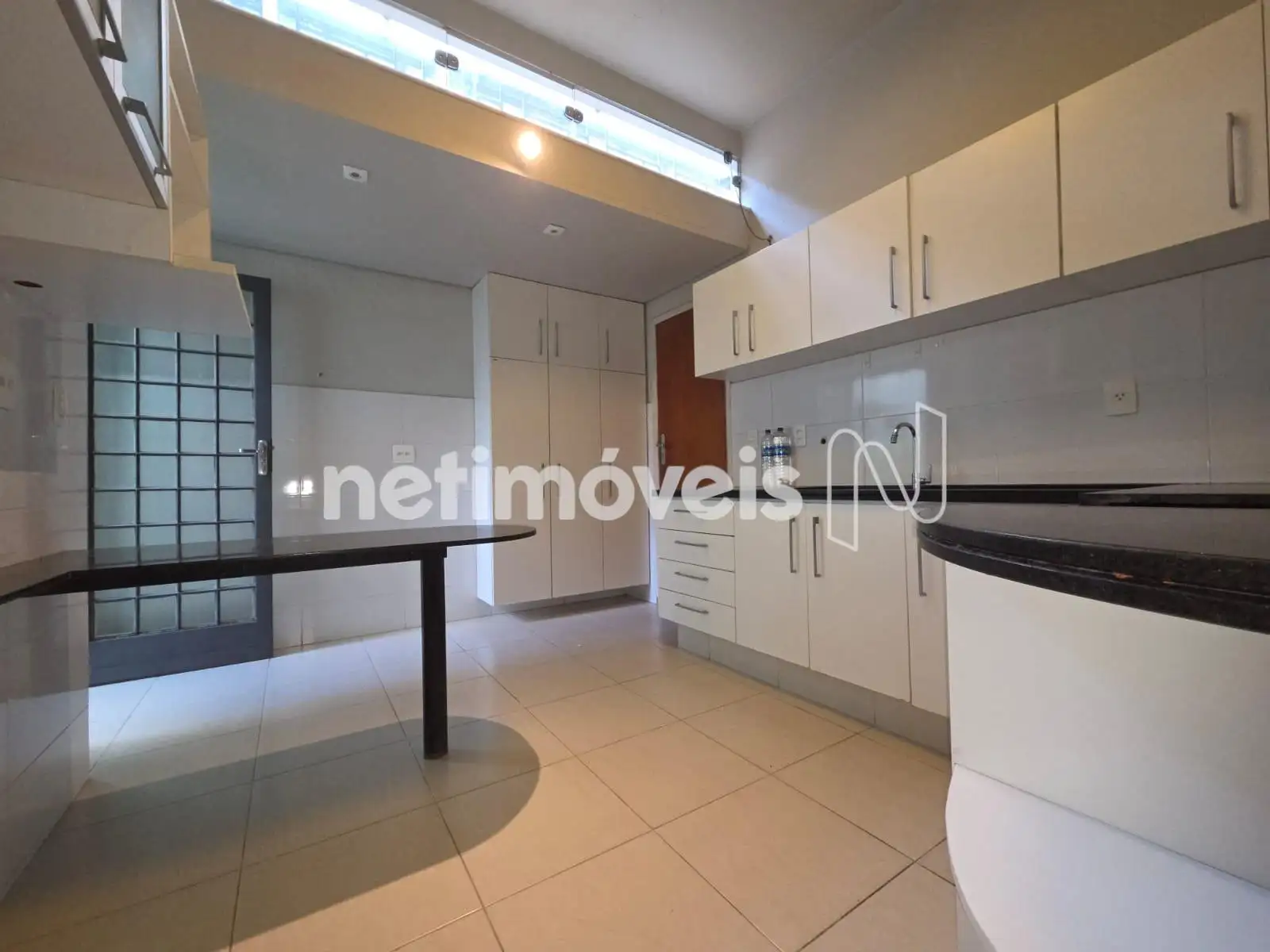 A cozinha é um destaque à parte: muito espaçosa, bem planejada e rica em armários novos, com bancadas em granito e uma mesa para refeições rápidas. A área de serviço, anexa, também é ampla, funcional e conta com armários planejados, além de acesso direto à área externa.
