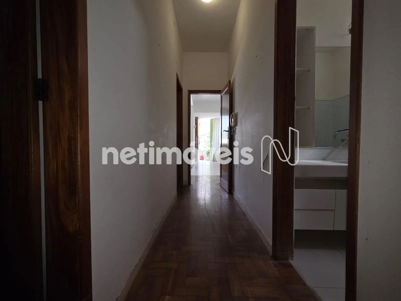 No primeiro piso, a área social é composta por uma sala ampla para dois ambientes, naturalmente iluminada, integrada a uma agradável copa. O acesso à área íntima se dá por um corredor com piso em taco de peroba rosa, onde há rouparia de apoio. Originalmente com quatro quartos, o imóvel foi adaptado para três, com possibilidade de reversão simples. Os quartos mantêm o elegante piso em peroba rosa, sendo que o maior dos quartos é equipado com armários planejados. O banho social apresenta acabamento em porcelanato, com bancadas em mármore.