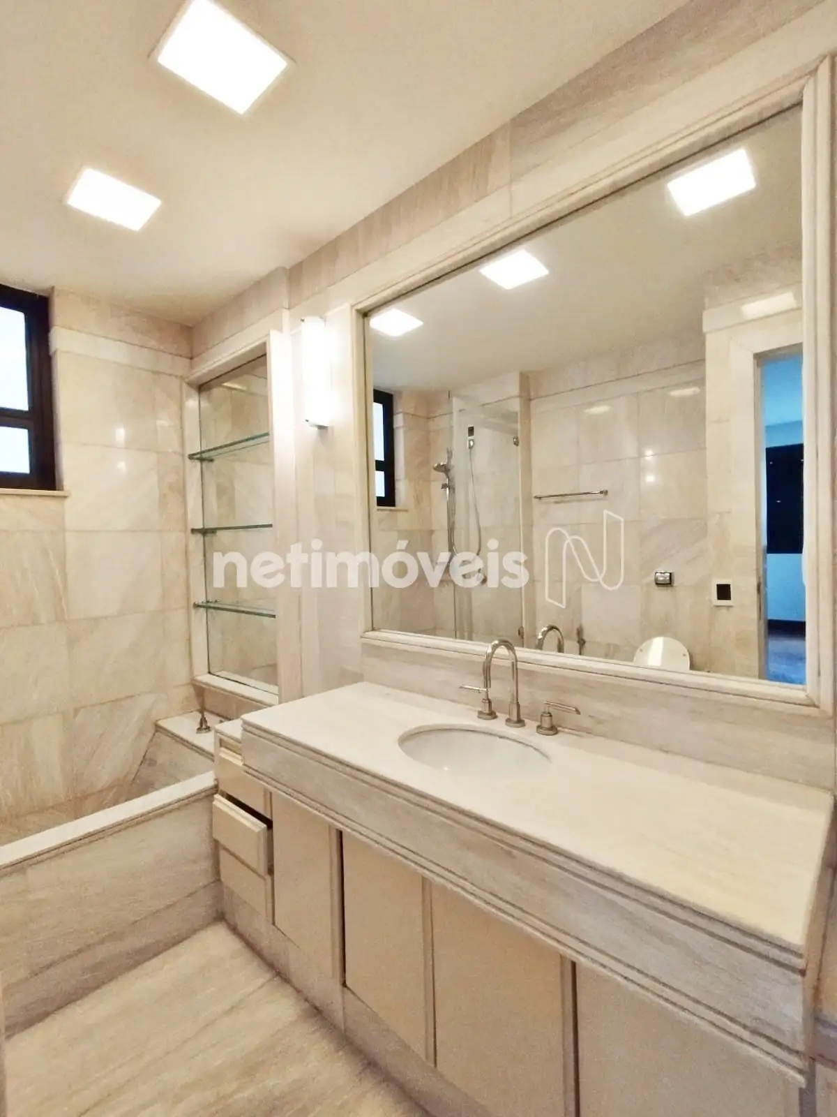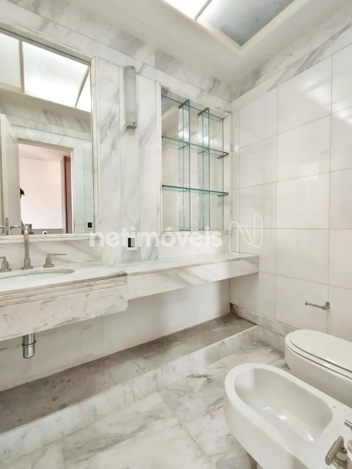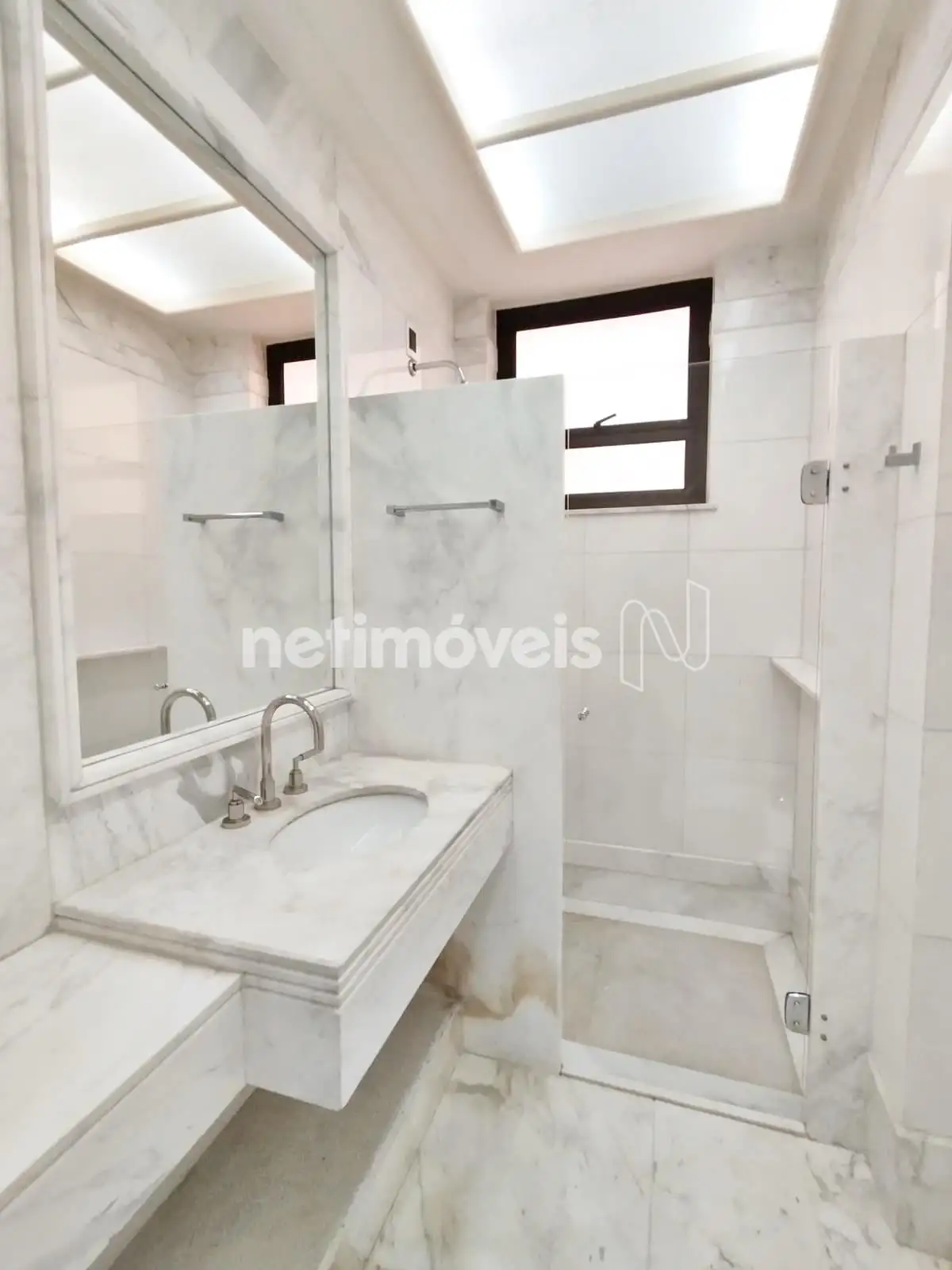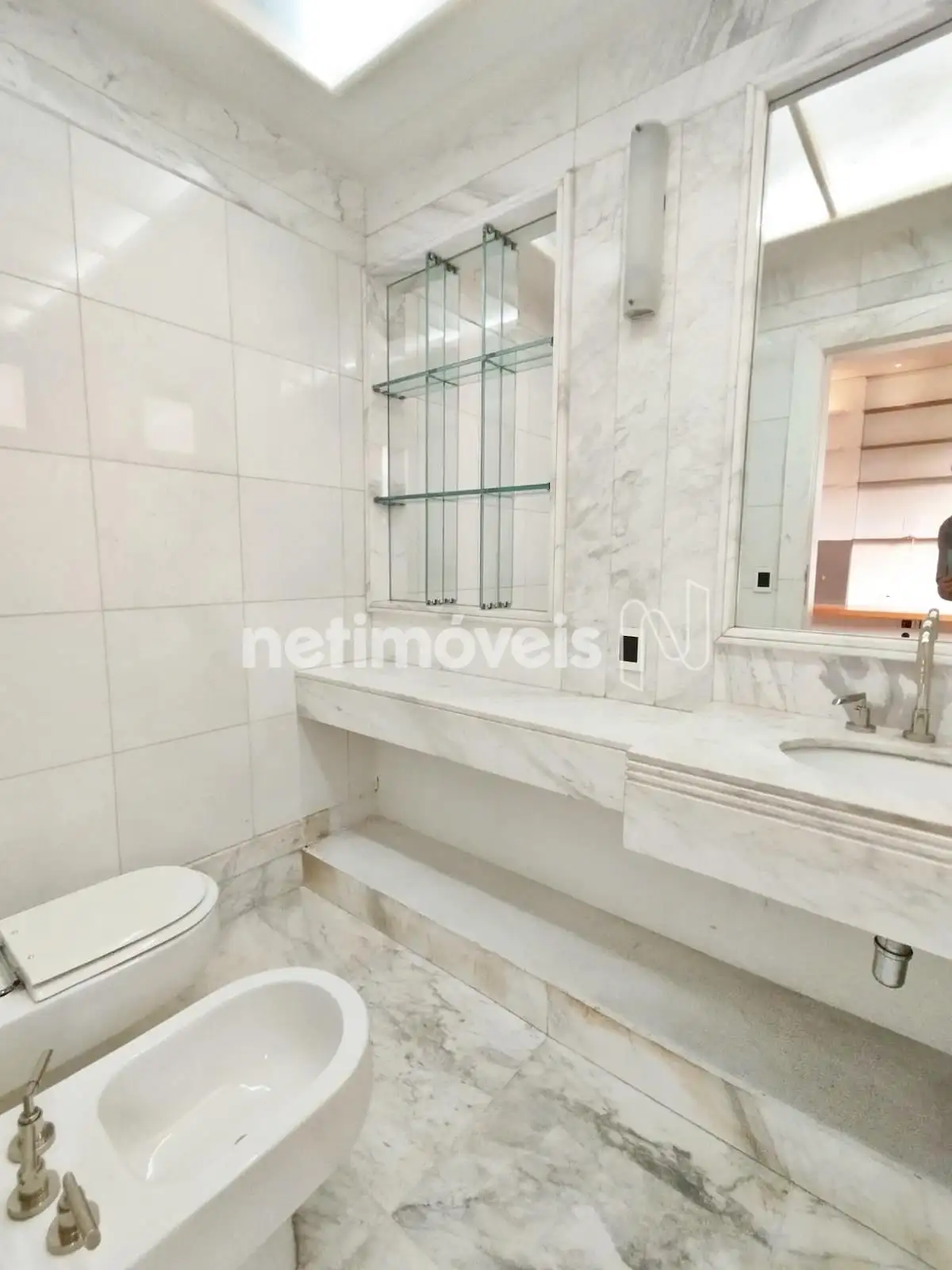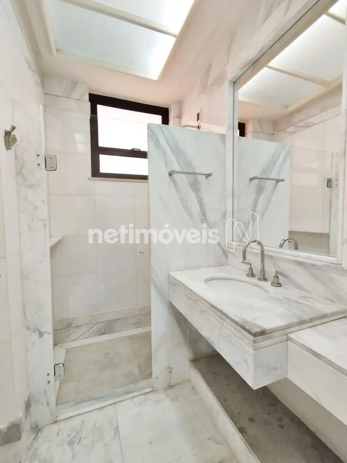 Lavabo com piso e bancada mármore.