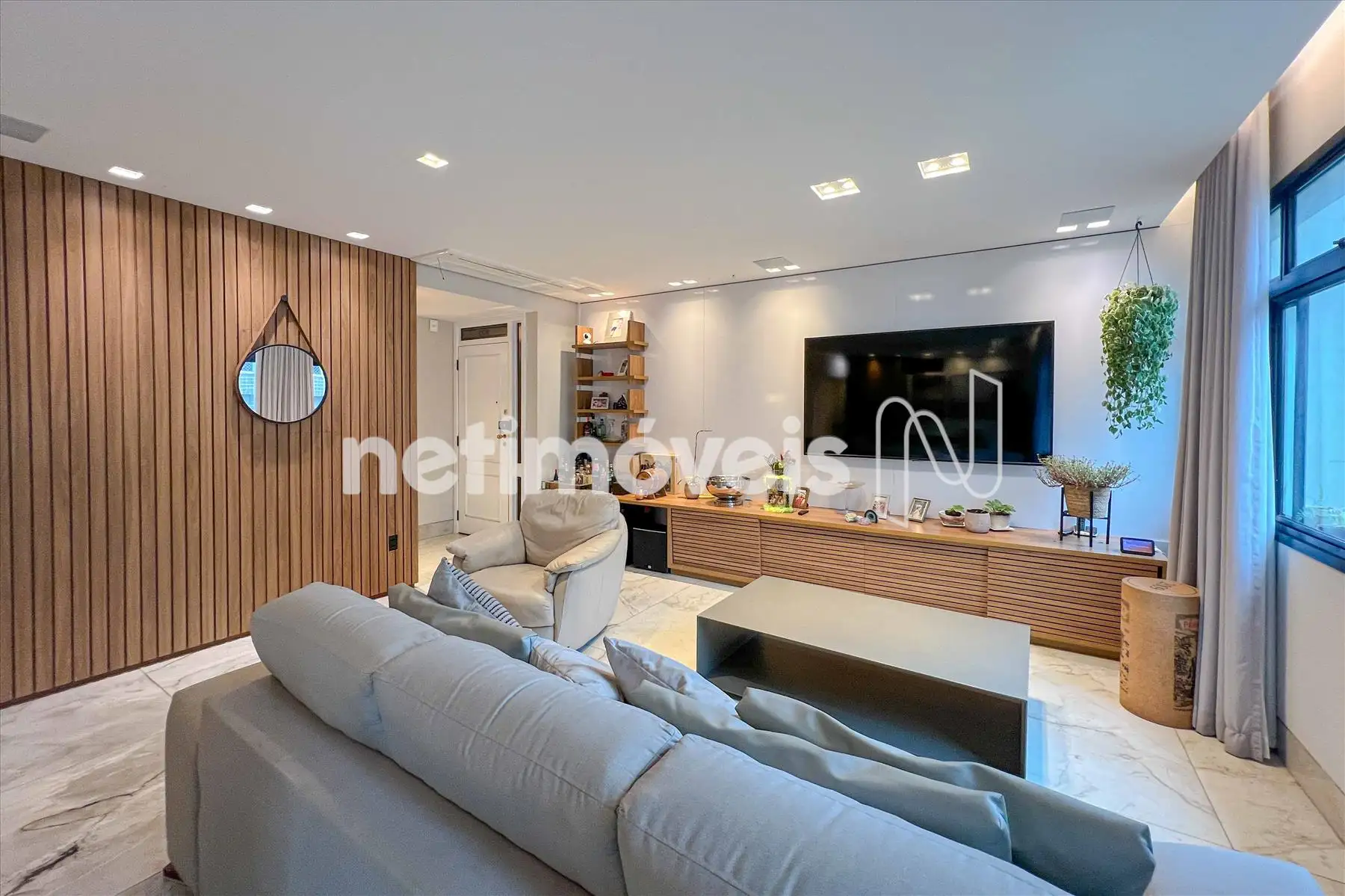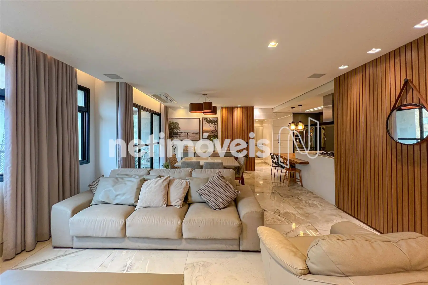Sala ampla para 02 ambientes, com piso em Quartzito e excelente iluminação natural