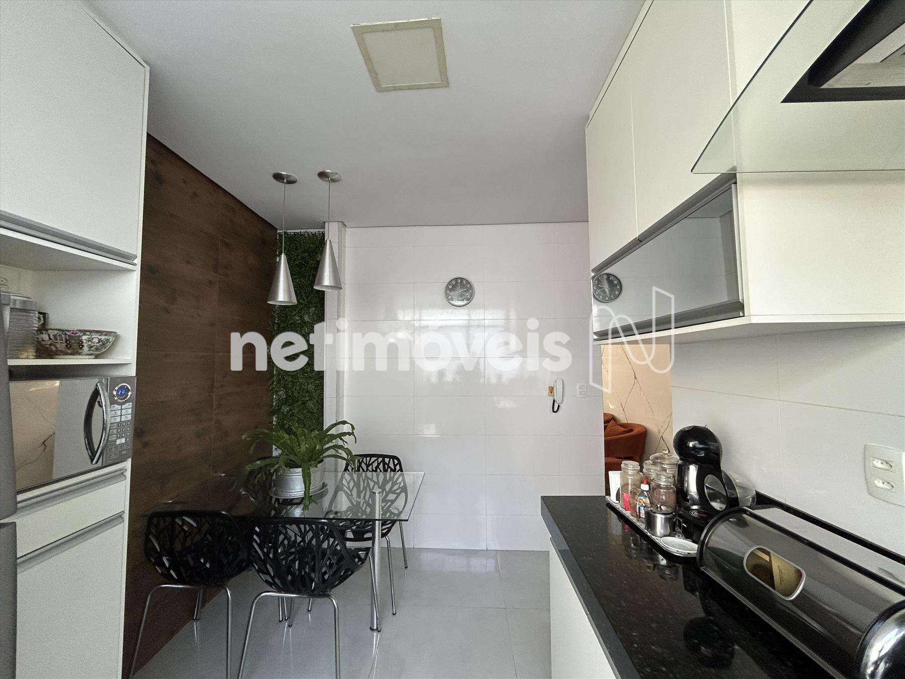 Copa ampla com piso em porcelanato e teto rebaixado em gesso