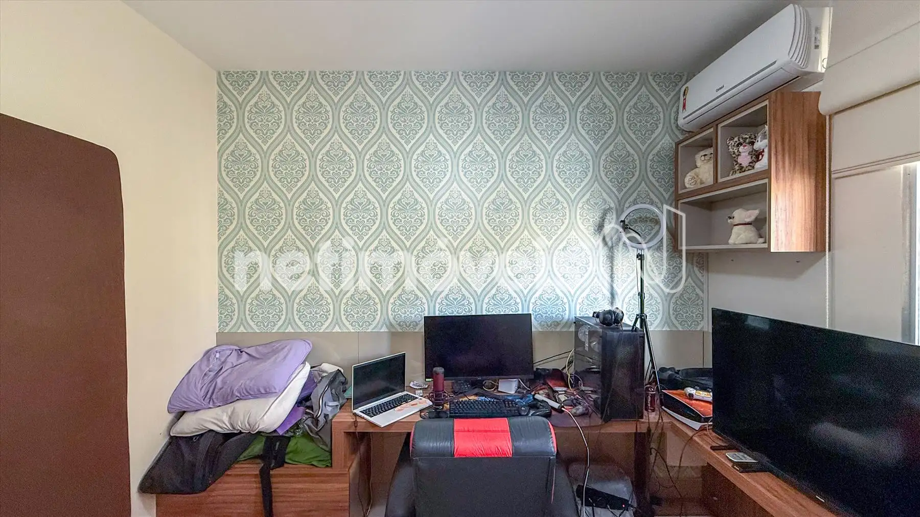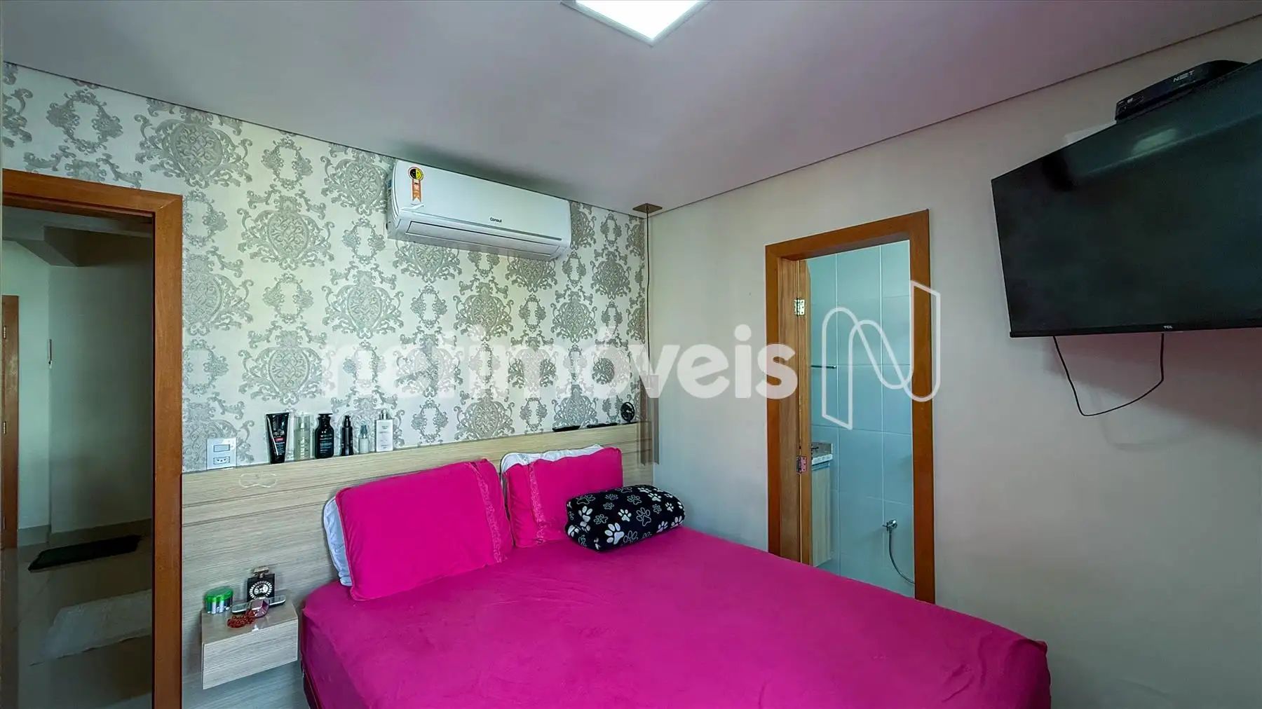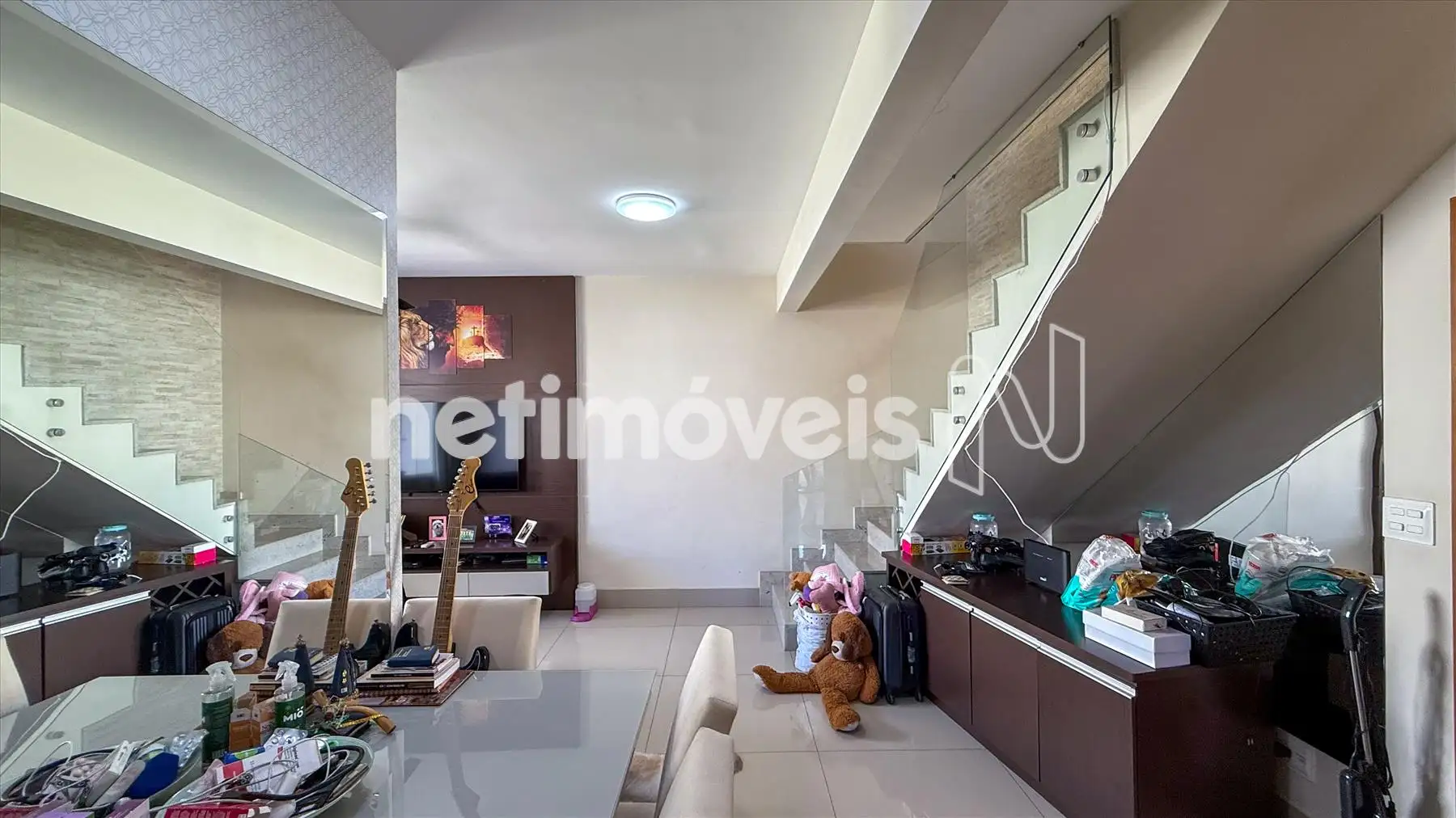 No primeiro nível, há um amplo salão para dois ambientes, perfeito para receber amigos e familiares. Os quartos possuem ar-condicionado, além de banheiro social, cozinha planejada com armários, e área de serviço independente.