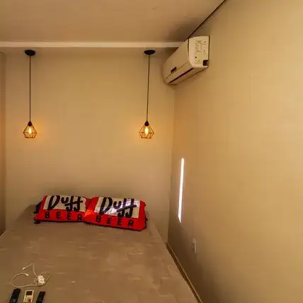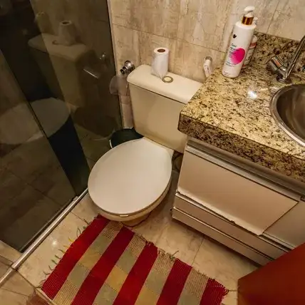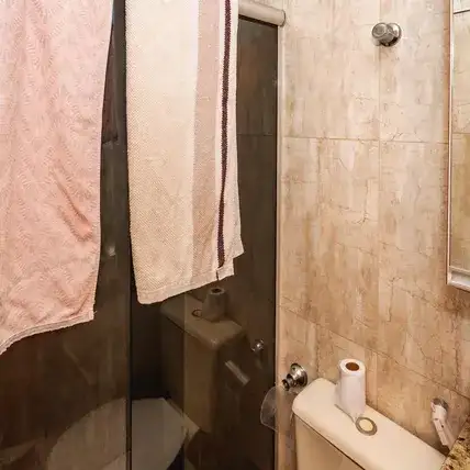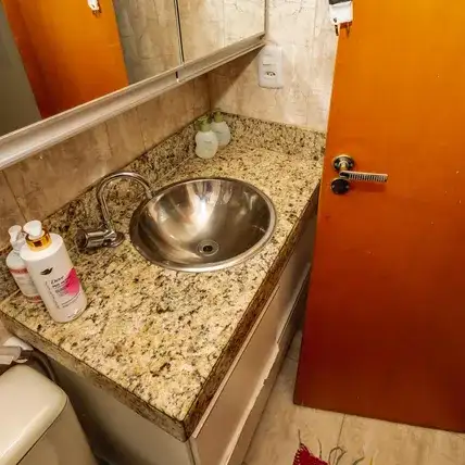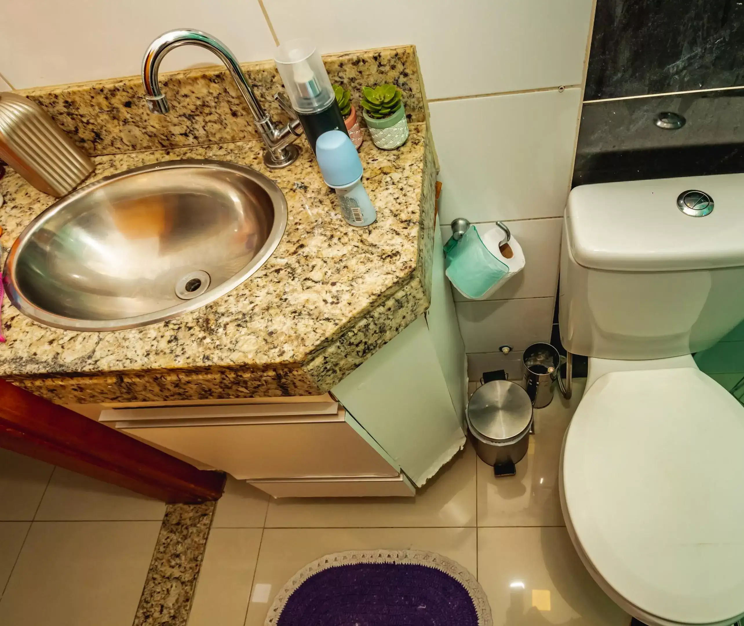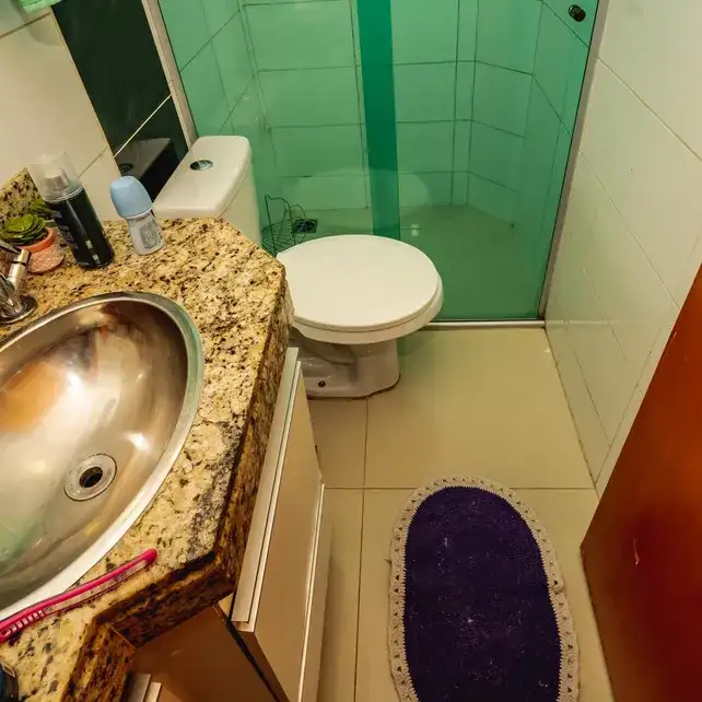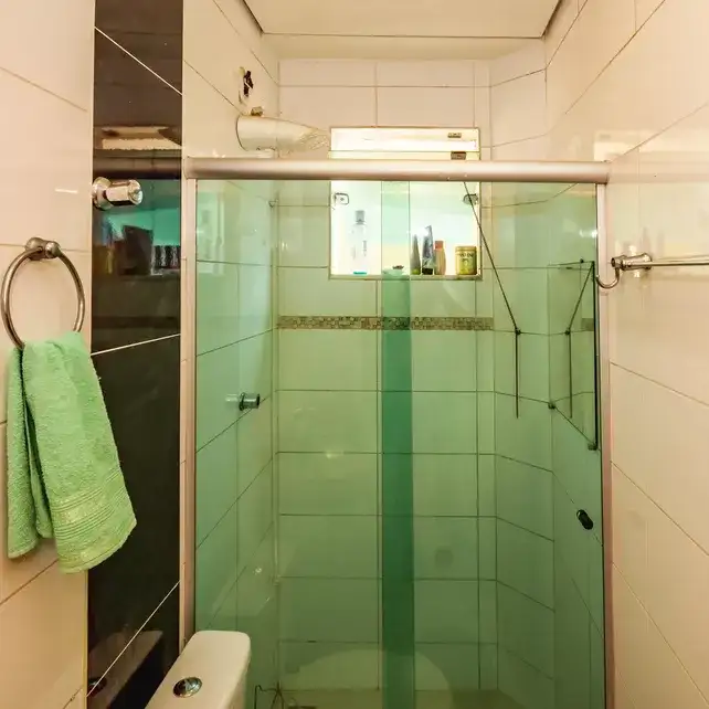 Banheiro Social: Equipado com Box em vidro temperado e armário.